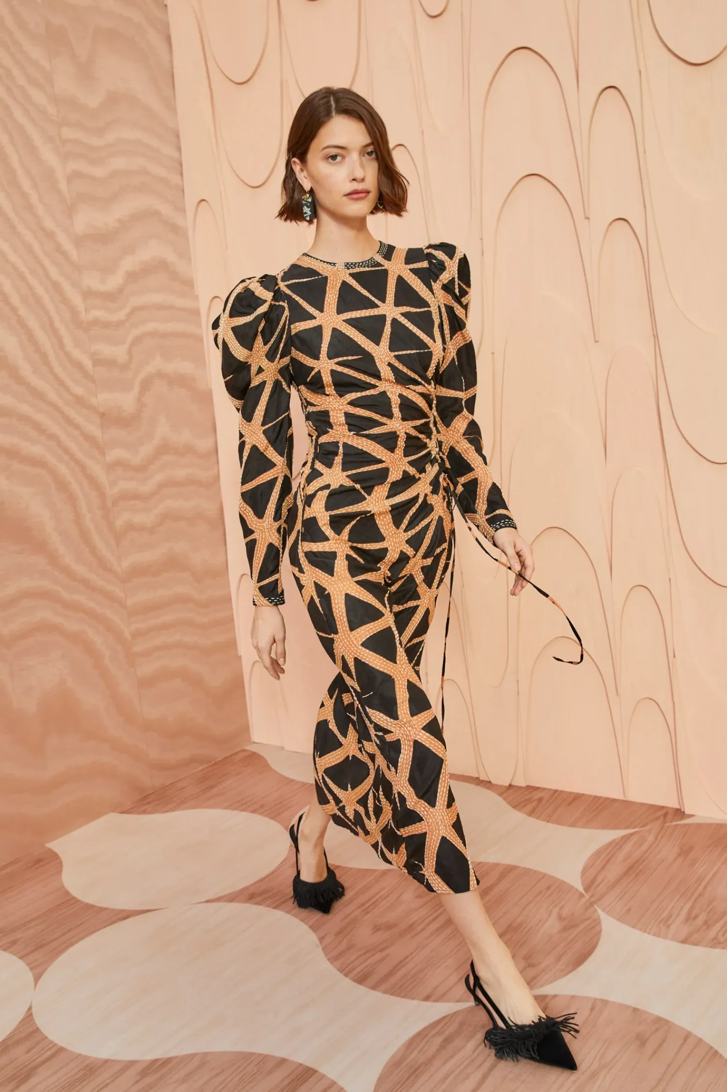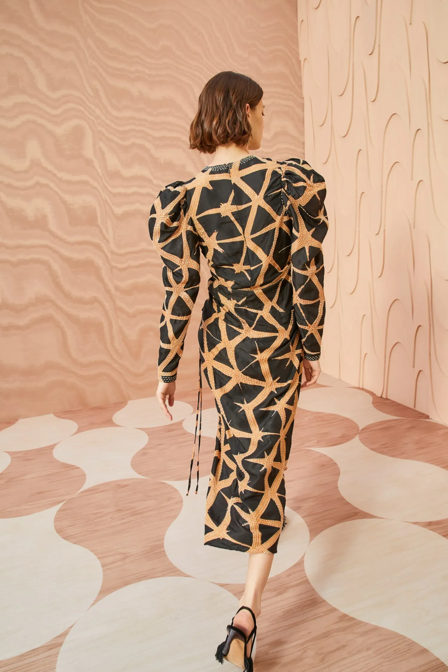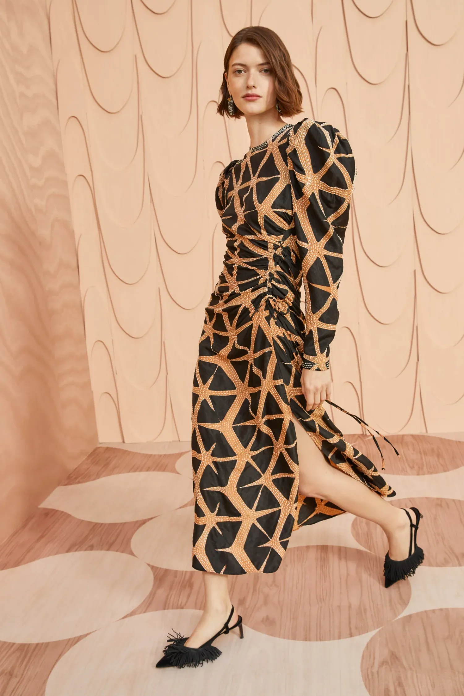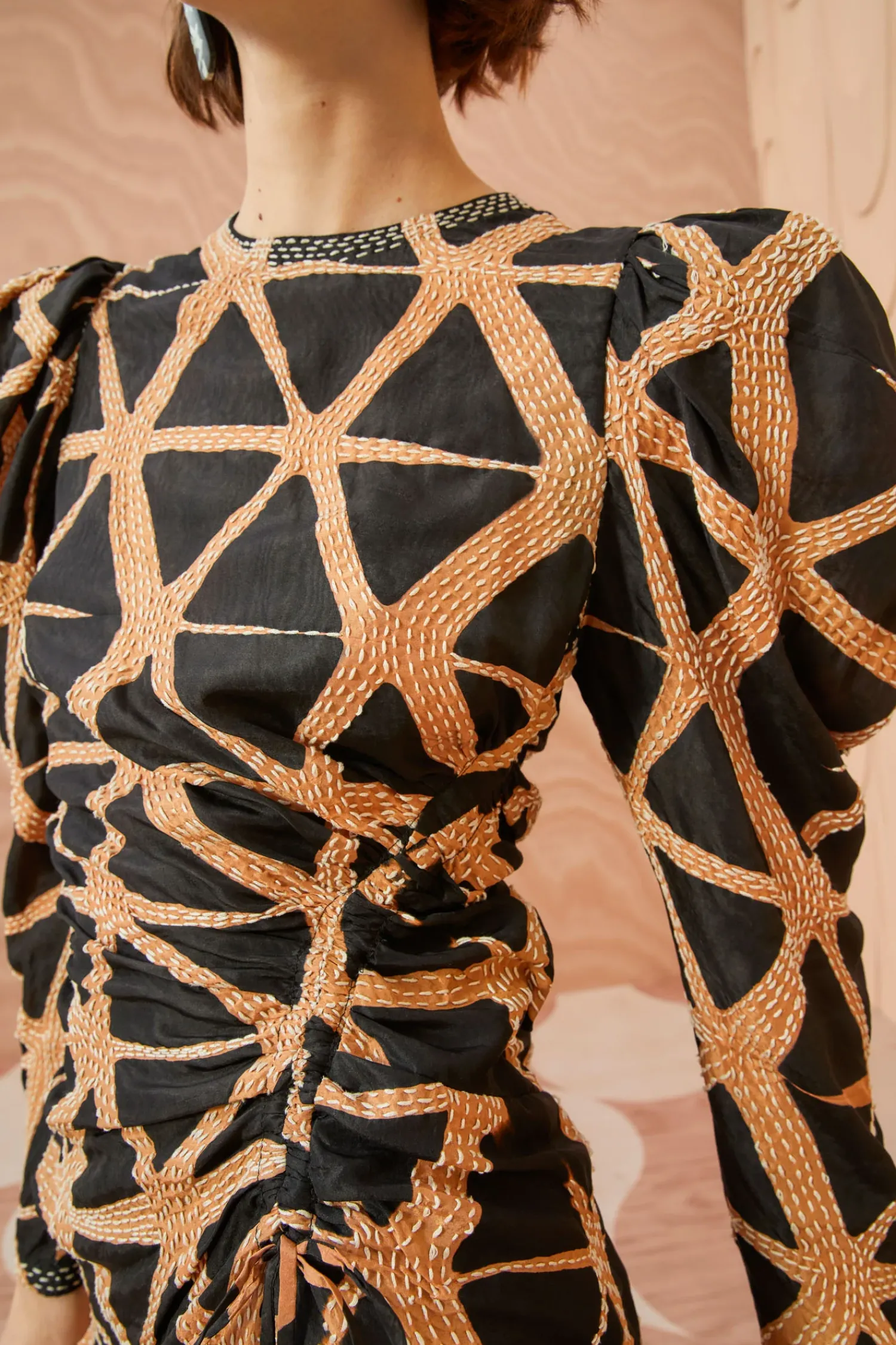 As Featured On Ulla During Our Autumn/Winter ’23 Runway Show, The Amalie Dress Is Made In Our Hand-Dyed, Hand-Embroidered Silk Which Is A Continuation With Artisans From Bangalore, India. This Entirely Hand-Made Process Of Dyeing Is Accented By Hand Embroidery In Contrast Stitching To Create Additional Pattern And Texture. This Dress Features Full, Draped Sleeves And An Asymmetric Ruched Seam Down The Front To Create A Body-Skimming Silhouette. It Is Finished With A Side-Seam Zipper Closure.