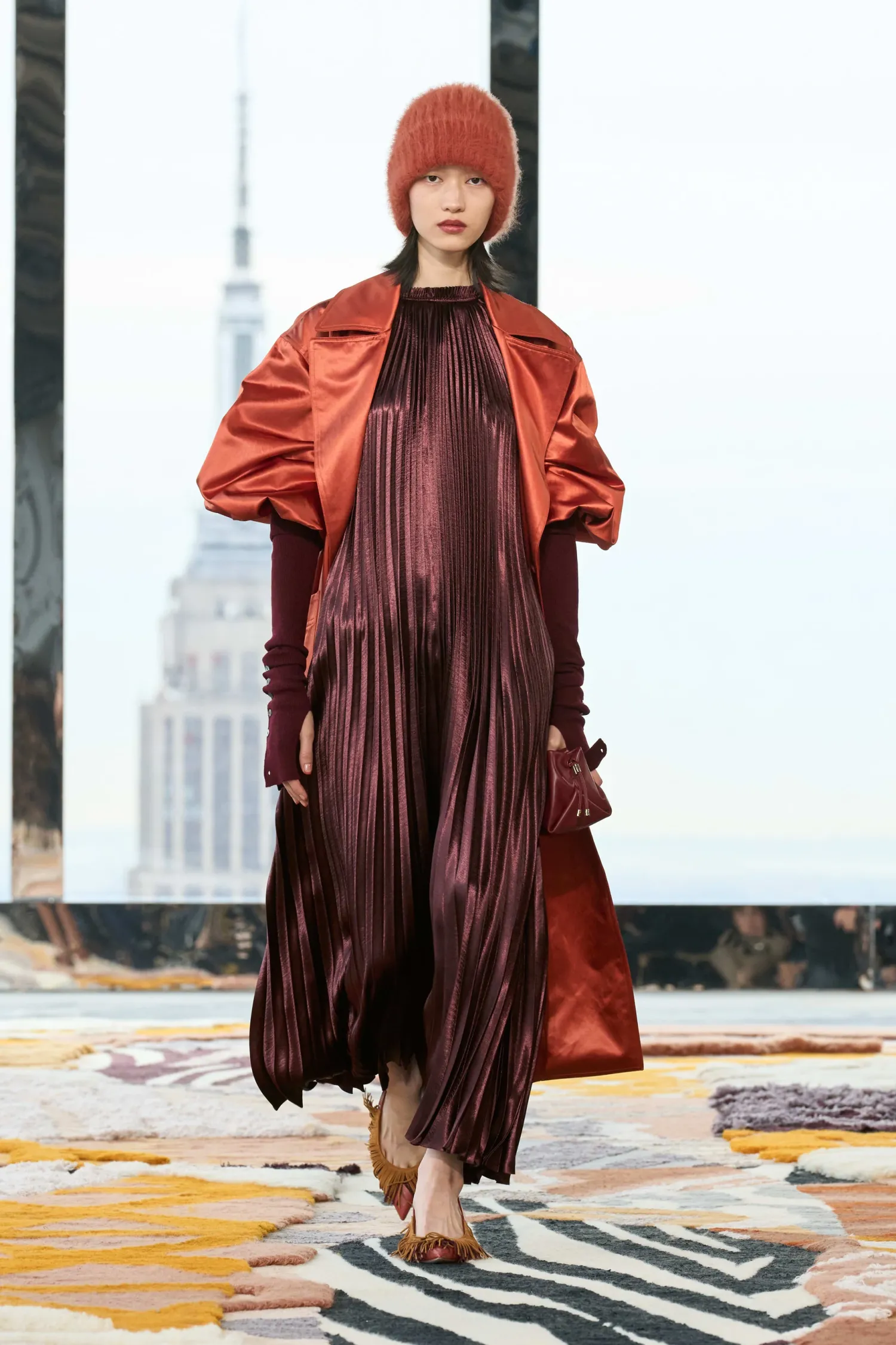 As Featured In Look 20 Of Our Autumn/Winter ’23 Runway Show, Our Amiko Dress Is Made From Lustrous Dark Red Satin That Has Been Pleated Into Delicate Ripples Which Expand And Contract With Movement. Cut In A Stunning Trapeze-Style Silhouette, This Midi-Length Dress Has An Optional Belt And Is Finished With An Asymmetric Neckline Tie Closure.