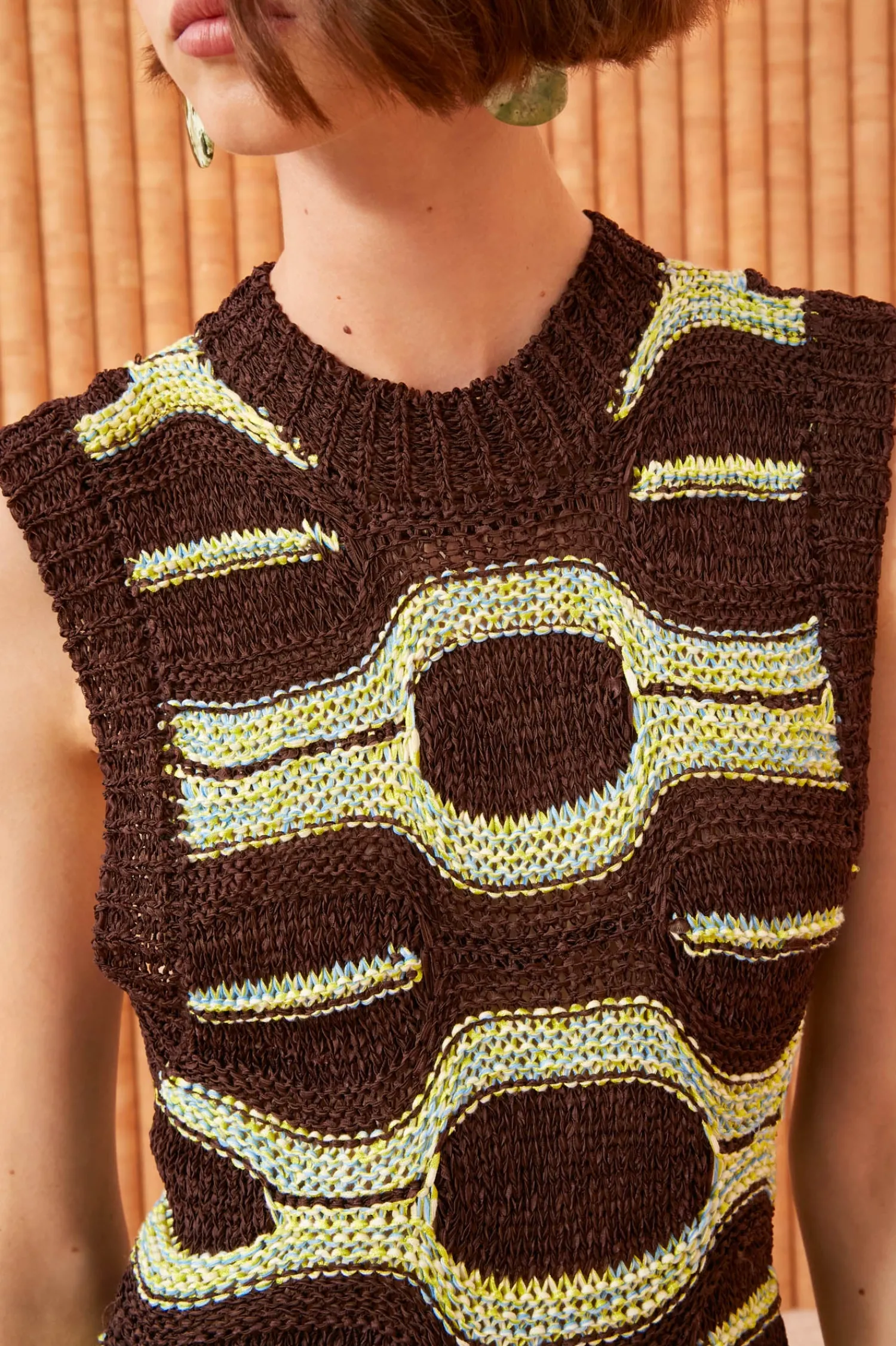 A Forever Favorite From Previous Seasons, The Arabella Dress Is A Beautiful Novelty Knit Created Using A Tuck Stitch Technique Resulting In Three-Dimensional Waves In Brown, Green, And Blue. This Sleeveless Midi Dress Has A Round Neckline, Elegantly Skims The Body, And Is Finished With Ribbed Trims.