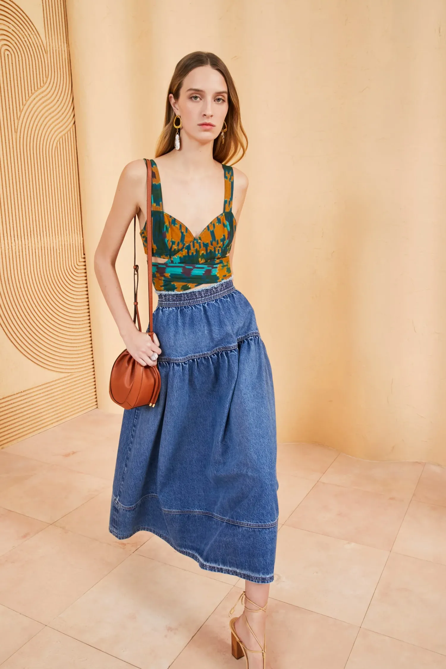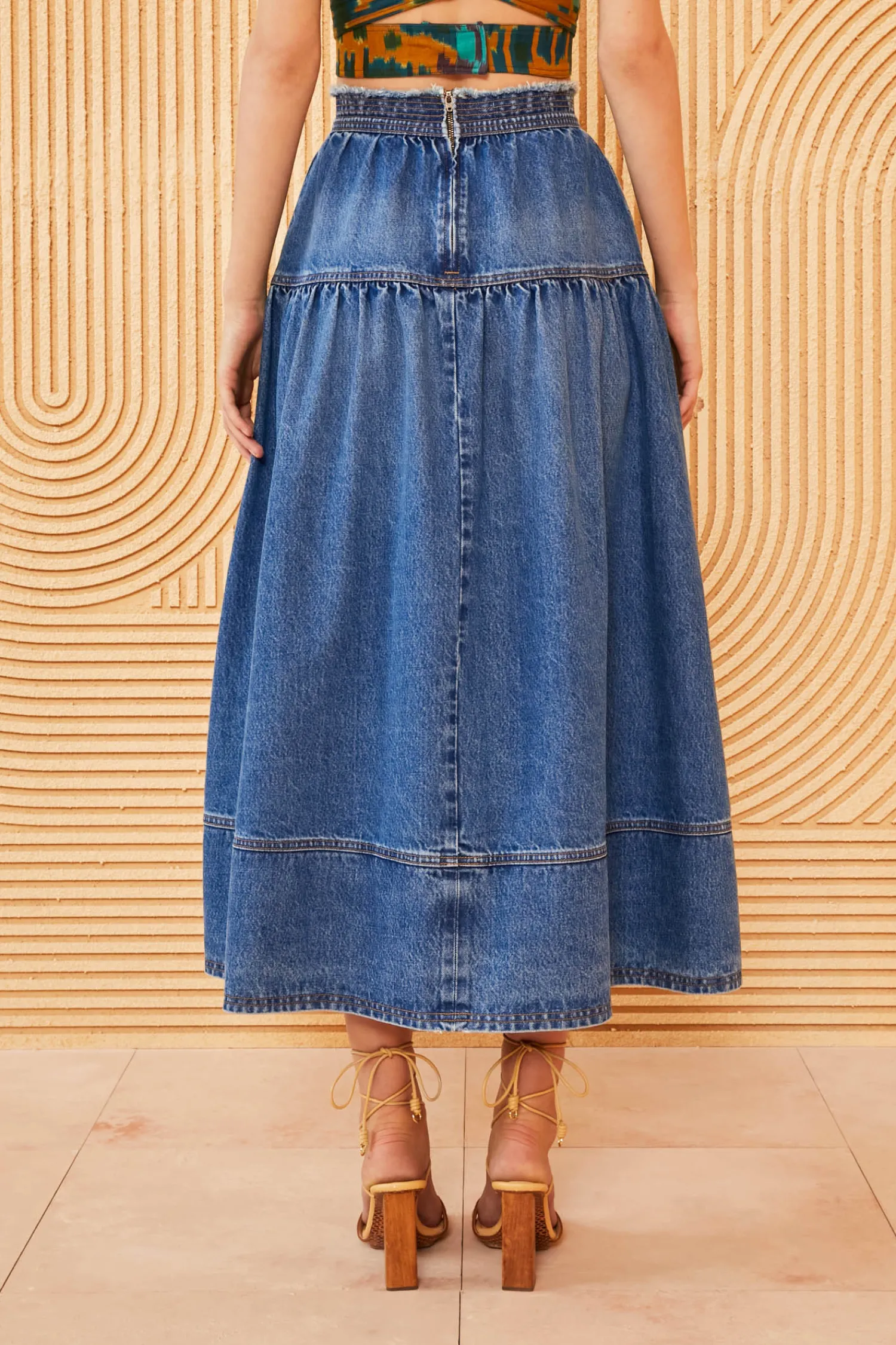 As Featured In Look 19 Of Our Spring/Summer ’23 Runway Show, The Astrid Skirt Is The Newest Addition To Our Denim Collection. Dyed In A Medium Indigo Wash, This A-Line Skirt Has A Fitted Waist And Gathered Tier. It Is Finished With A Fixed Waistband Detailed With A Raw Edge. All Our Premium Denim Is Responsibly Handmade In Los Angeles Using High-Quality Materials.