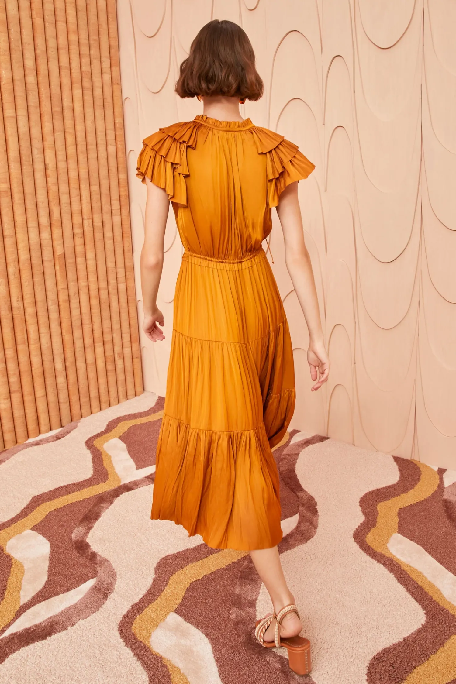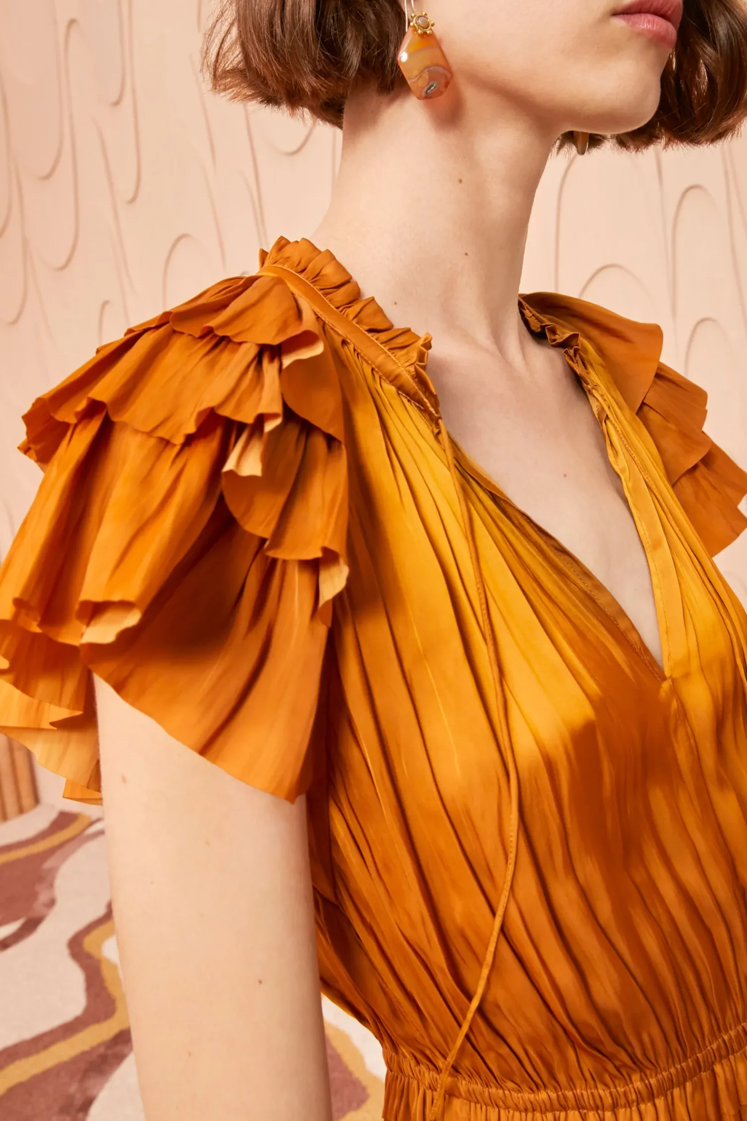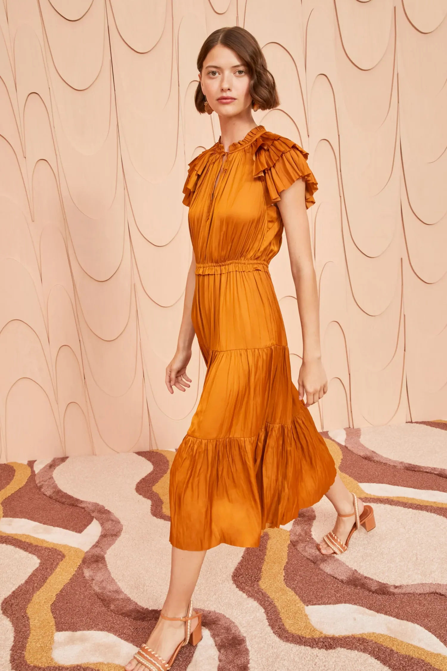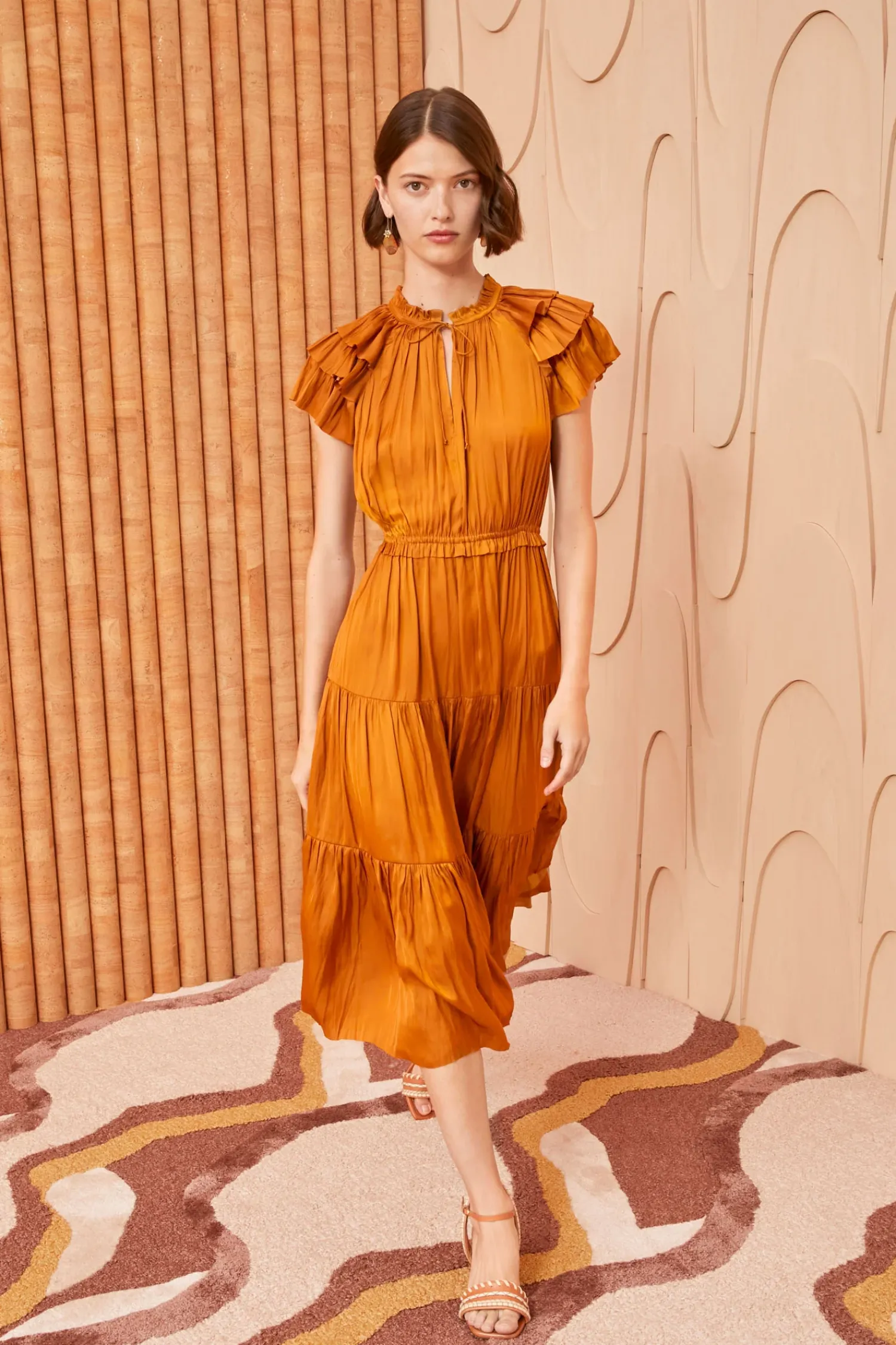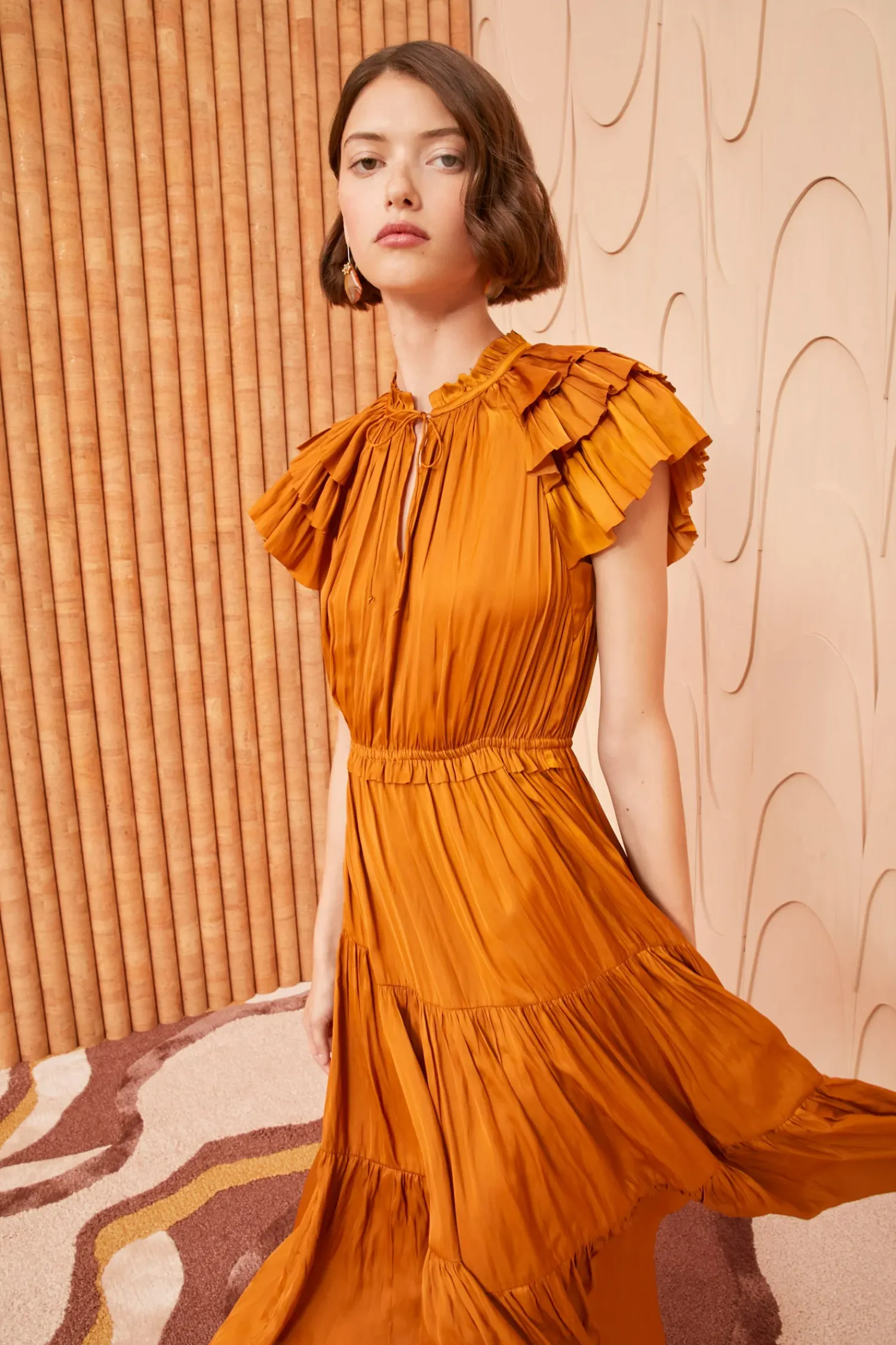 An Ulla Johnson Exclusive Available Solely In Our Boutiques And Webshop, The Blaire Dress Is A Forever Favorite Silhouette Made From Our Plisse Satin, A Fabric Perfectly Suited For Formal Occasions That Is Comfortable And Easy To Wear. This Gorgeous Orange Midi Dress Features Tiered Ruffle Sleeves, An Elasticated Waist, And Is Fully Unlined.