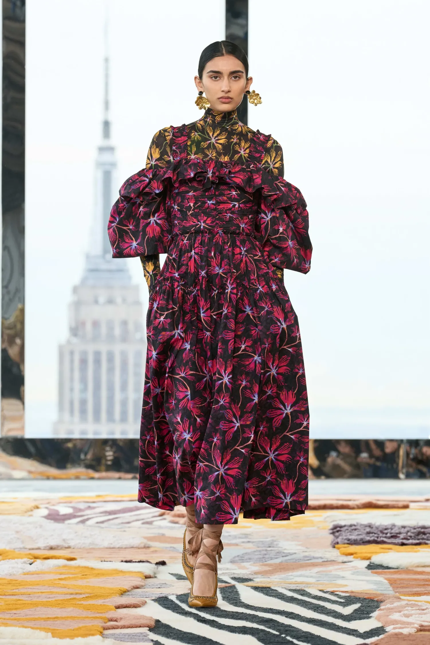 As Featured In Look 33 Of Our Autumn/Winter ’23 Lookbook, The Caprice Dress Is Cut From Our Signature Printed Poplin With Surreal Magenta And Hyacinth-Hued Blooms Against A Swirling Background. This Dress Features Bubble Hemmed Sleeves And Neckline, Wide Ruched Straps, And Muti-Arched Seams Along The Midi-Length Skirt.