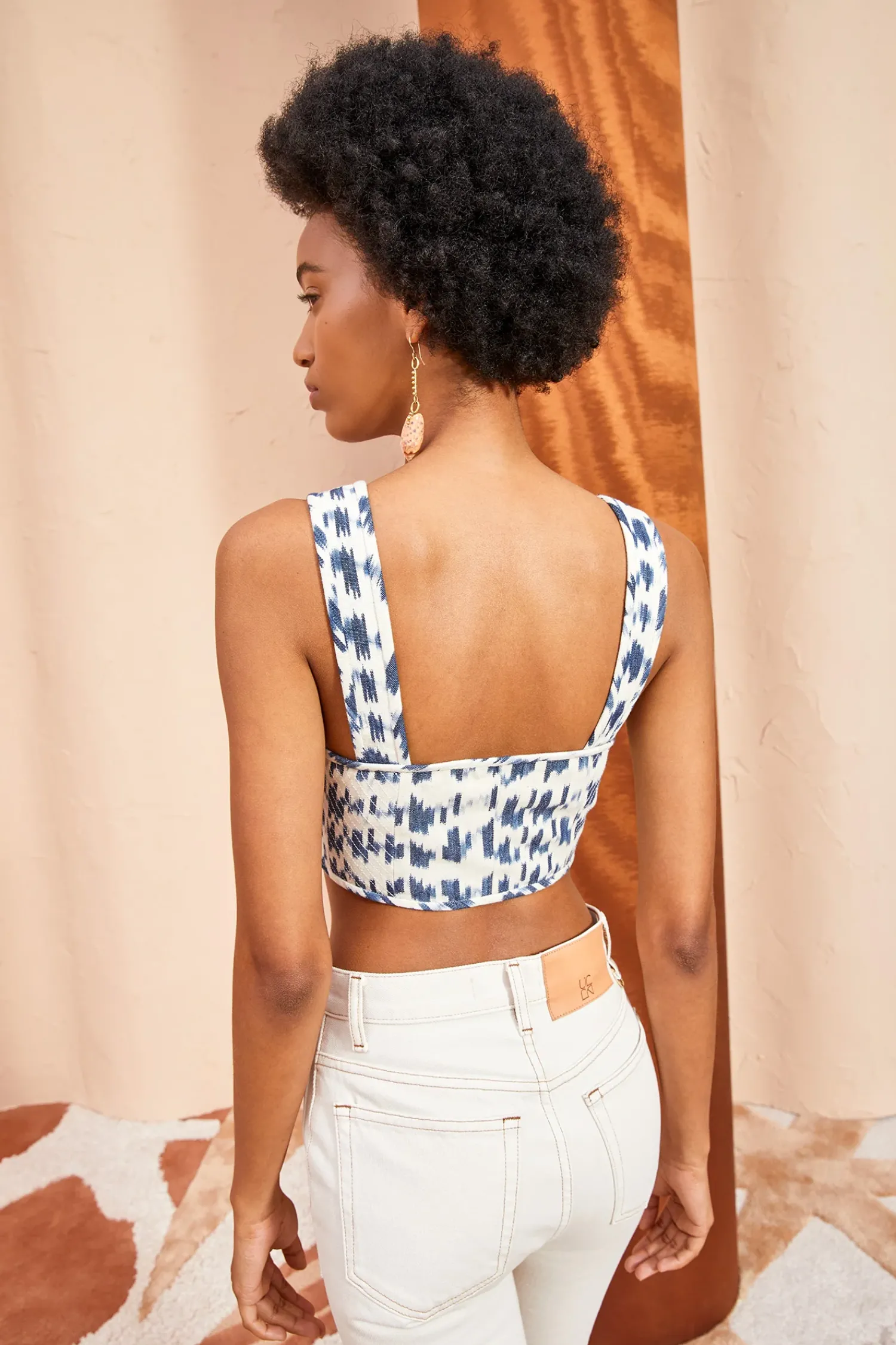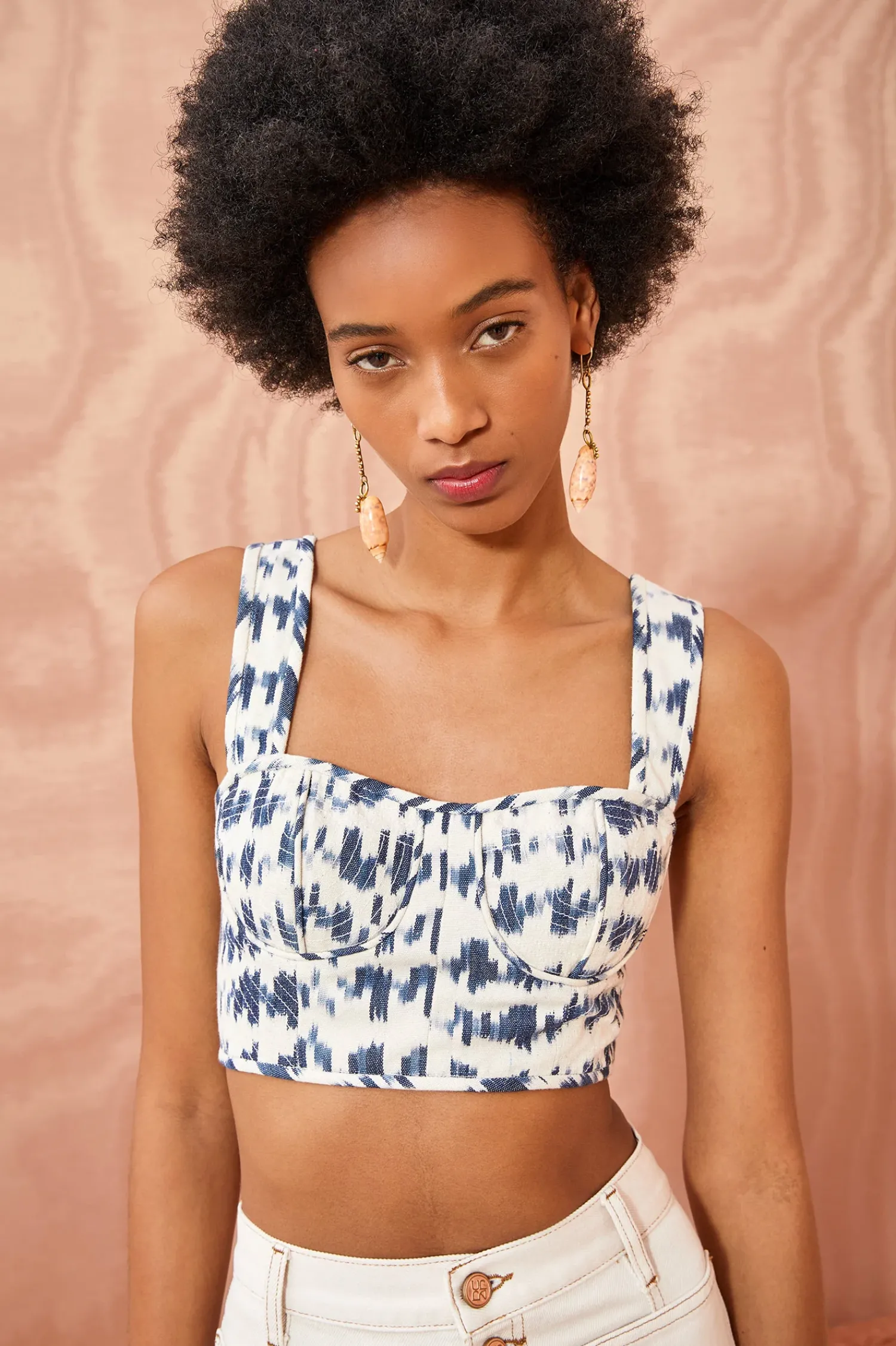 The Carisia Corset Top Is Crafted From Traditional Indian Handloomed Ikat, A Woven Textile With Individually Dyed Yarns That Create Striking Blue And White Geometries. This Cotton Crop Top Features Lightly Boned Cups, Wide Straps And A Side-Seam Zip Closure.
