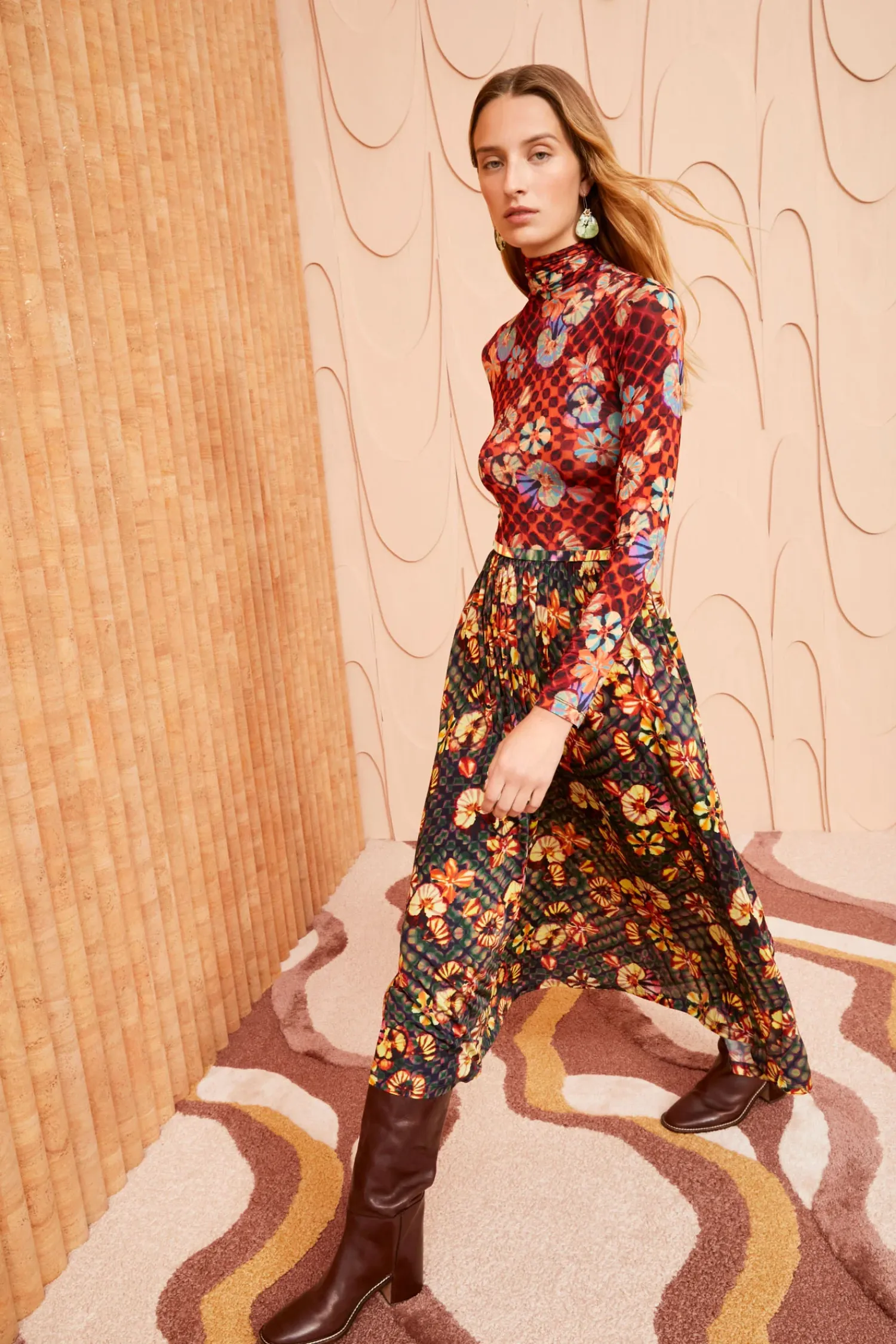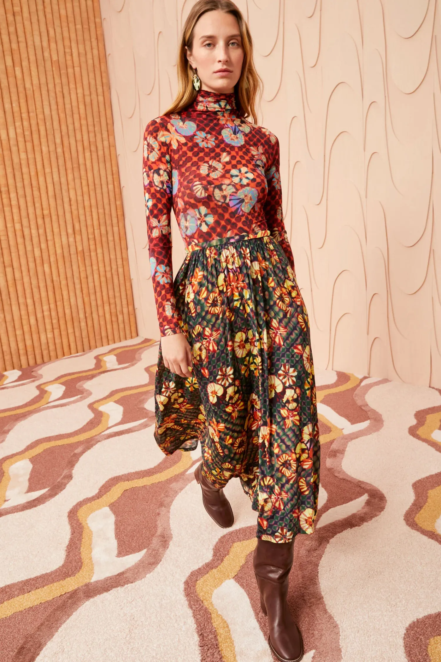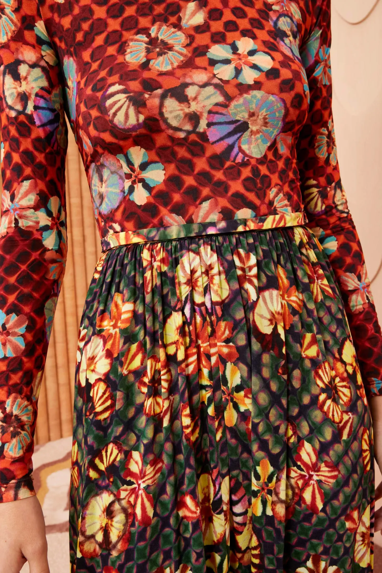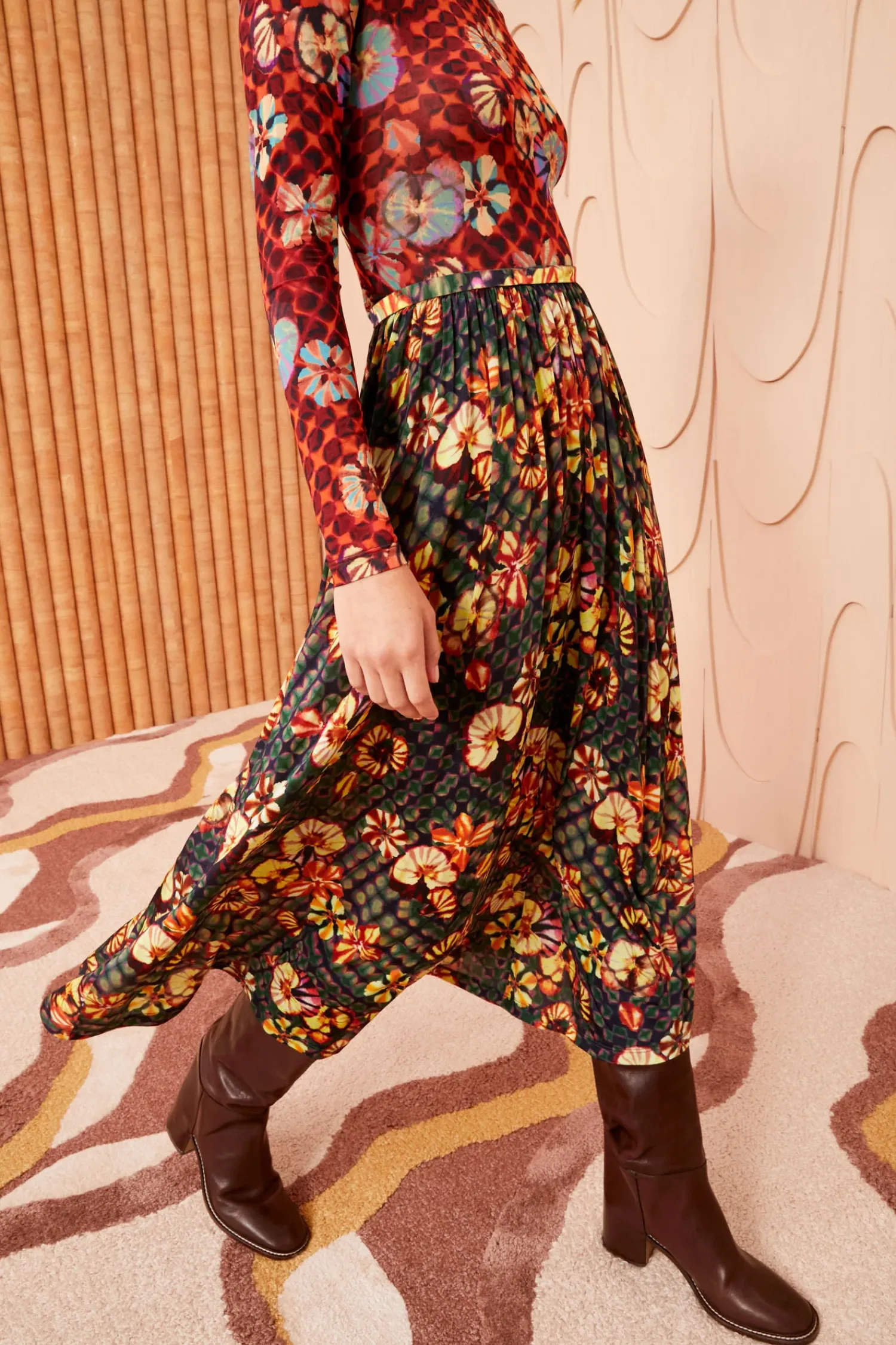 The Cecilia Skirt Is Crafted From Our Signature Tricot Jersey That Is Ultra-Soft And Lightweight. Featuring Our Vibrant Evergreen Floral Motif, This Multi-Hued Skirt Is Adorned With A Braided Trim At The Waist And Floats To A Midi-Length Hemline.