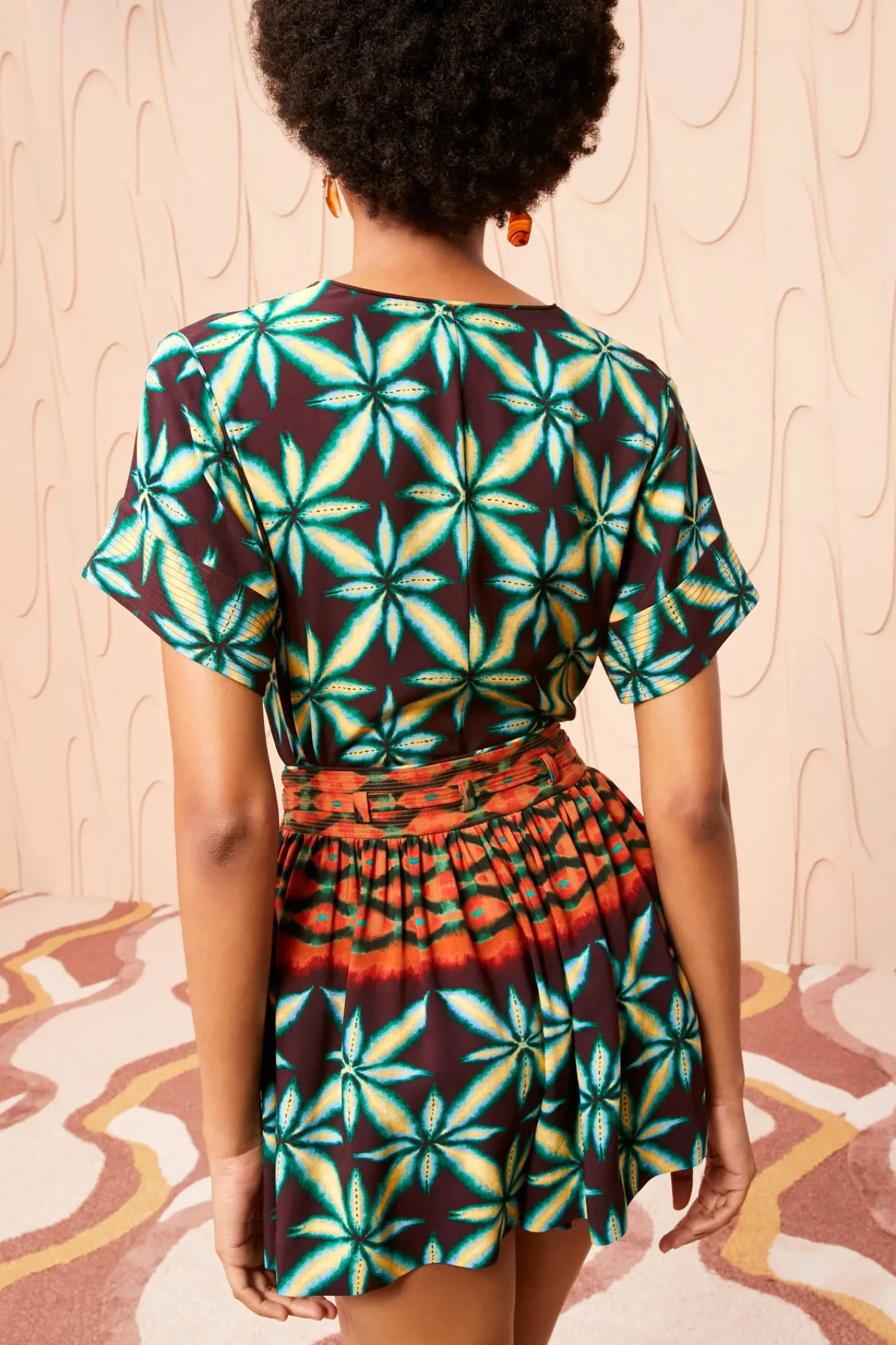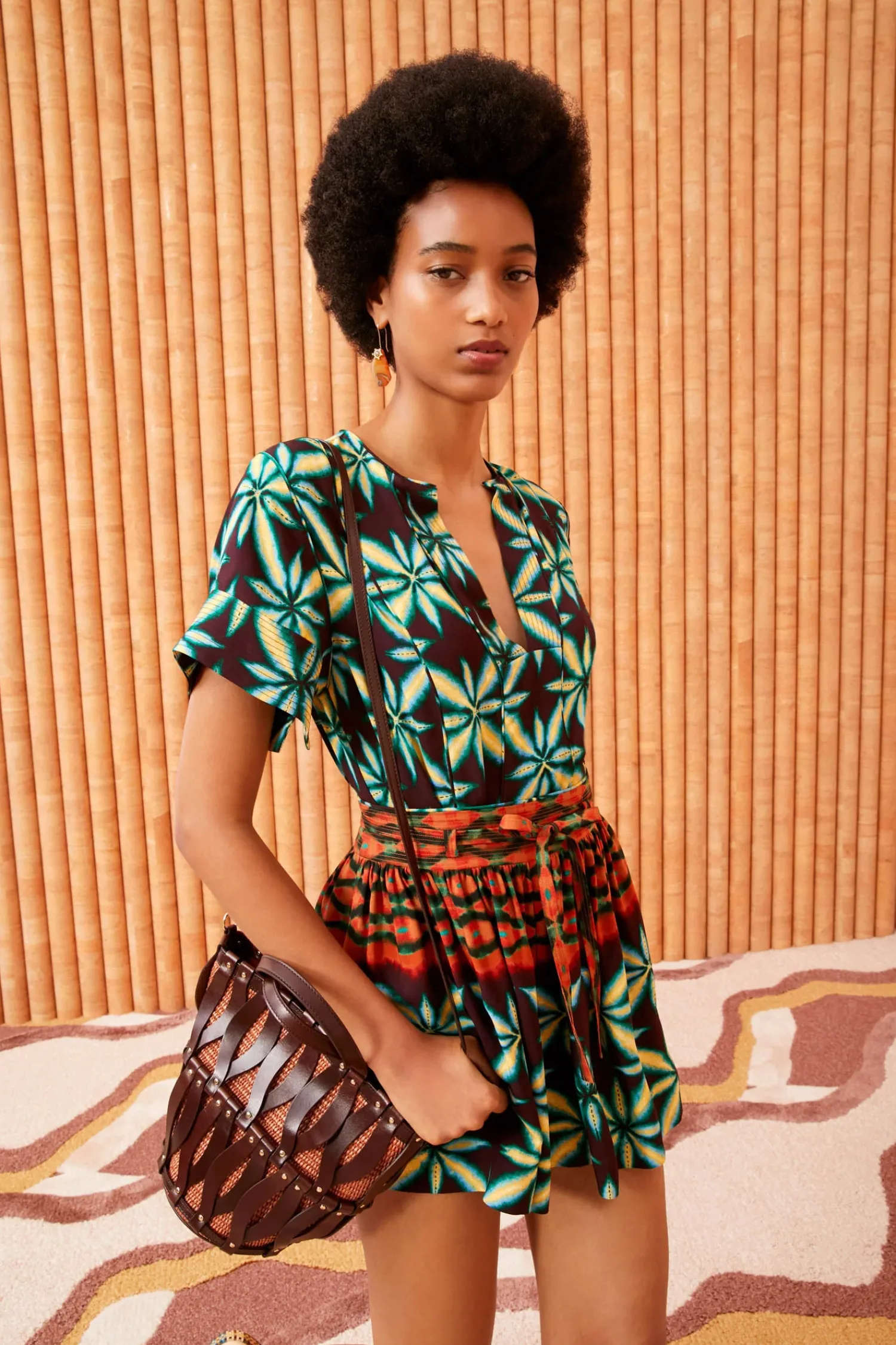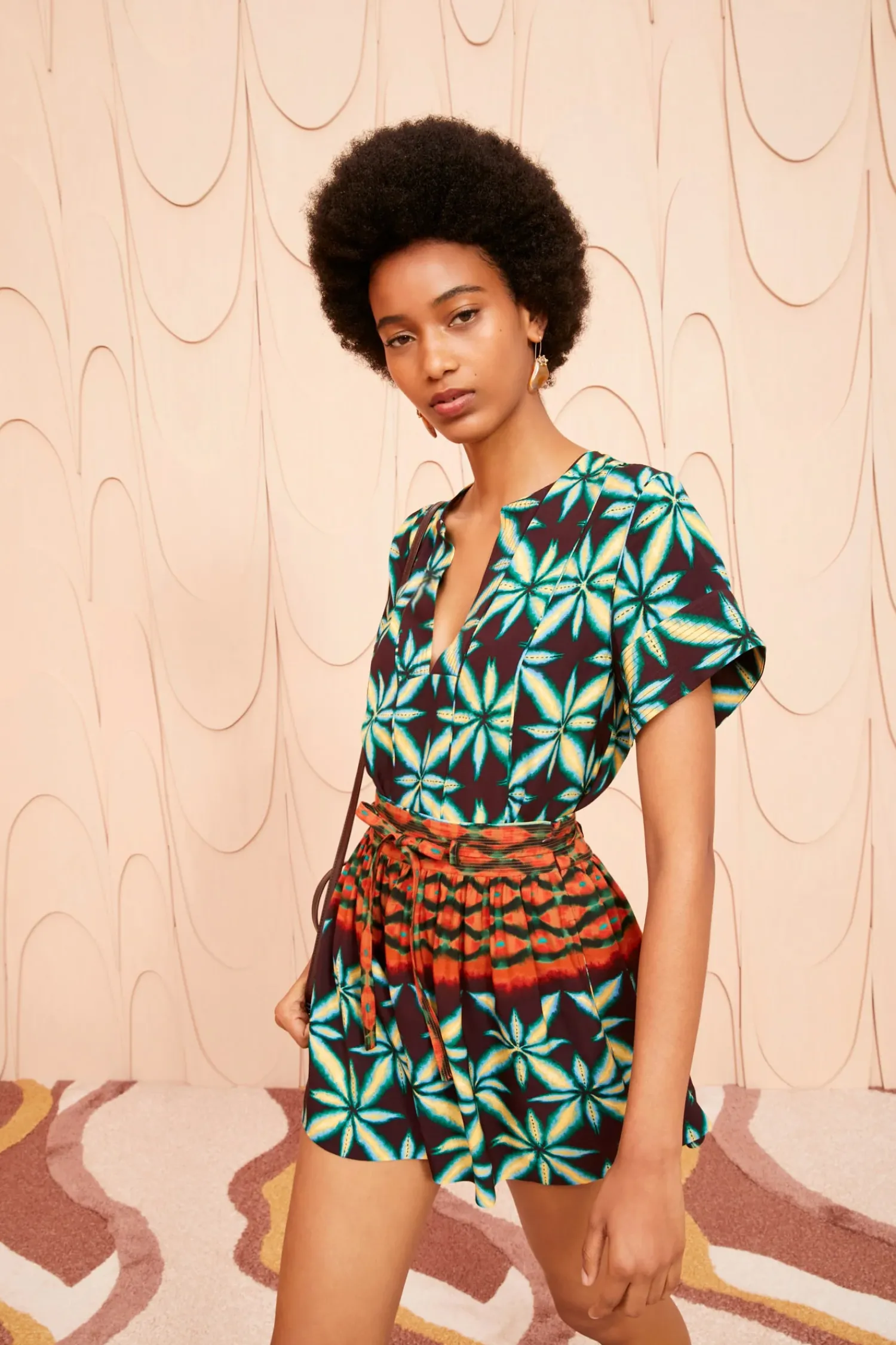 Made From Our Beloved Satin-Back Crepe, The Clementine Short Is Richly Patterned In Our Shibori Floral Motif In Vivid Orange, Green, Brown, And Yellow. Designed With A High Waist, It Features Elegant Trapunto Stitching, An Optional Tie Belt, And Falls To A Fluid Silhouette. It Fastens With A Side Zip Closure.