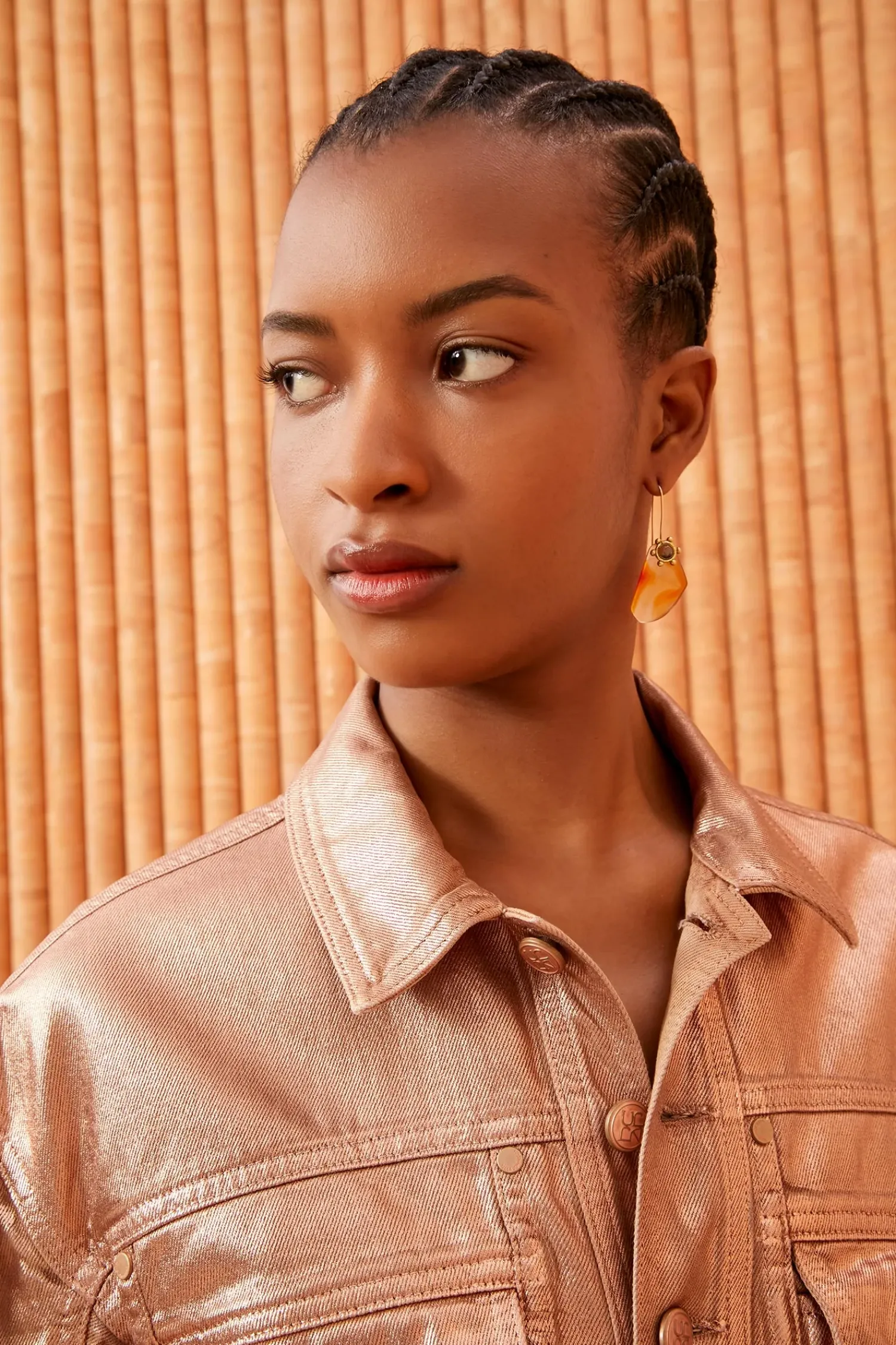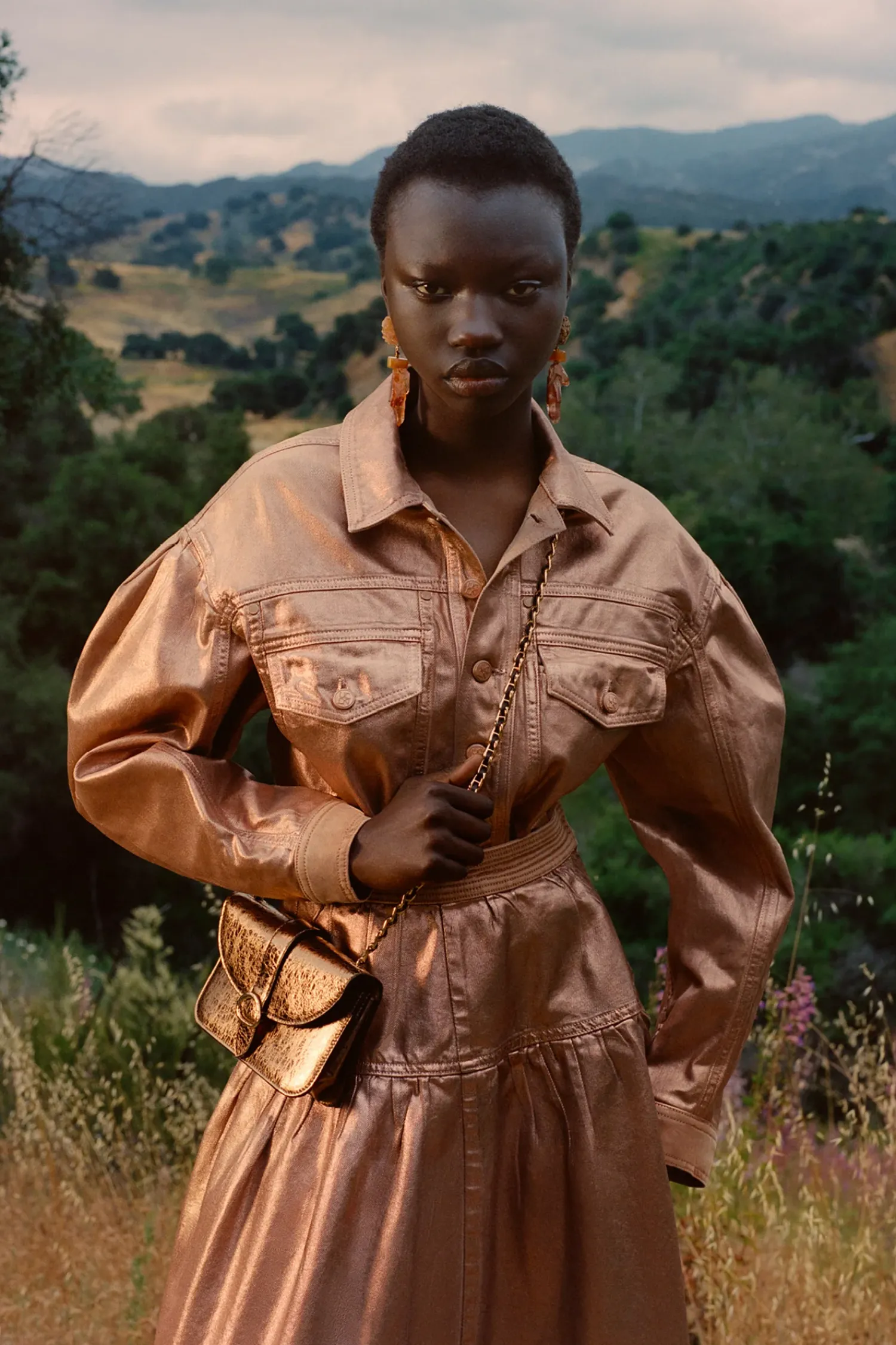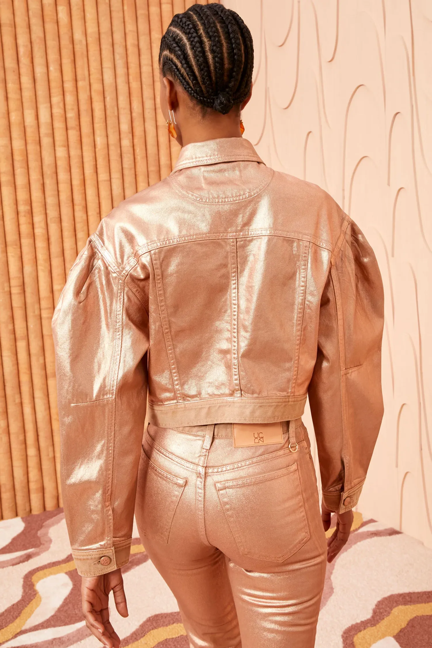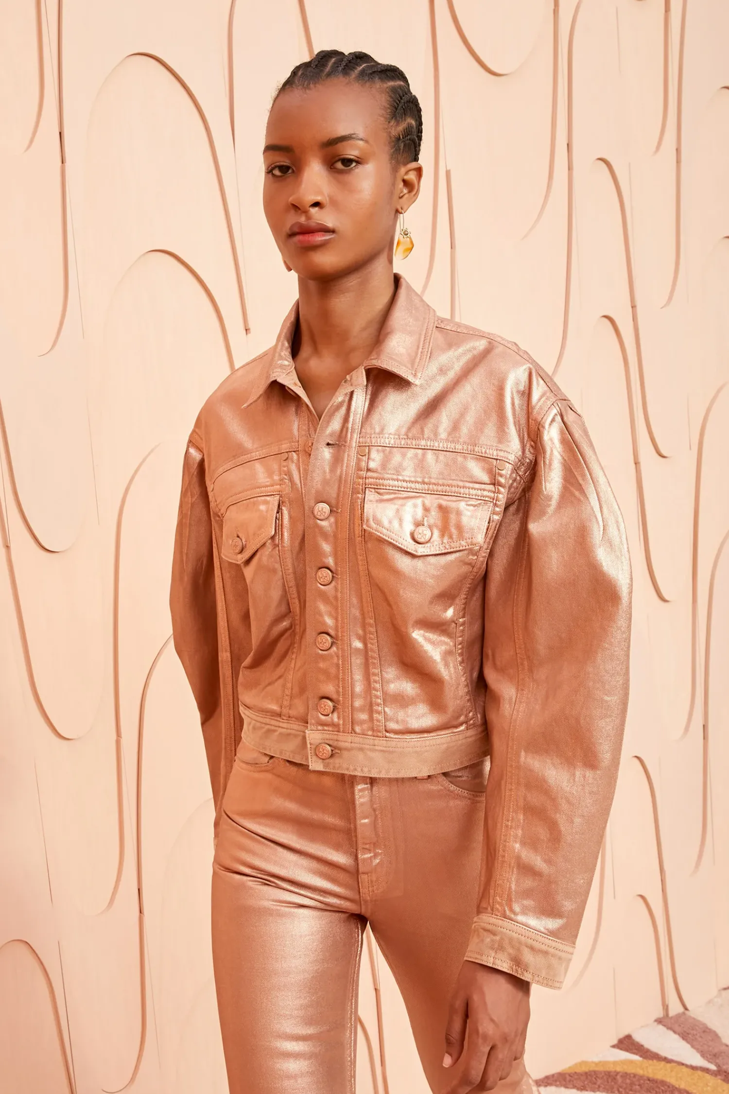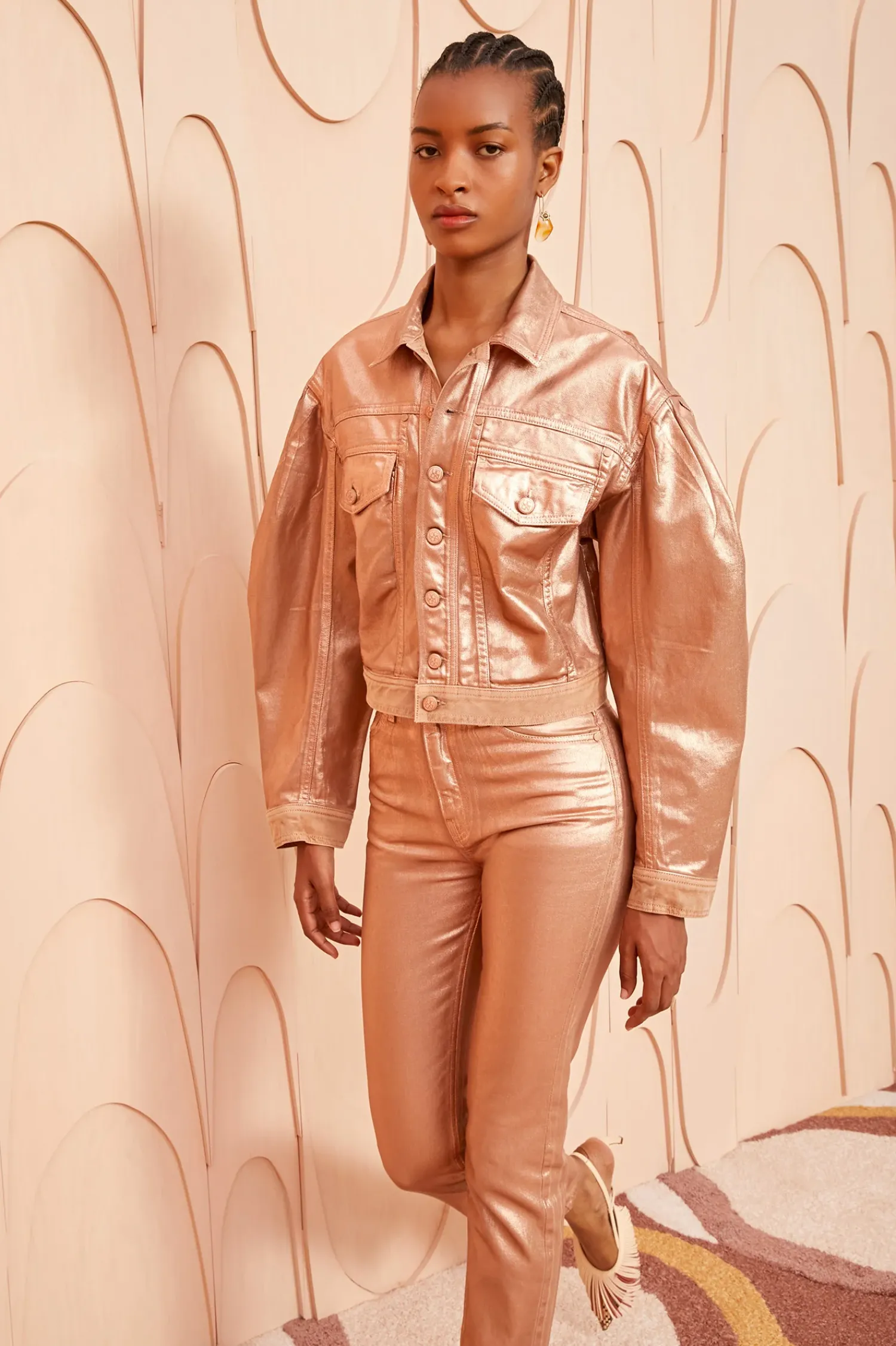 As Featured In Look 34 Of Our Pre-Spring ’24 Lookbook, The Cosette Jacket Is A Best-Loved Silhouette Made From Our Copper Foiled Wash–The Denim Is Dyed Our Light Pink Rosewood Wash, Then The Foil Is Hand-Applied To Create A Lustrous Metallic Finish. Handmade In Los Angeles, This Jacket Features A Cropped Silhouette, Buttoned Pockets, And Signature Puff Sleeves.