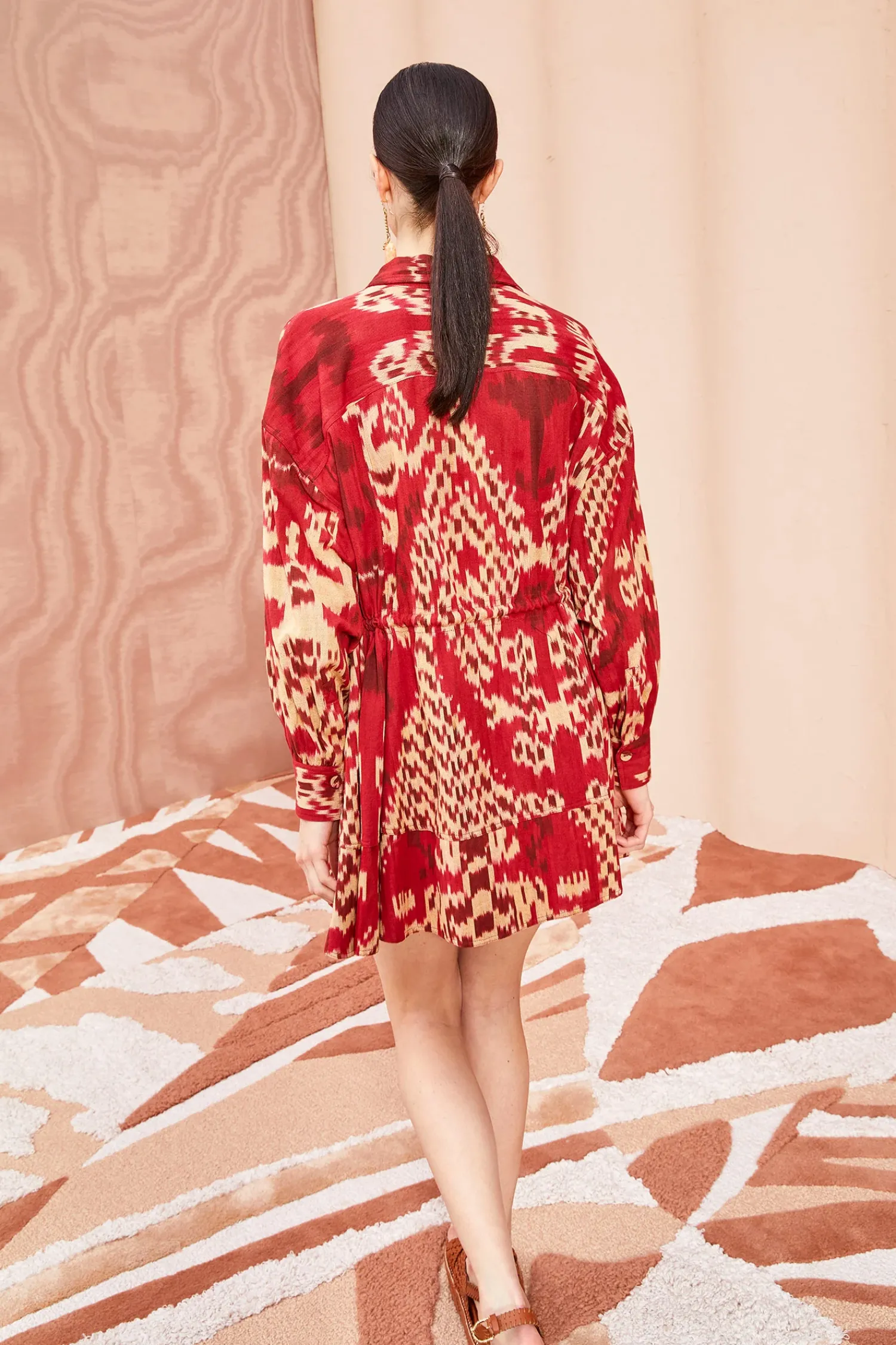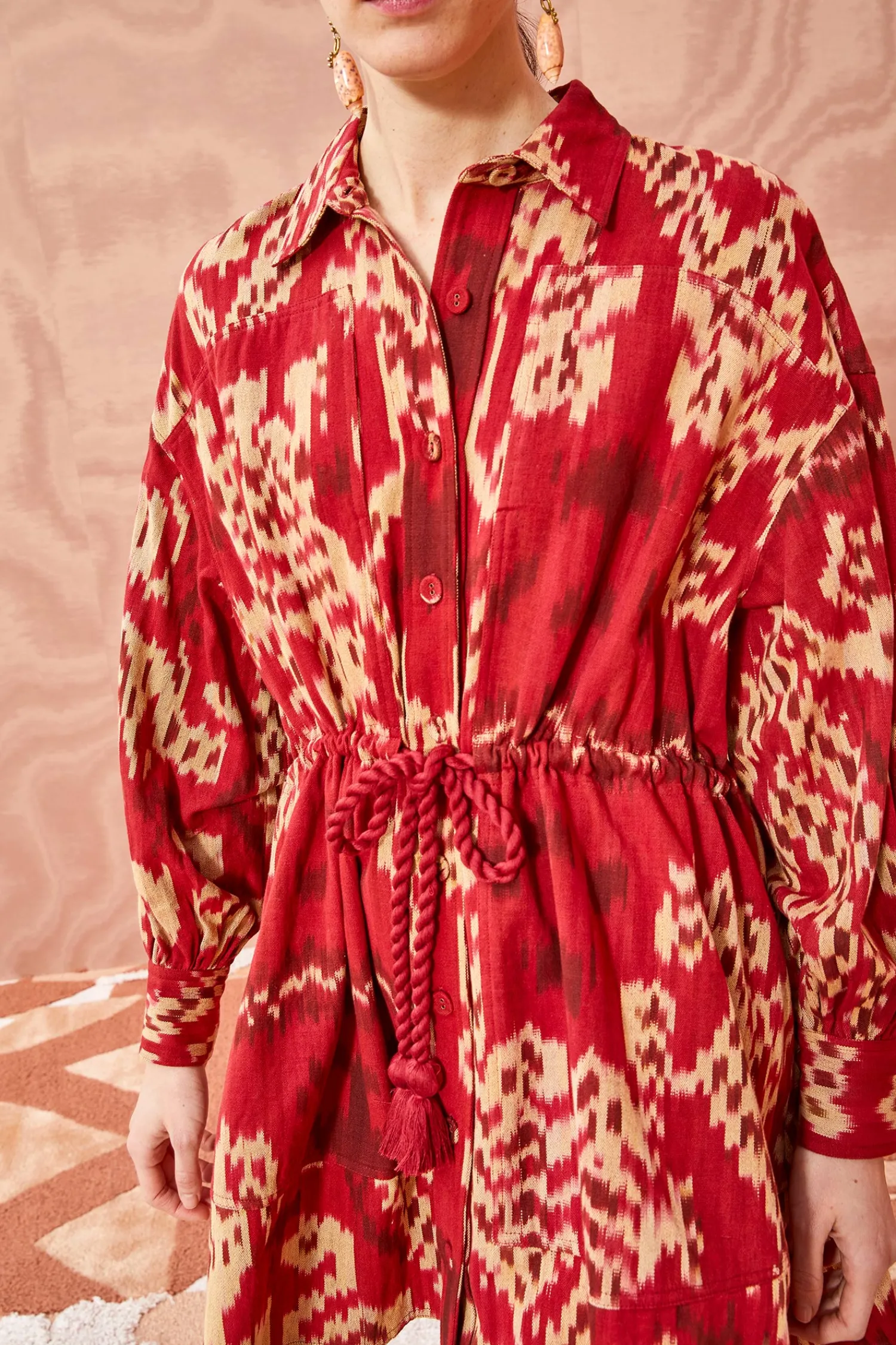 The Dari Dress Is An Oversized Shirtdress Crafted From Our Signature Cotton Handloom Suiting. This Vibrant Red And Tan Mini Dress Features A Classic Shirt Collar, Buttons Along The Front And A Rope Tie That Cinches The Waist. This Piece Was Handcrafted By Our Longtime Artisan Partners In India.