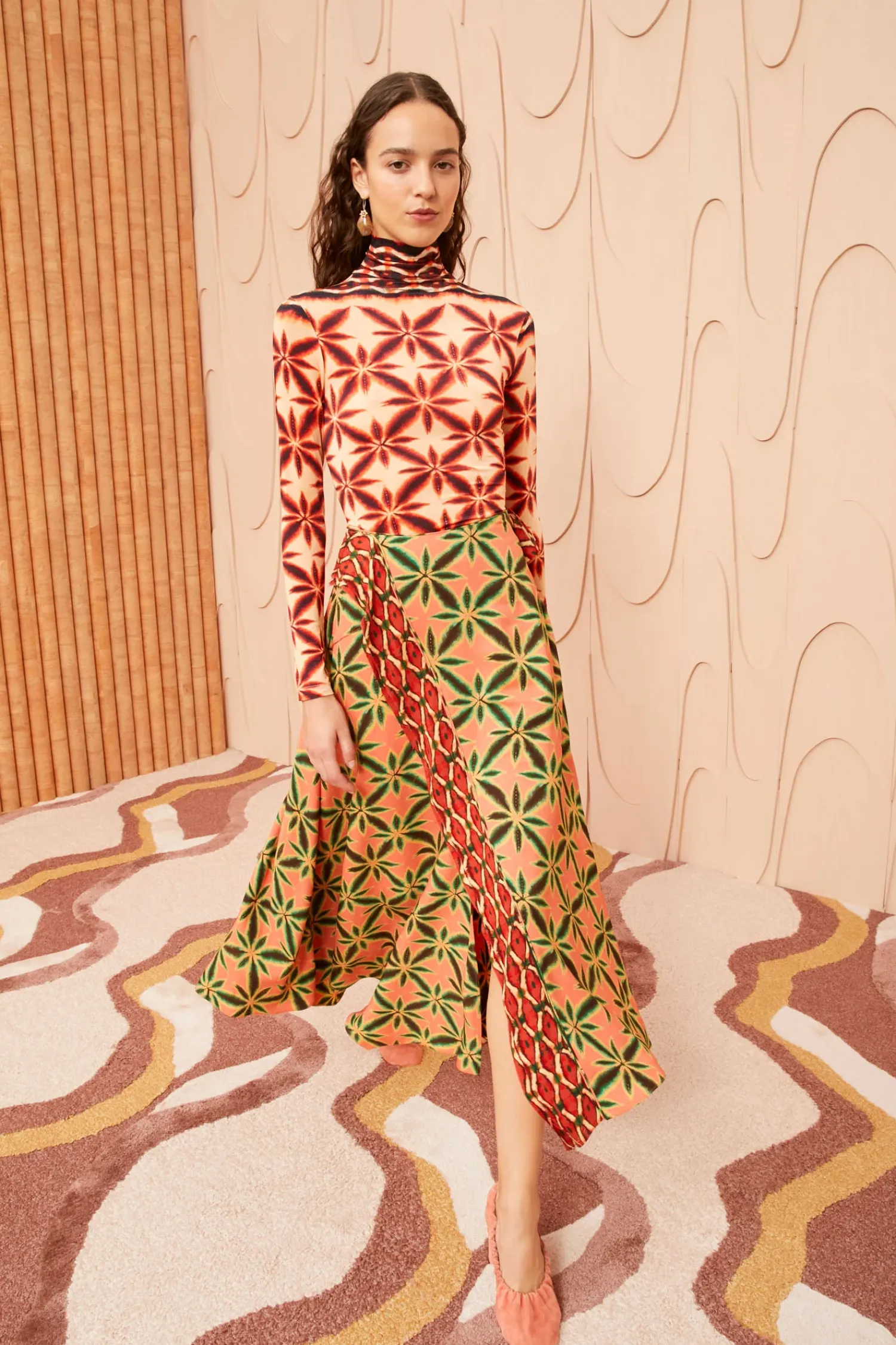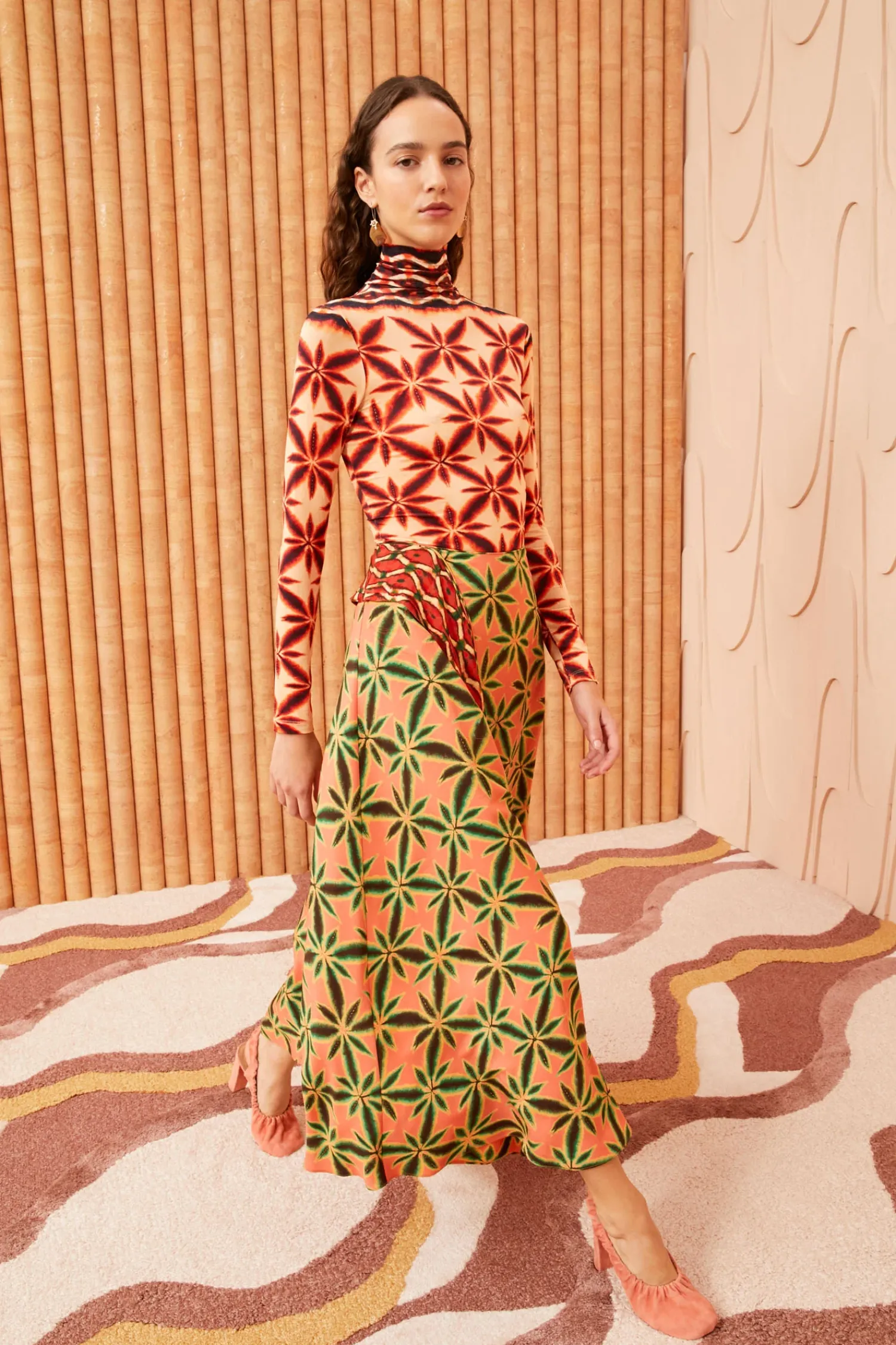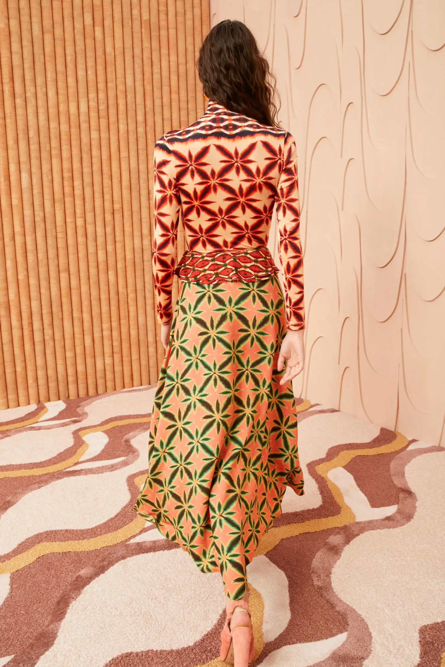 As Featured In Look 2 Of Our Pre-Spring ‘24 Lookbook, The Violette Skirt Is A Flowing Lovely Made From Our Shibori Floral Print In Orange, Brown, And Green. This Midi Skirt Features A Ruffle That Cascades Across The Front Down To The Asymmetric Hem, Giving It A Dreamy, Architectural Feel. It Fastens With A Concealed Side Zipper.