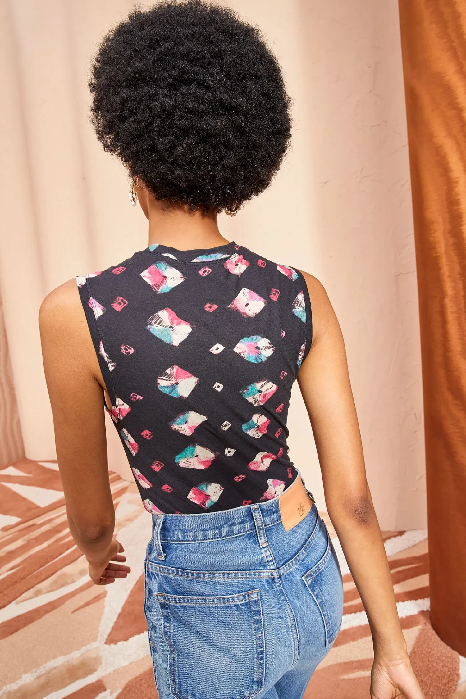 The Ines Tank Is Made From Our Signature Tissue-Weight Jersey Fabric Printed In Our Standout Hypnotic Pattern, A Black Base Decorated With Delicate Multicolored Geometries. This Sleeveless Top Fits Close To The Body And Features Cut-Off Sleeves And A Simple Crewneck. Layers Beautifully Underneath A Bustier-Style Top Or Is A Standout Piece On Its Own.