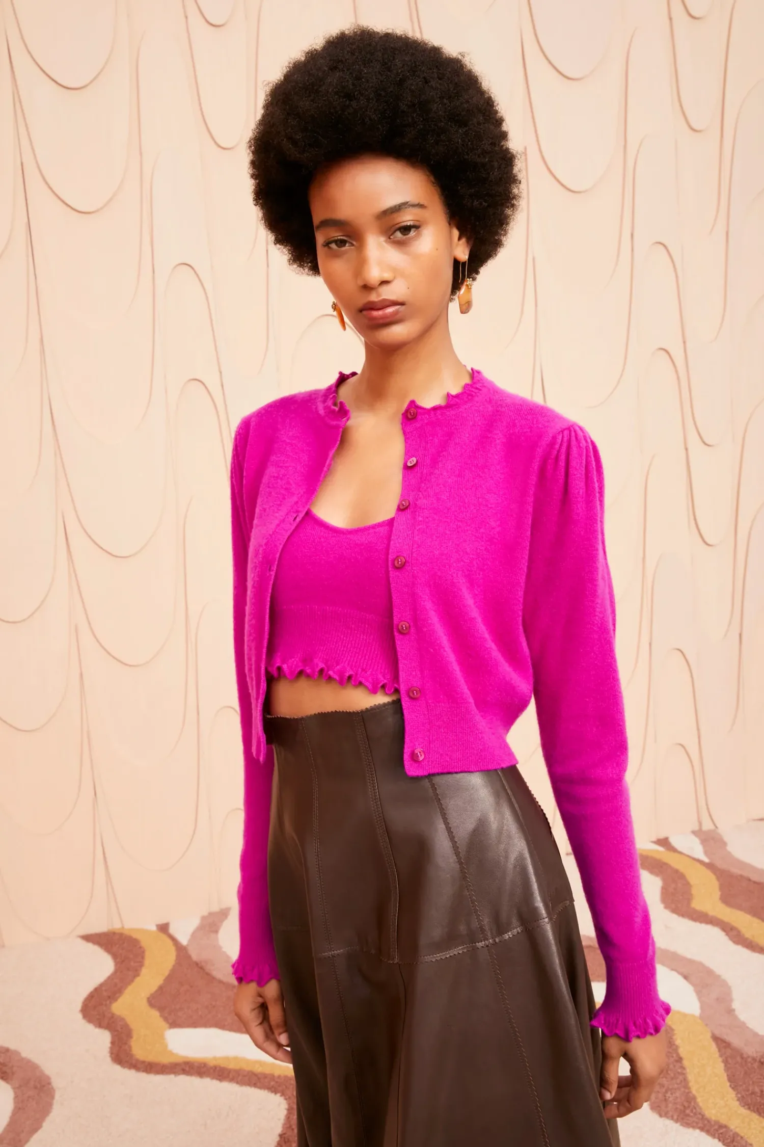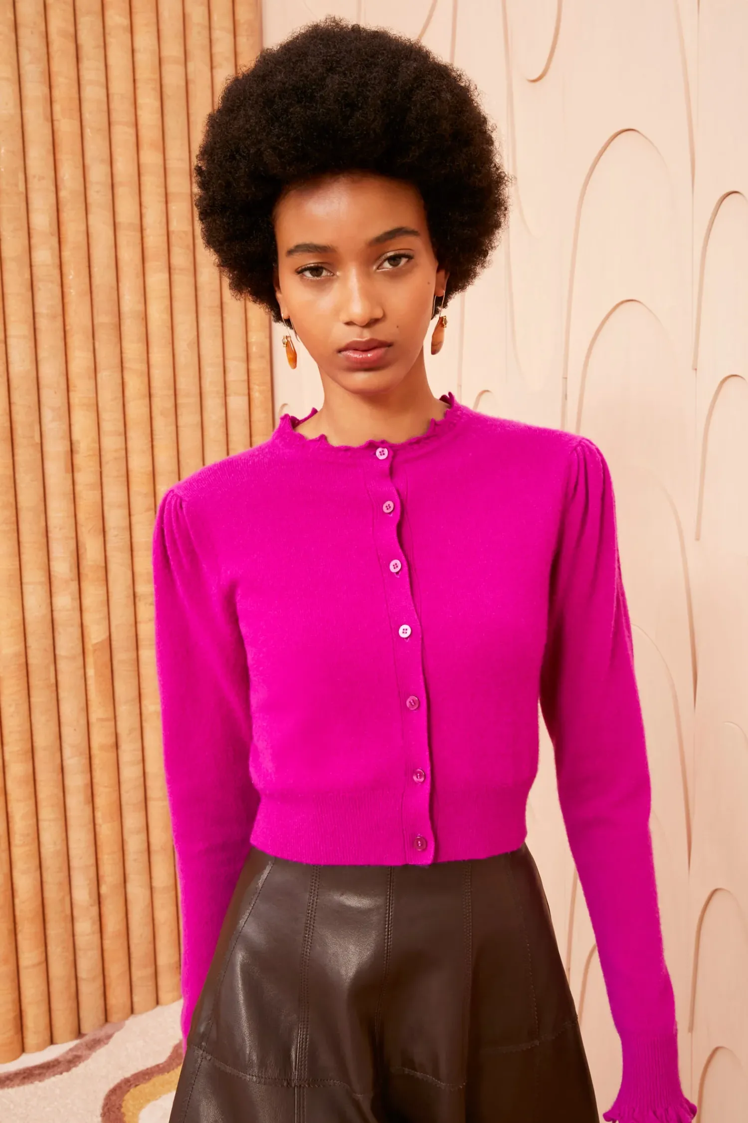 Spun From Super Soft Cashmere, The Jana Cardigan Is A Classic Silhouette You’Ll Reach For Year-Round. This Long-Sleeve Fuchsia Style Is Gently Gathered At The Shoulders And Is Trimmed With Pointelle Ruffles. It Fastens With Delicate Mother-Of-Pearl Buttons.