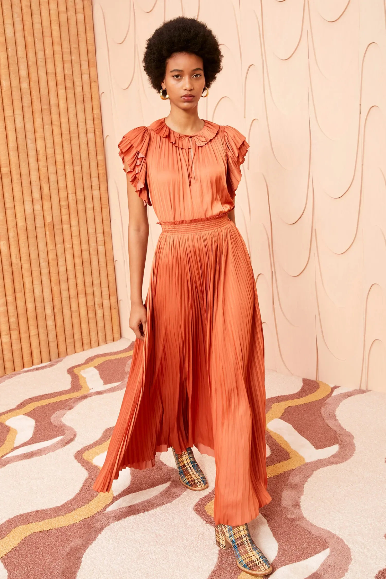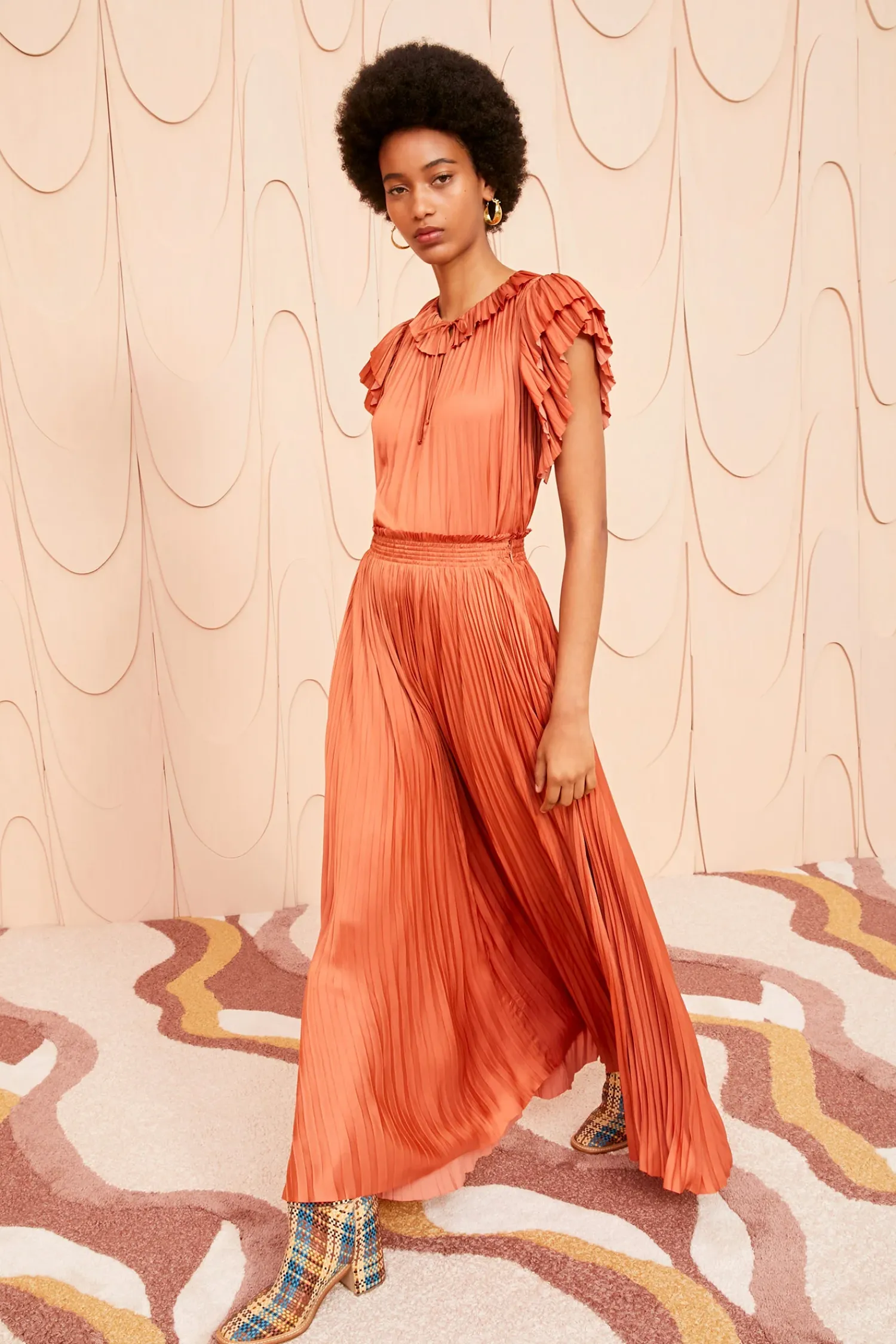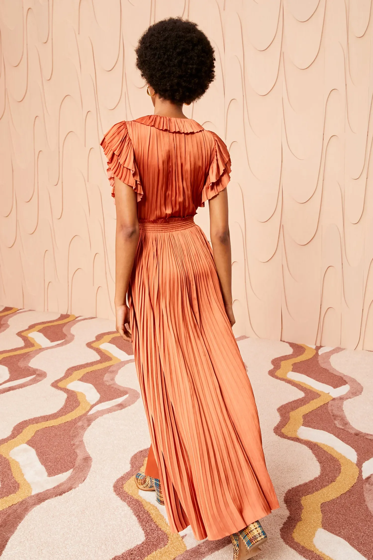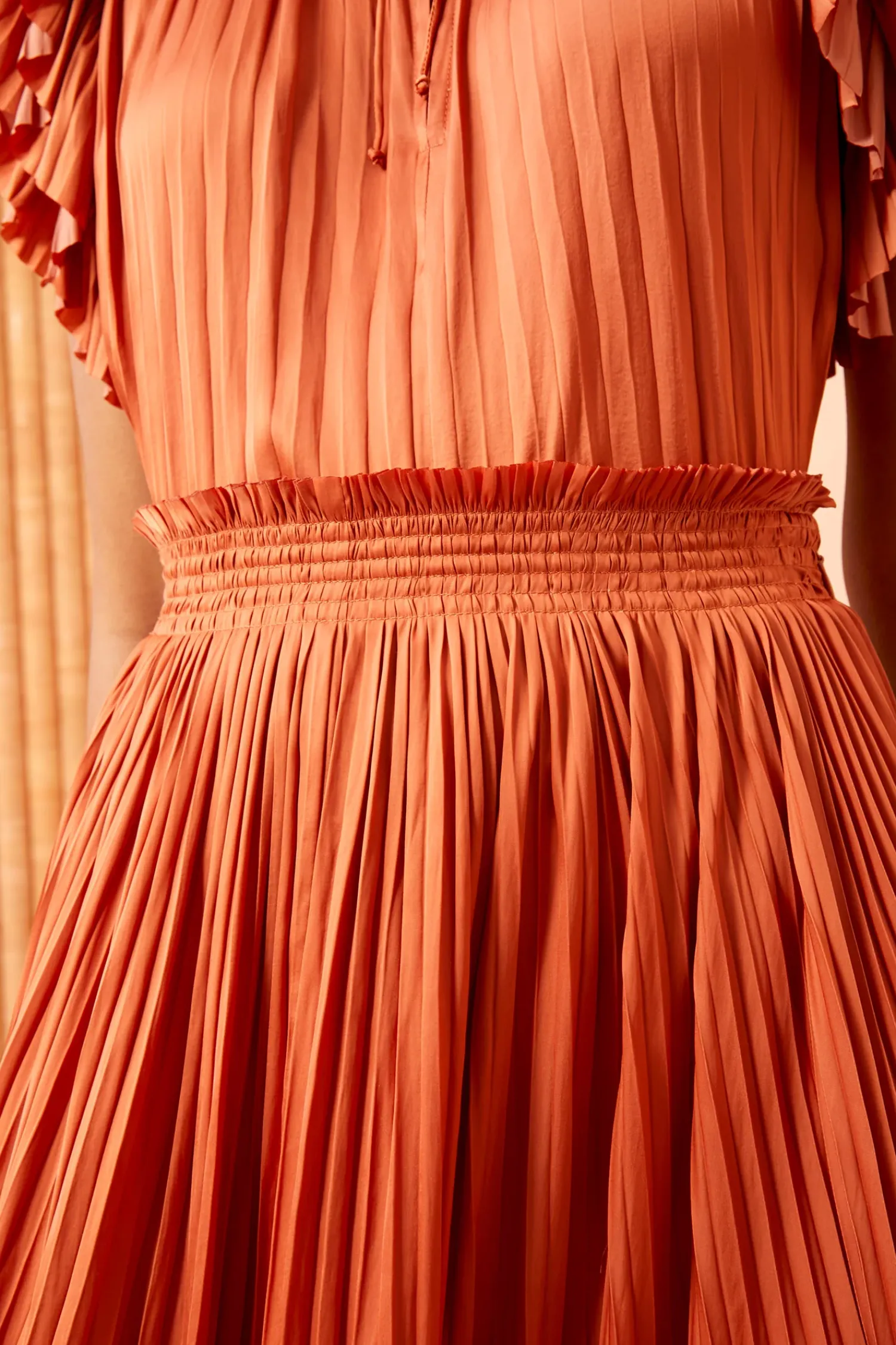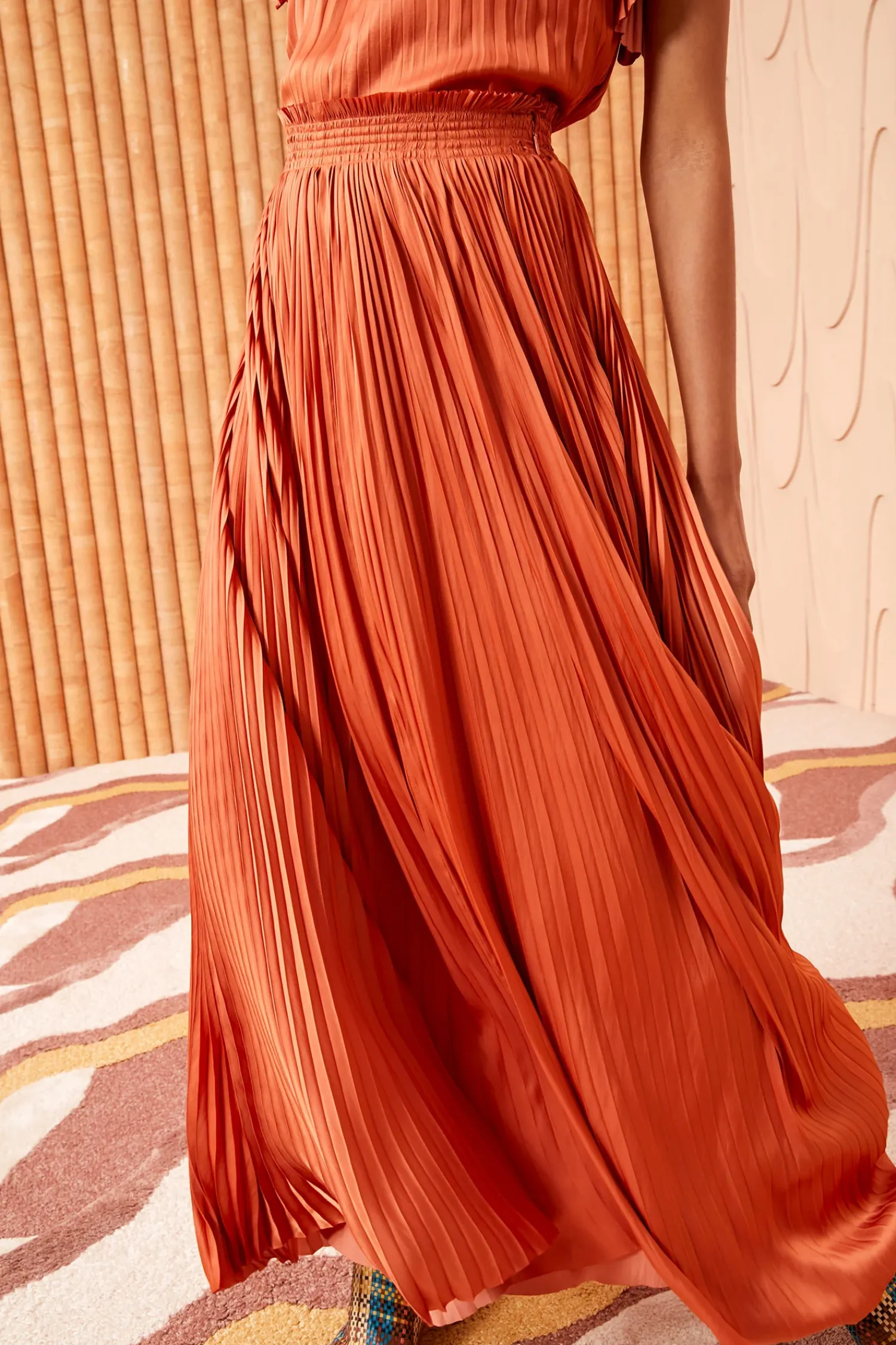 In A Warm, Earthy Orange. This Maxi Skirt Has A Fully Pleated Silhouette That Creates Gorgeous Movement. It Fastens With A Side-Seam Zipper.