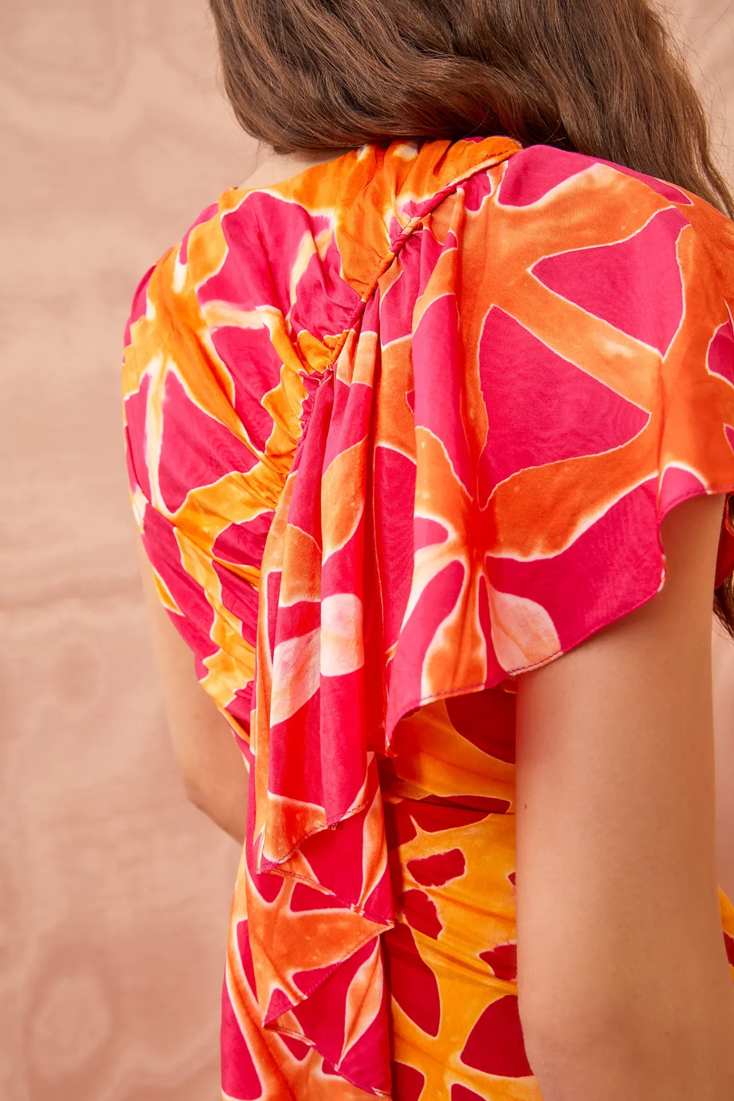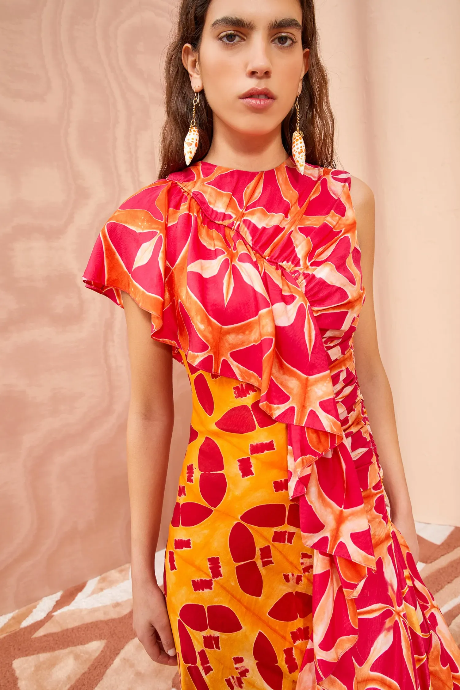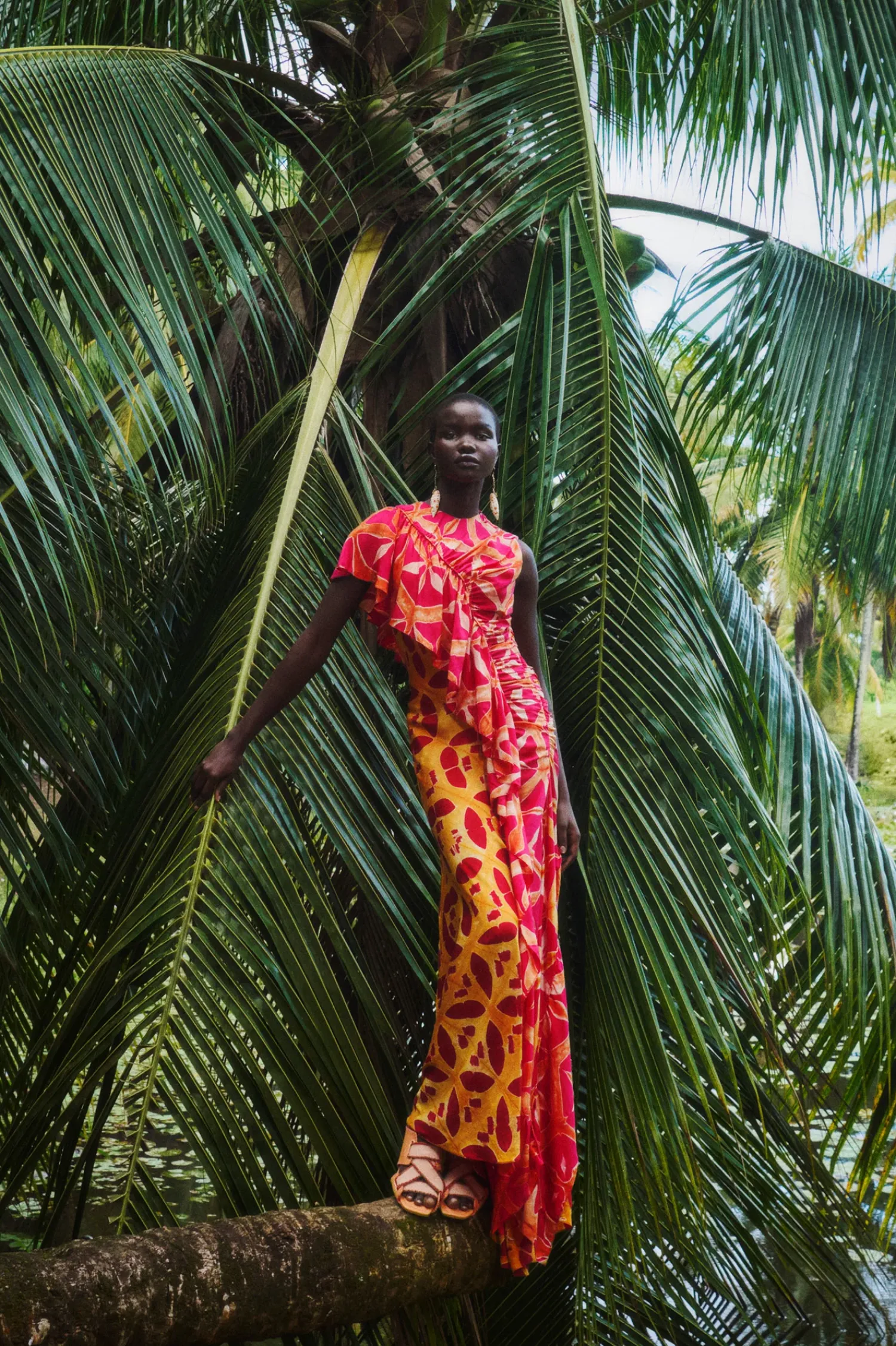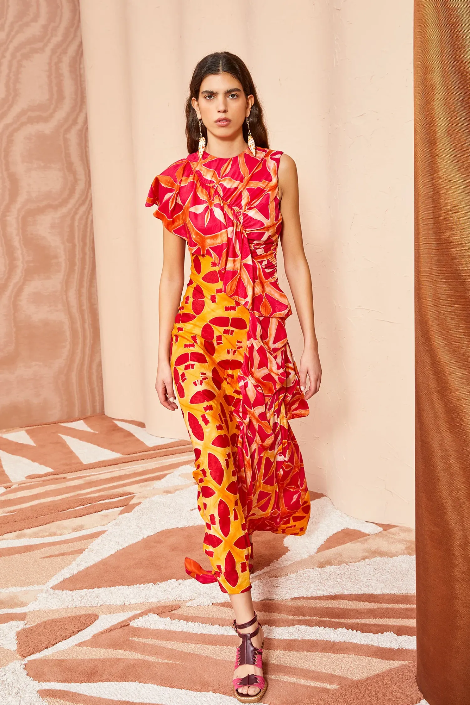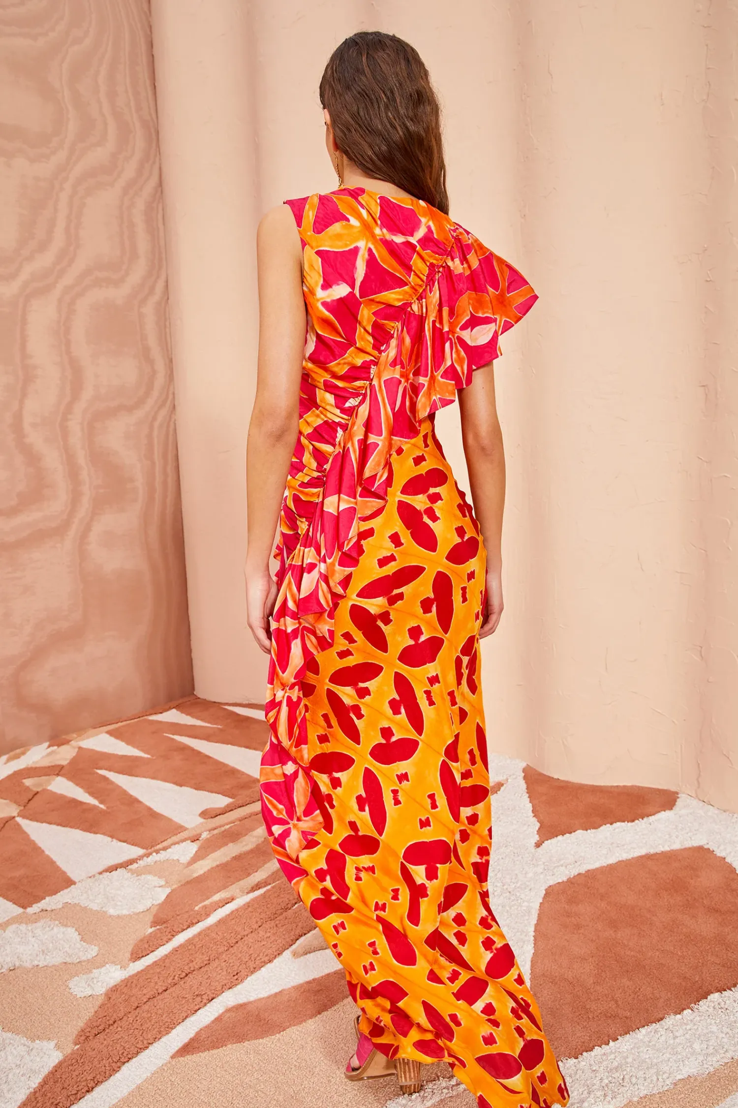 As Featured In Look 2 Of Our Pre-Fall ’23 Lookbook, The Lali Dress Is Handcrafted By A Collective Of Women In Bangalore, Using An Intricate Technique Known As Clamp Dyeing That Creates Beautifully Prismatic Patterns. No Two Pieces Are Alike. This Red, Pink And Orange Maxi Dress Features A Handkerchief Hem, Delicate Ruching Along The Bodice And Hip, And A Stunning Cascade Ruffle That Begins At The Shoulder And Falls To The Hem. Finished With A Side-Seam Zipper Closure.