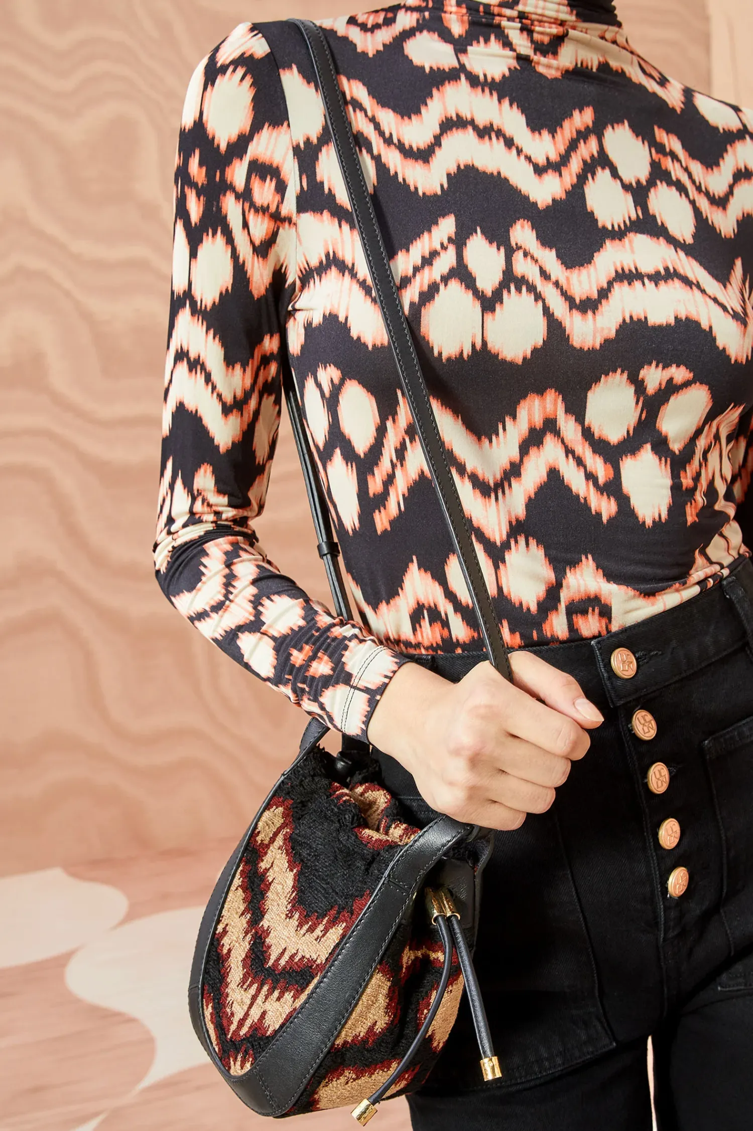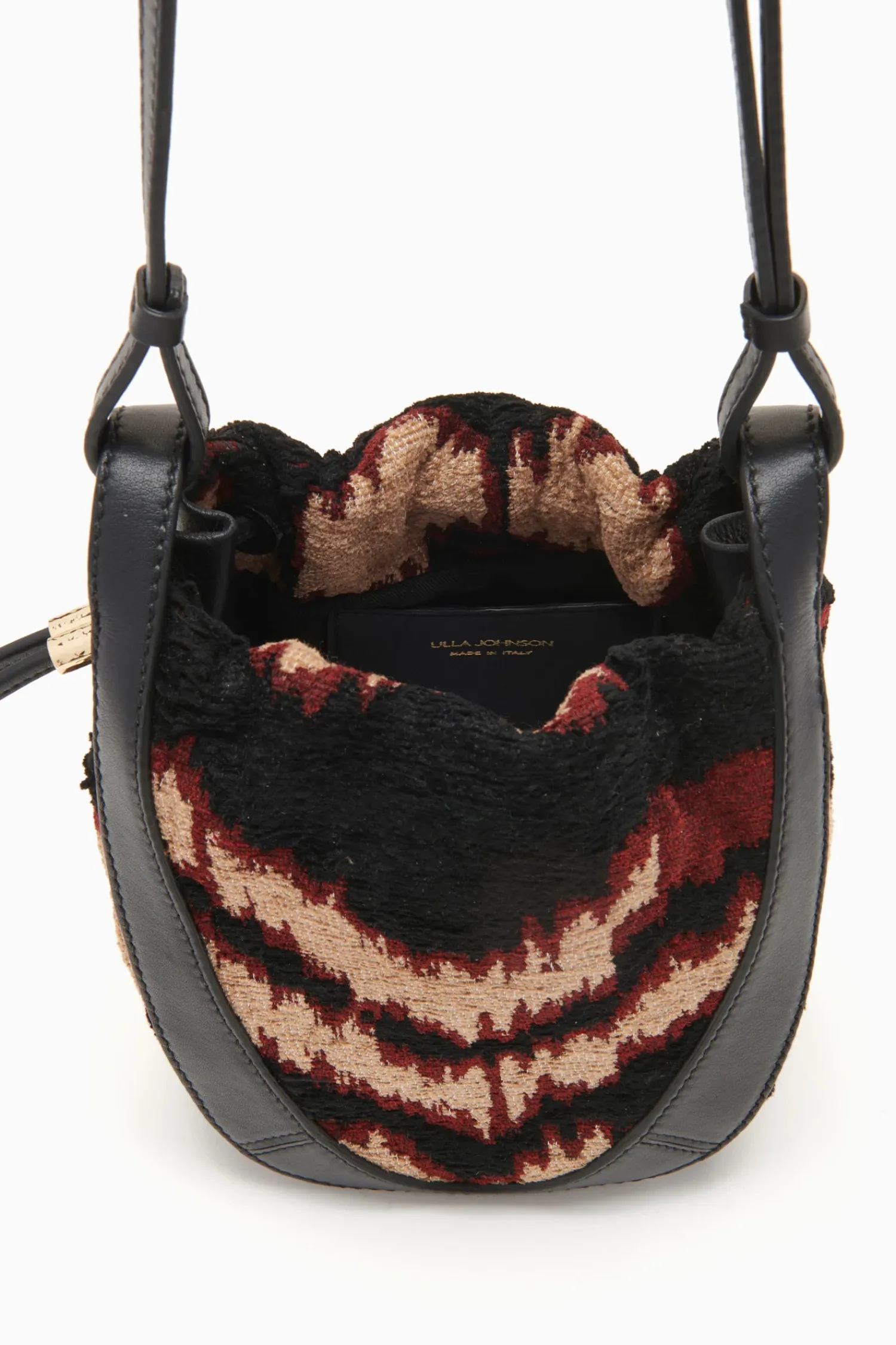 The Lee Pouch Is A Mini Crossbody Silhouette Crafted In Italy From Jacquard In A Vibrant Obsidian And Cream Motif That Mirrors Our Ready-To-Wear Collection. Framed By Supple Leather, This Drawstring-Style Bag Features An Adjustable Crossbody Strap And An Internal Pocket To Fit Your Everyday Essentials.