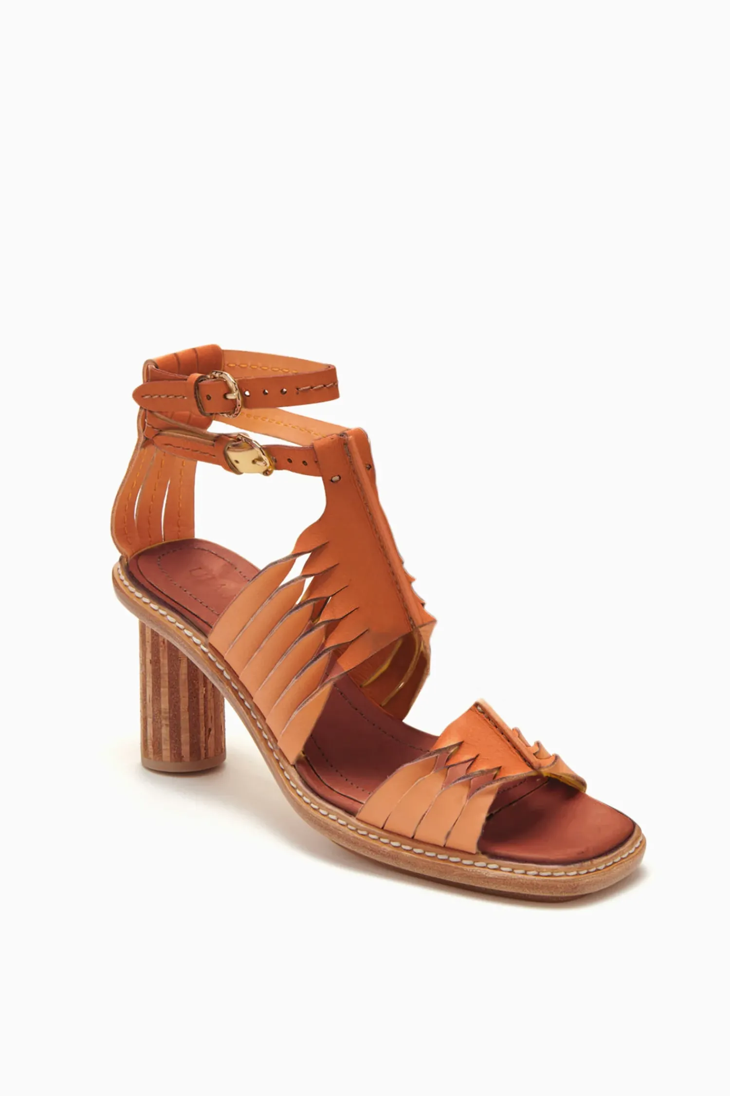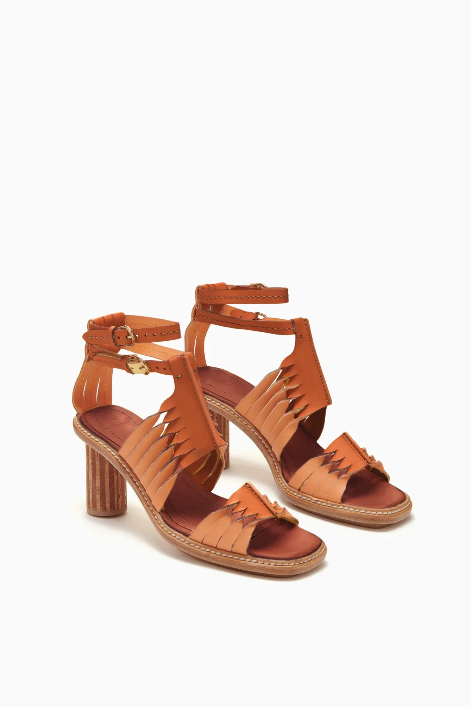 As Featured Originally Our Ss22 Runway Show, The Madeira Twisted Contrast Heel Is Crafted From Rich Brown Calfskin Featuring Twisted Slits Of Leather That Expose A Hint Of Contrast. This Timeless High-Heeled Silhouette Is Set On A Striped Cylinder Cork Heel. Features A Leather Footbed, Stitching Along The Base And Double Ankle Straps With Shiny Brass Detailing.