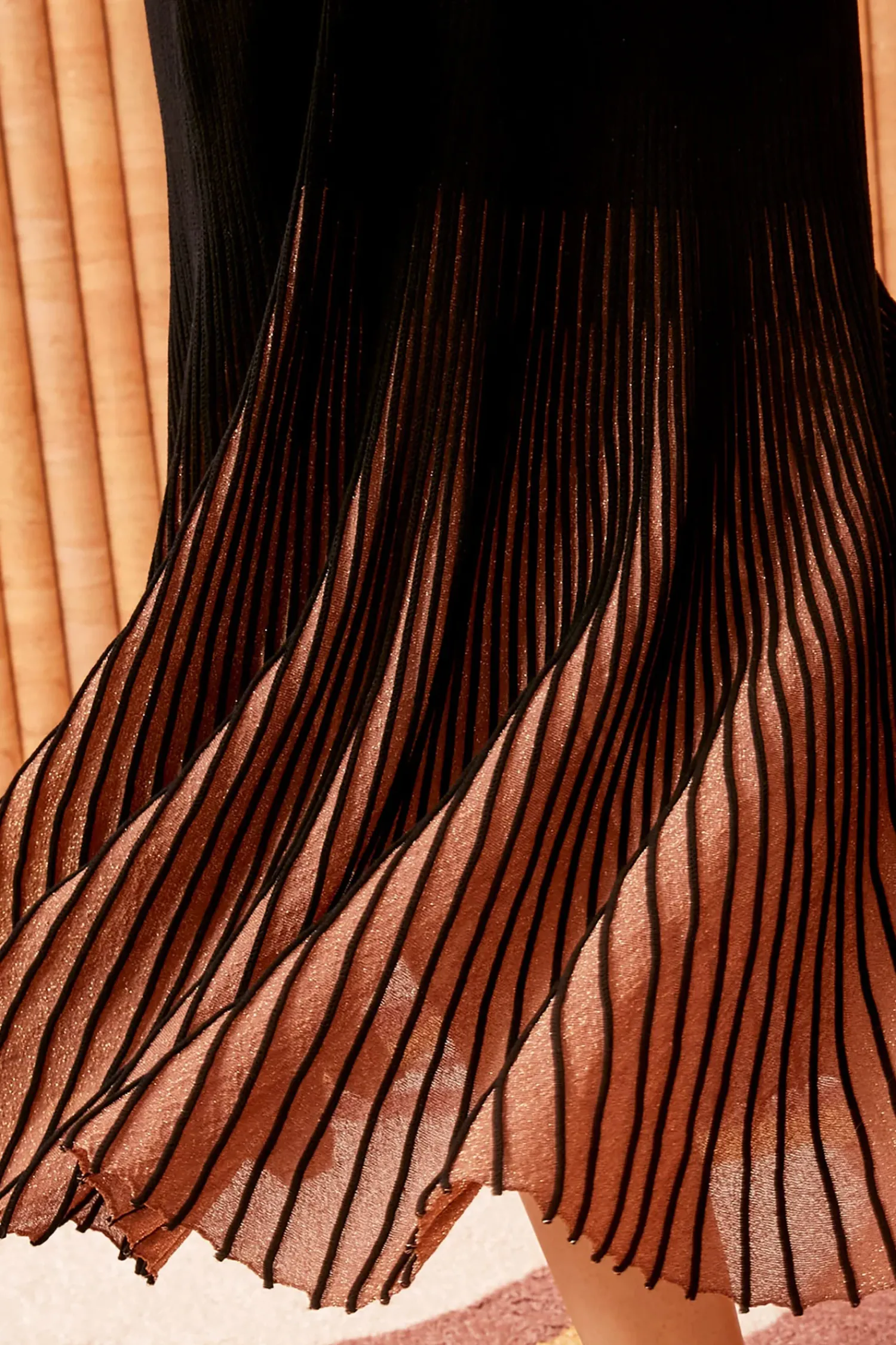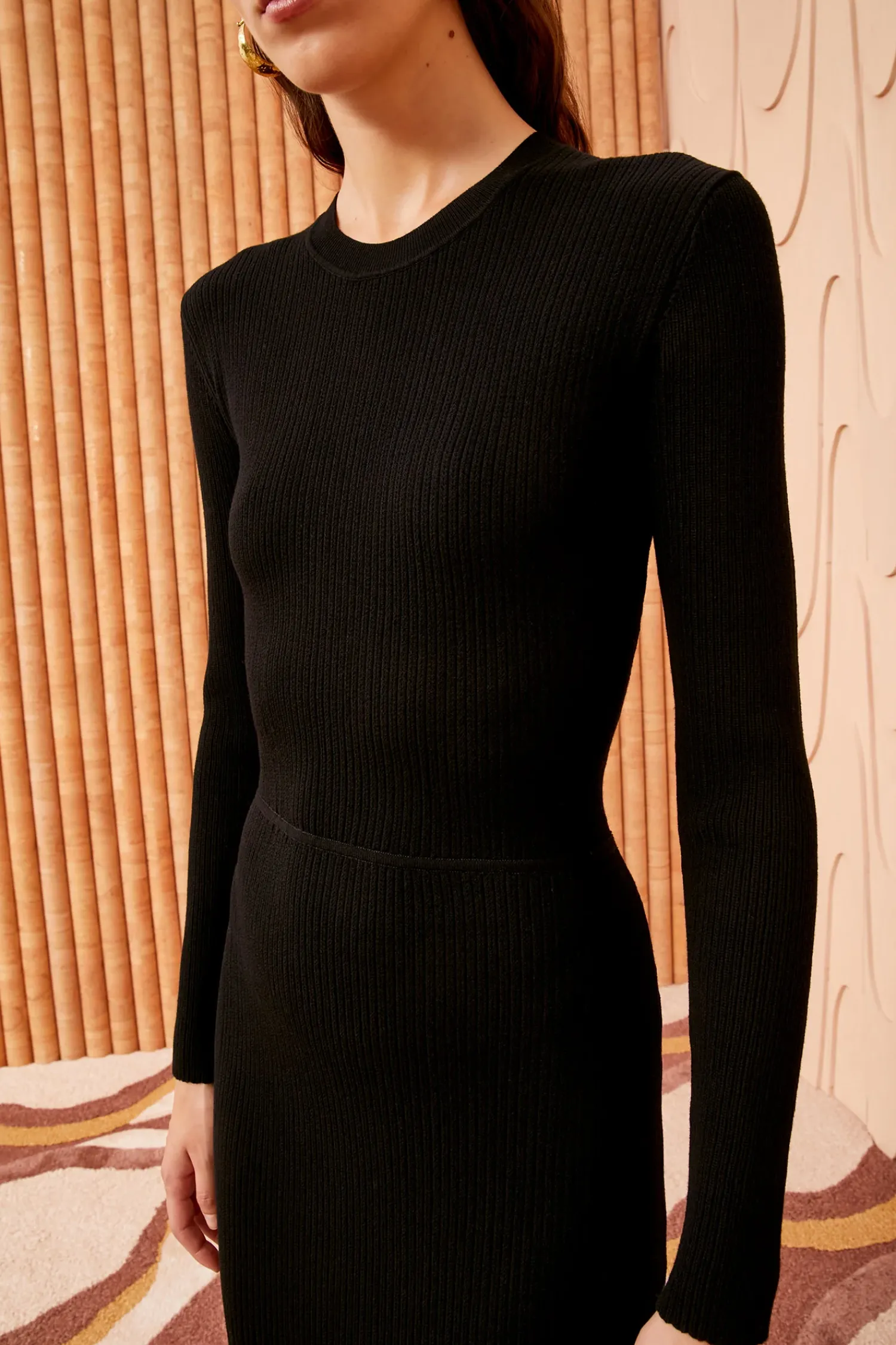 Defined By Languid And Elegant Volumes, The Magnolia Dress Is Crafted From Our Ultrafine Sunburst Knit In Timeless Black Svart. This Long-Sleeve Dress Has A Round Neckline And Unfurls To A Midi-Length Hem That Explodes With Shimmering Bronze Hues.