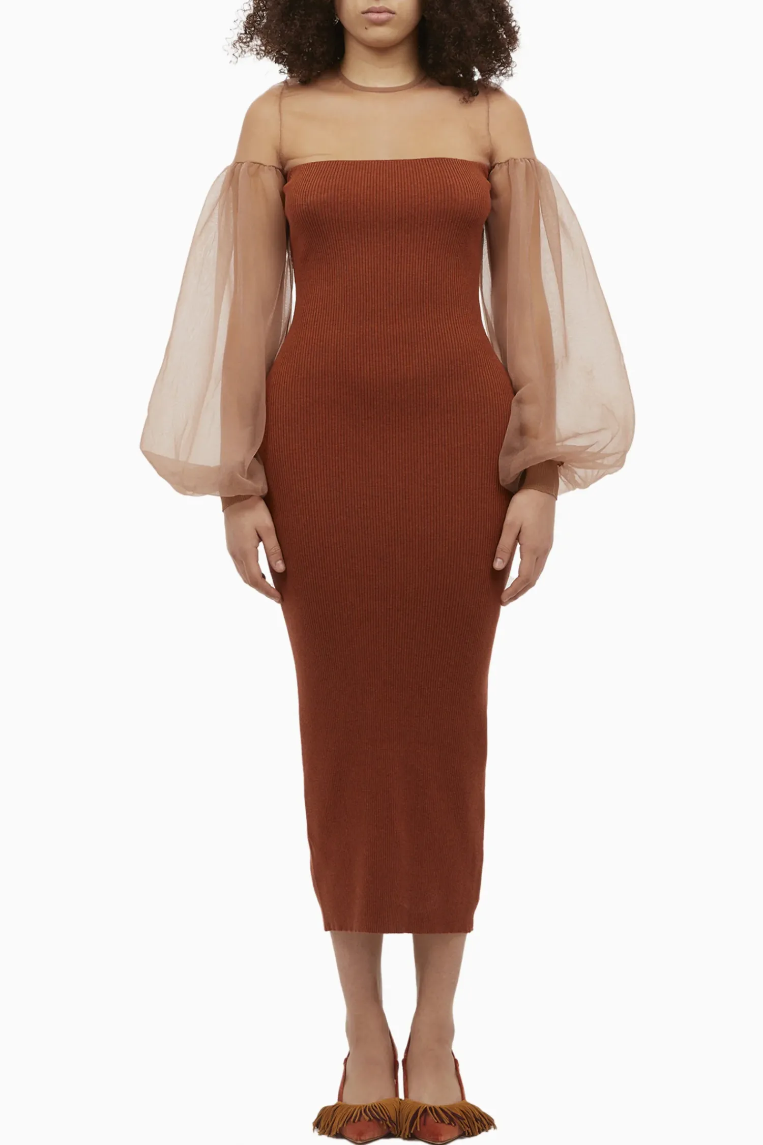 An Exquisite Play Between Textures, Our Milla Dress Is Spun From Responsible Wool Standard-Certified Extrafine Merino Wool And Cotton-Blend That’S Accentuated With Voluminous Long Sleeves Spun From A Sheer Jersey Stitch. This Body-Skimming Midi Dress Is Finished With A Buttoned Keyhole At The Back.