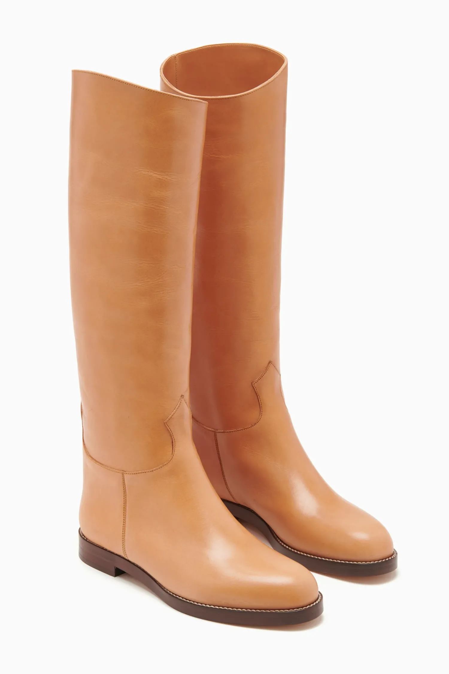 The Ninia Riding Boot Is Made From Tan-Hued Vachetta Leather That’S Been Vegetable Tanned To Enhance Its Beautiful, Natural Finish. Designed With Comfort And Style In Mind, These Boots Have A Curved Silhouette With An Asymmetrical Topline And Rest On A Slight Heel.