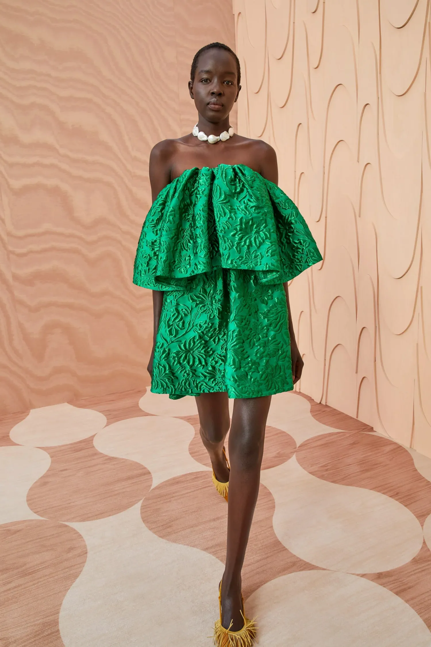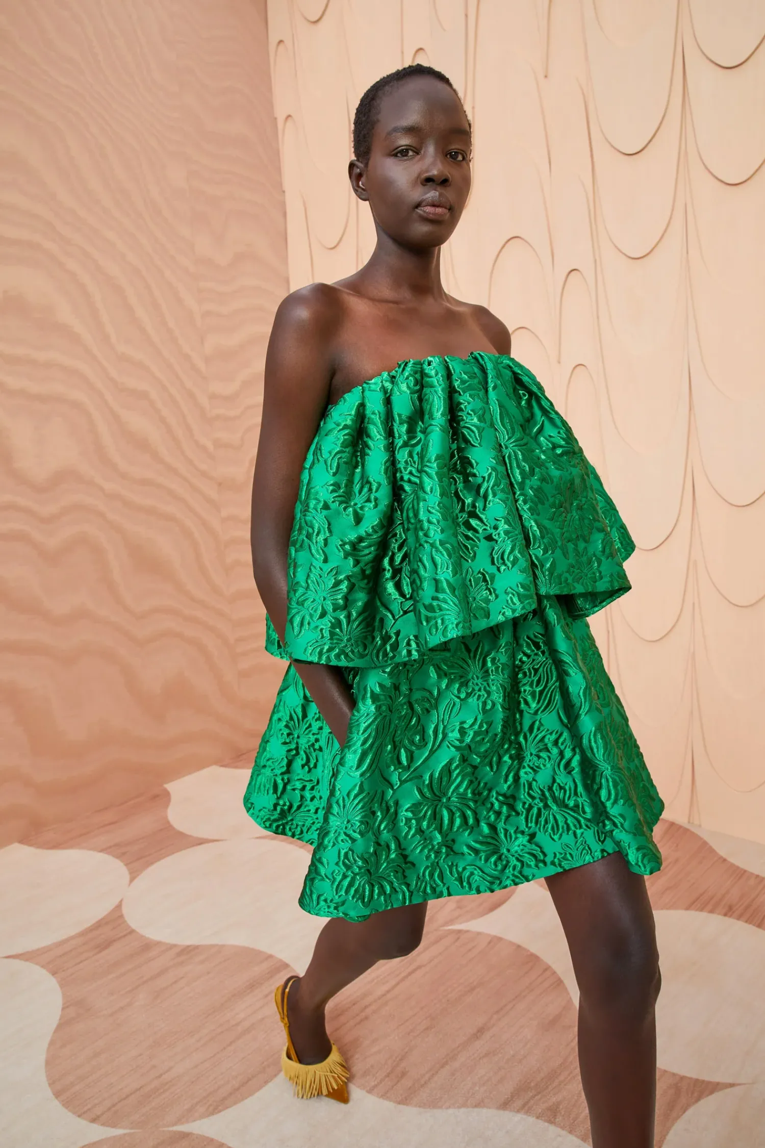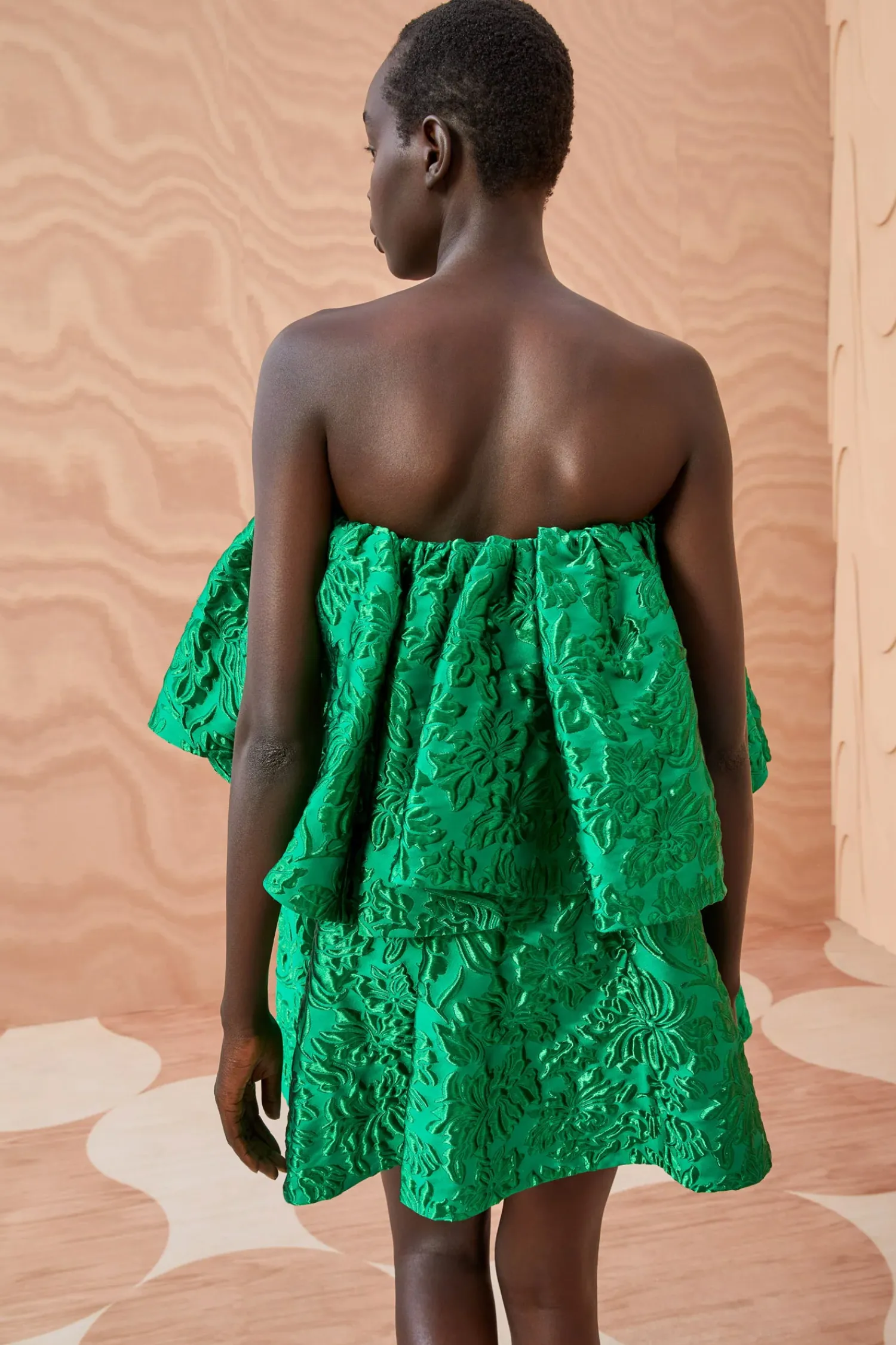 As Featured In Look 50 Of Our Autumn/Winter ’23 Runway Show, The Oui Dress Is Made From Our Italian Lurex Cloque Jacquard Which Arrives In An Ethereal Yet Striking Monochrome Emerald Hue. This Impactful Tiered Mini Dress Features A Strapless Neckline, Light Boning Within The Top Lining, And Is Finished With A Side-Seam Zipper.