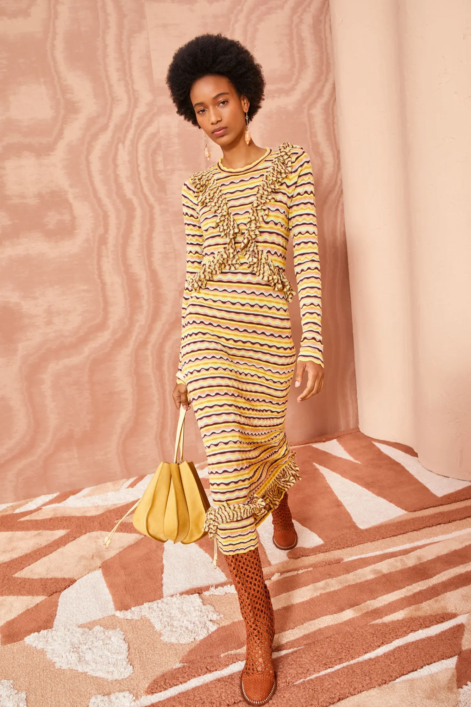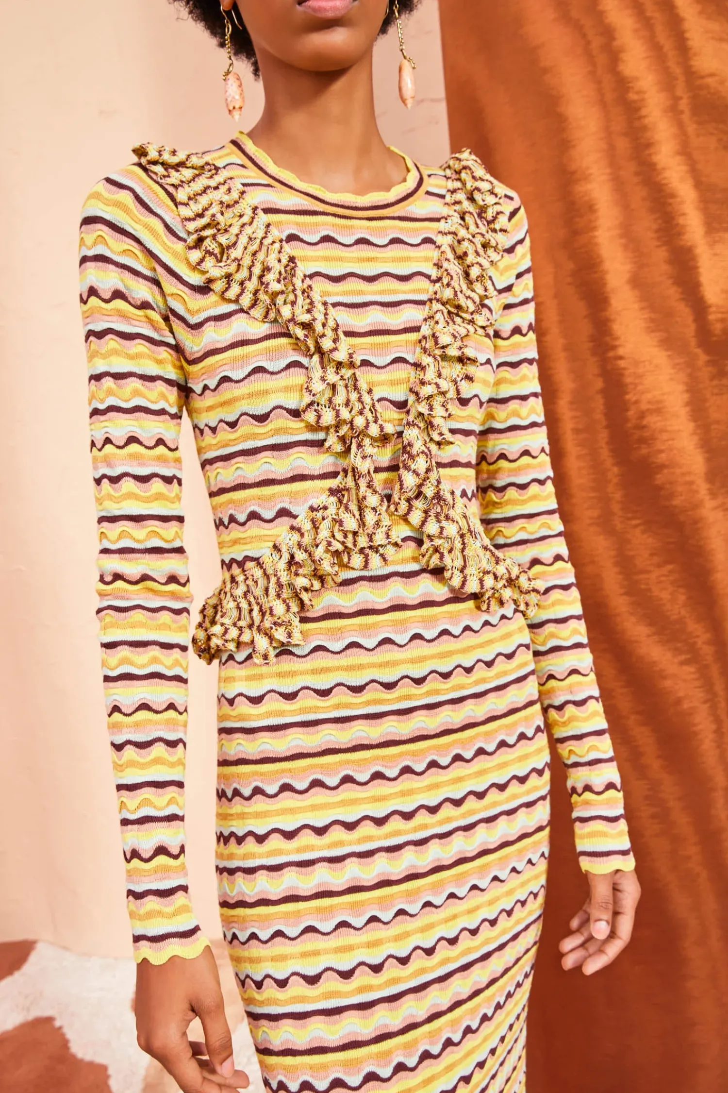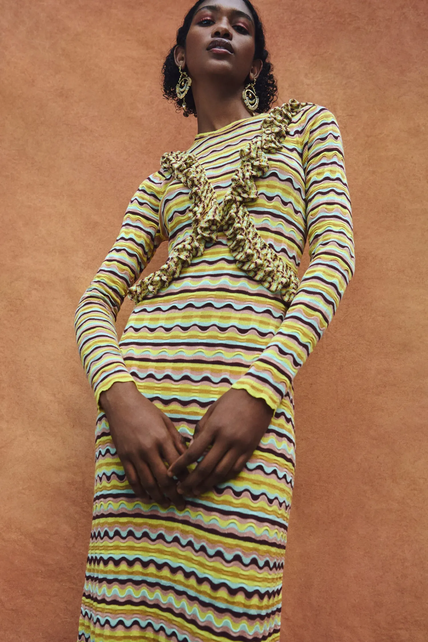 As Featured In Look 23 Of Our Pre-Fall ’23 Lookbook, The Pascale Dress Is Knitted In A Silk Cotton Blend. This Body-Skimming Knit Dress Features Rippled Wave Motifs In A Myriad Of Citrus Hues, While Intricate Ruffles Form A Criss-Cross Pattern Across The Bodice And Along The Hem.