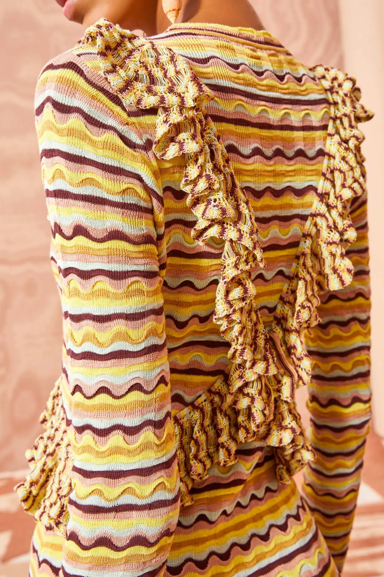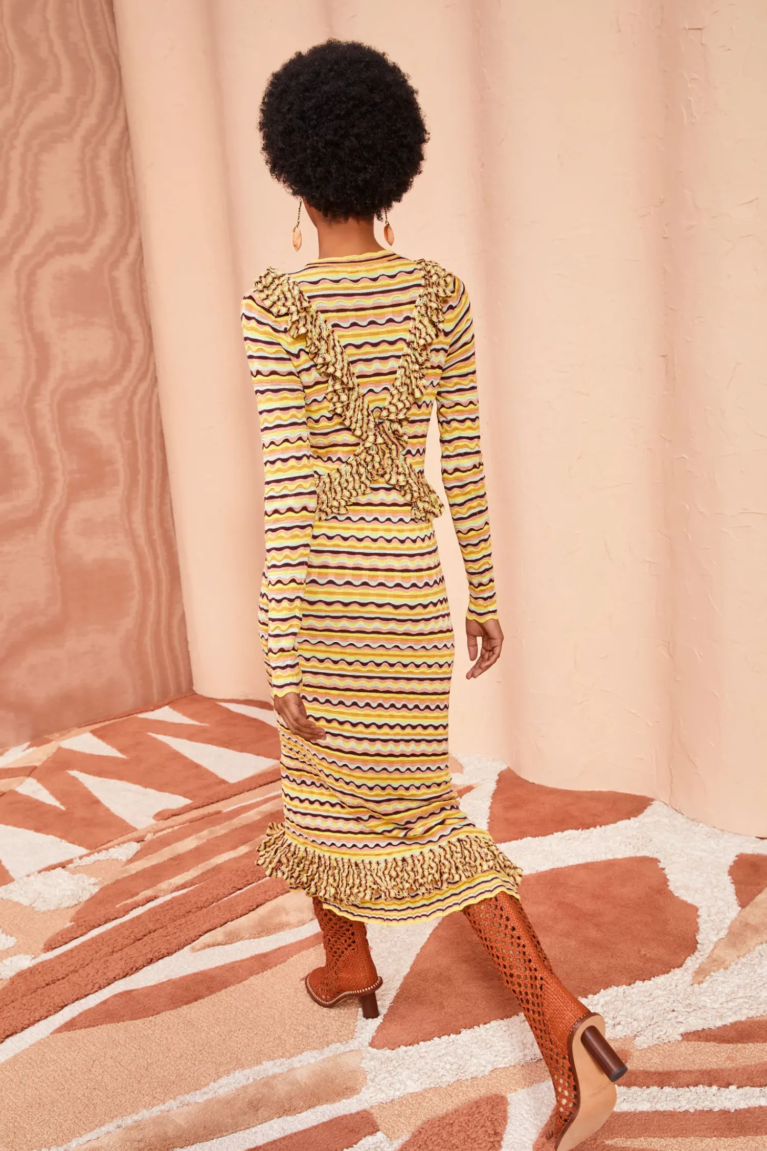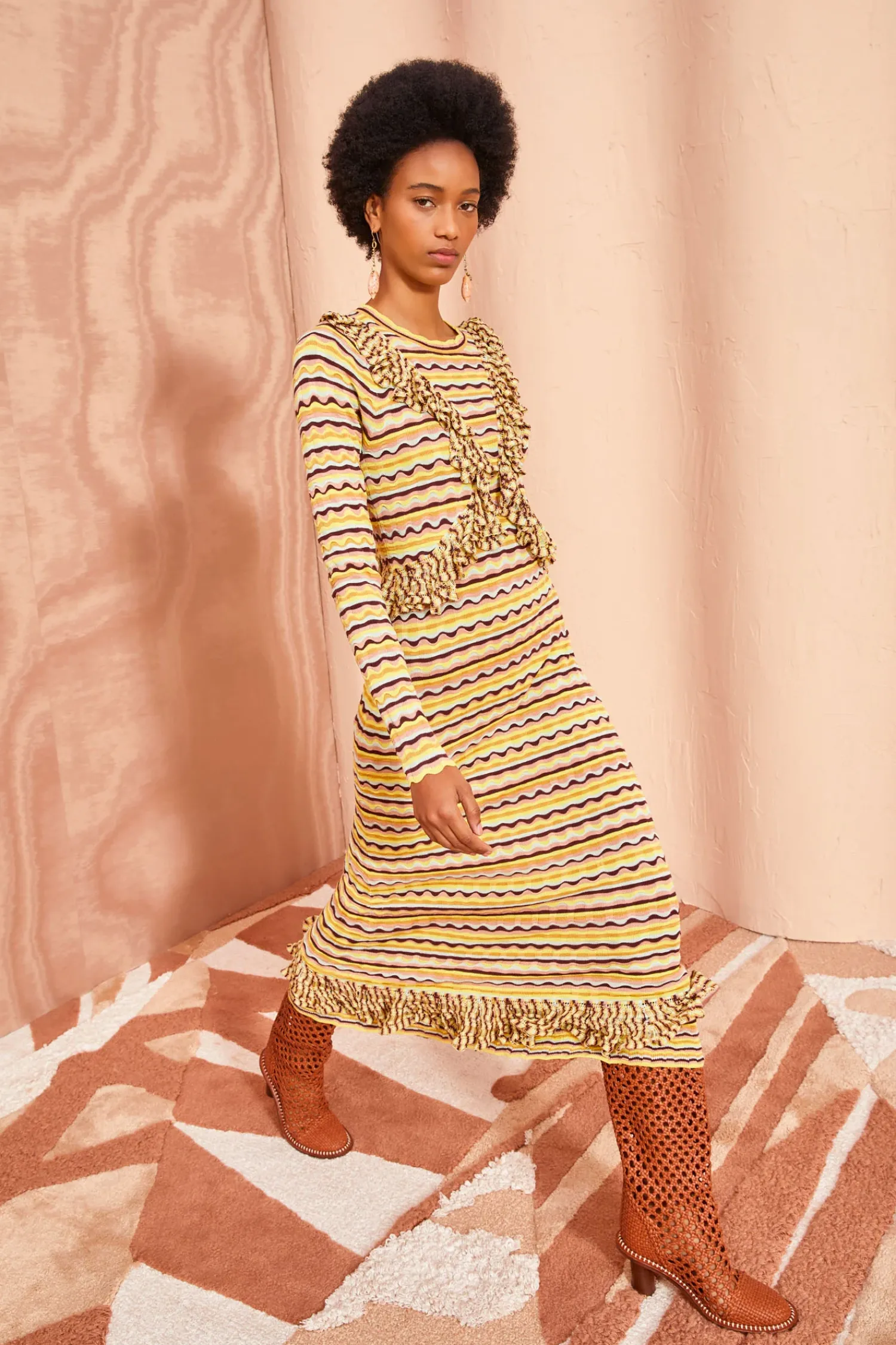 As Featured In Look 23 Of Our Pre-Fall ’23 Lookbook, The Pascale Dress Is Knitted In A Silk Cotton Blend. This Body-Skimming Knit Dress Features Rippled Wave Motifs In A Myriad Of Citrus Hues, While Intricate Ruffles Form A Criss-Cross Pattern Across The Bodice And Along The Hem.