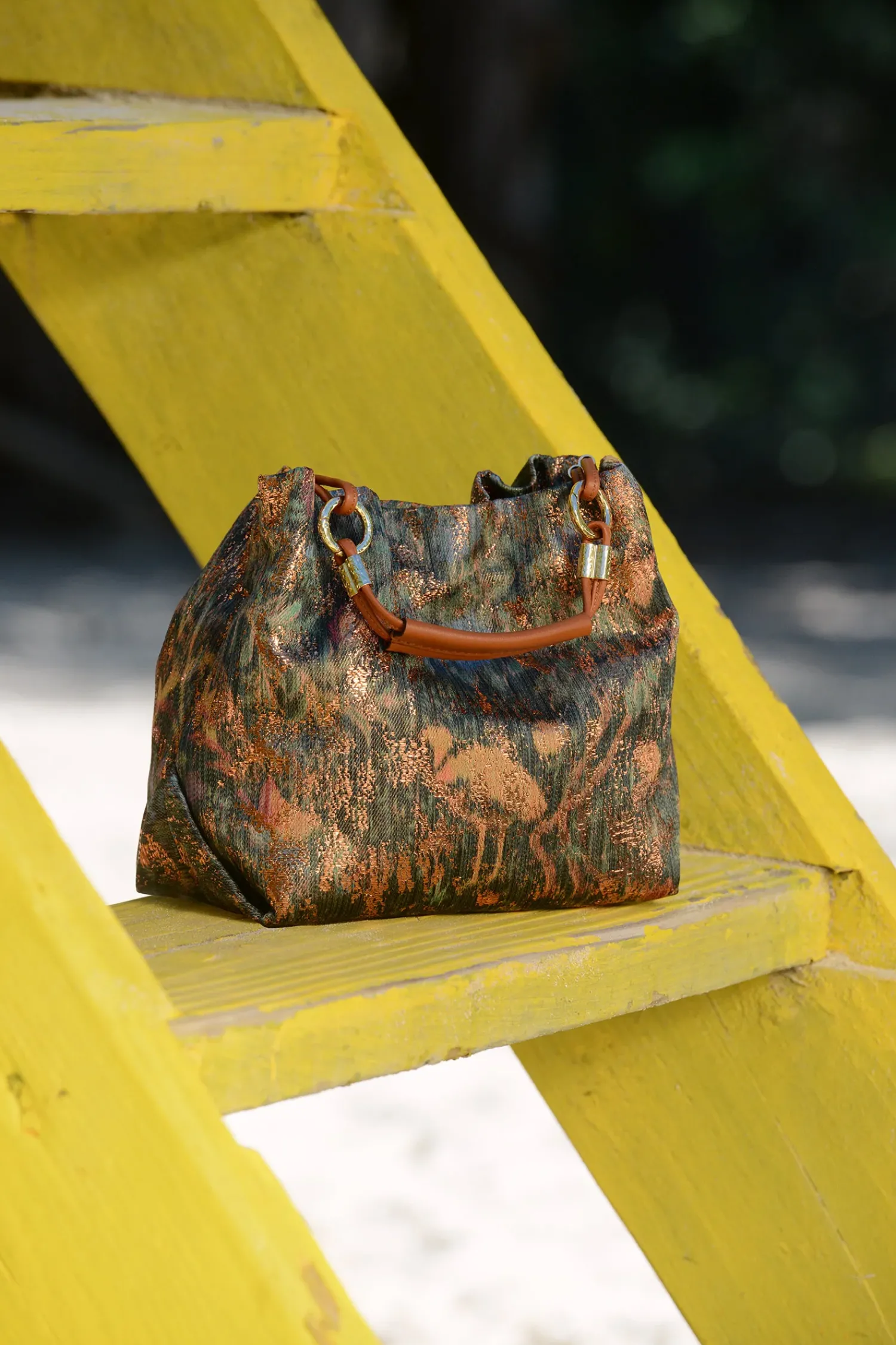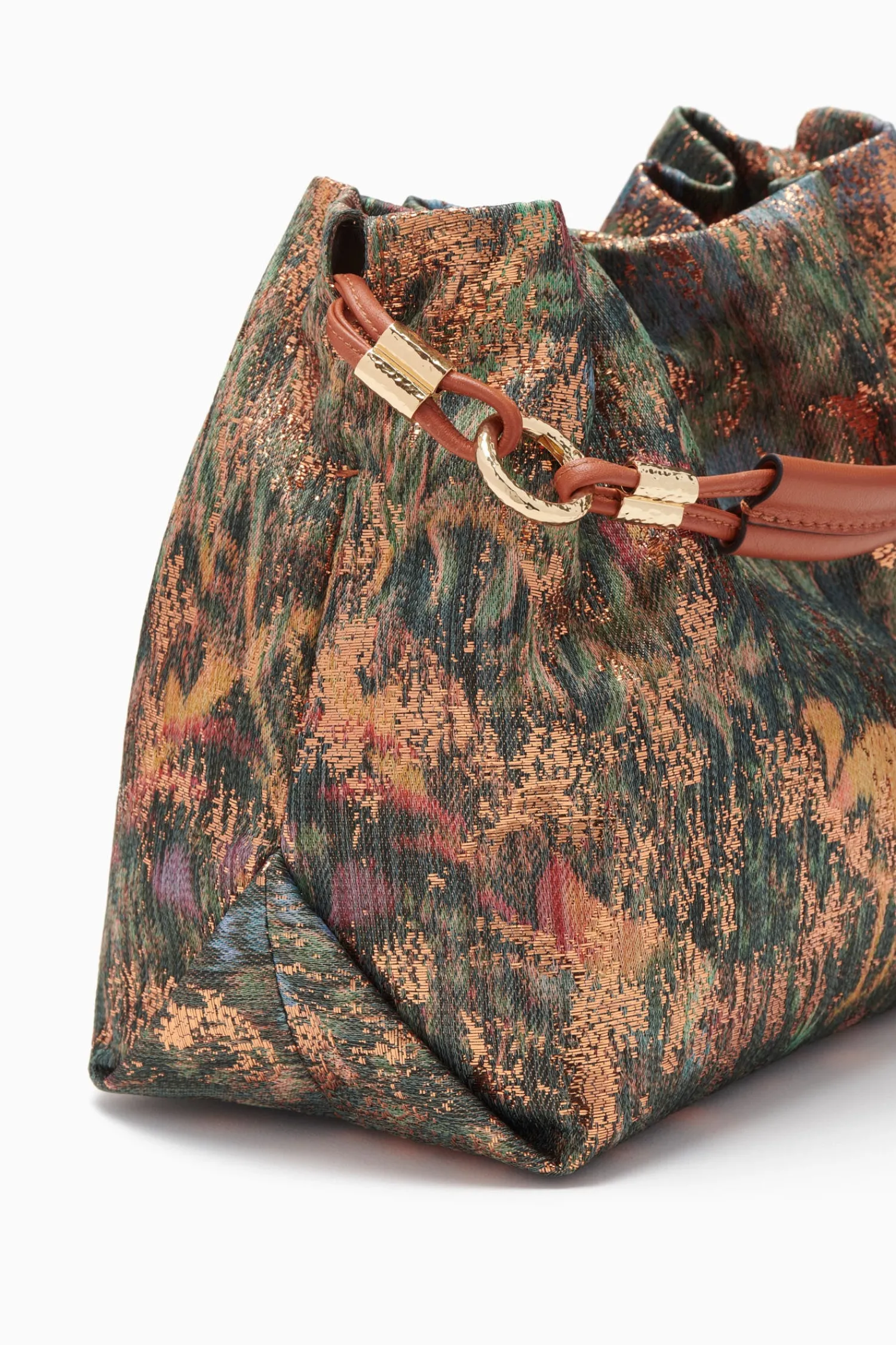 The Remy Mini Handbag Is Crafted In Italy From A Soft Lurex Jacquard, Featuring A Woodland-Inspired Pattern Enhanced With Metallic Threads. This Iconic Bag Can Be Worn As A Crossbody When Styled With The Long Strap, Or As A Hand-Held Mini With The Short Handle. This Silhouette Is Softly Gathered At The Top Opening When The Drawstring Is Pulled Tight At The Sides. It Has An Interior Magnet Closure And An Interior Zipper Pocket.