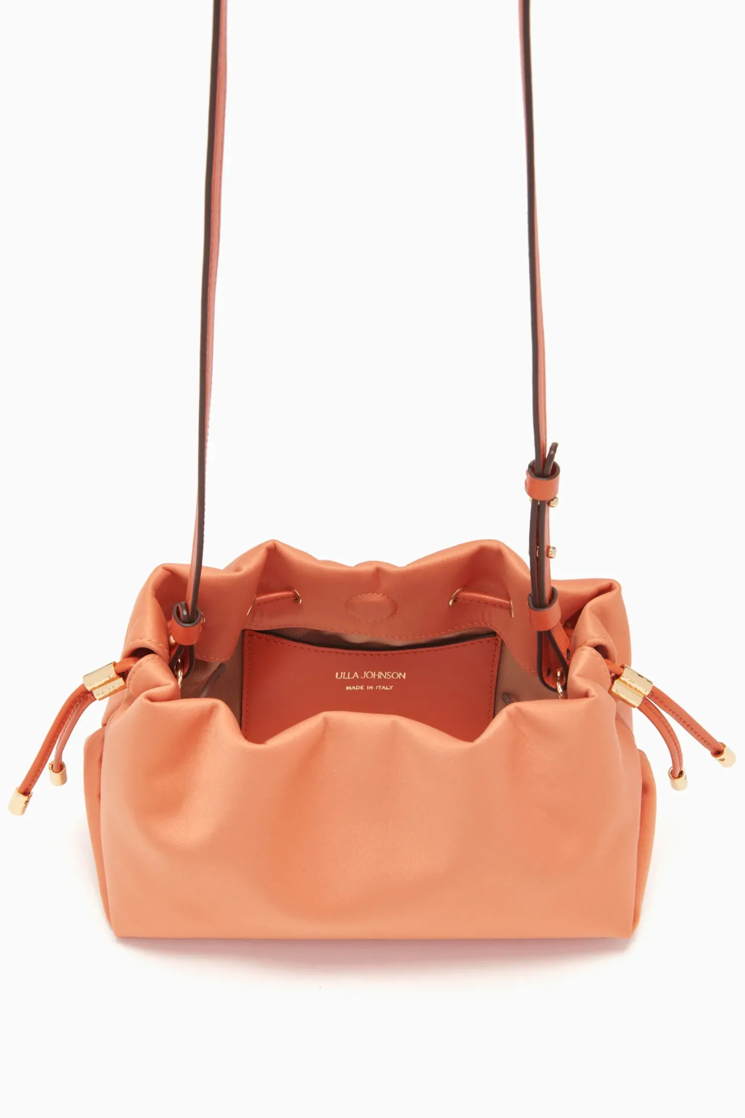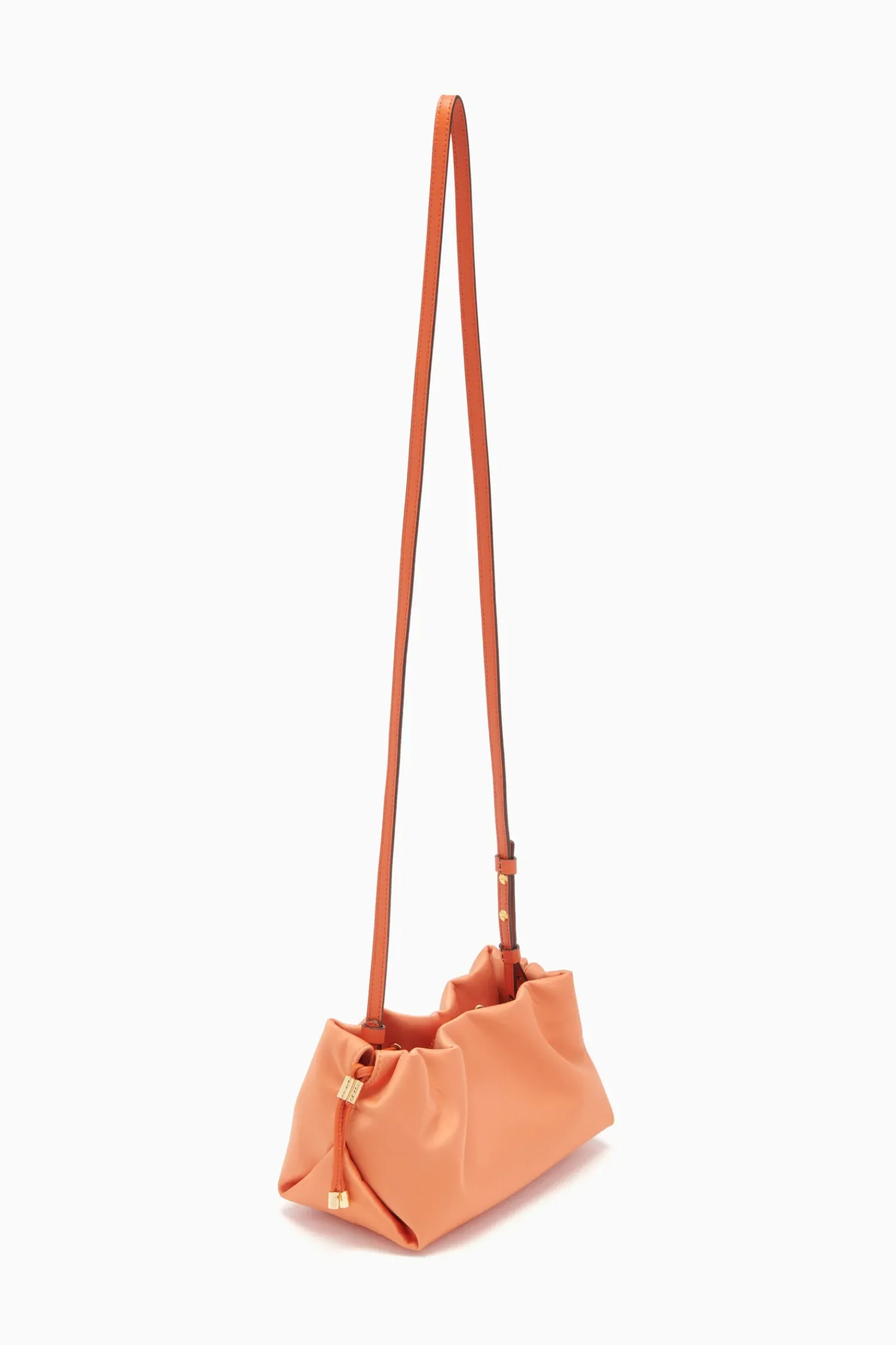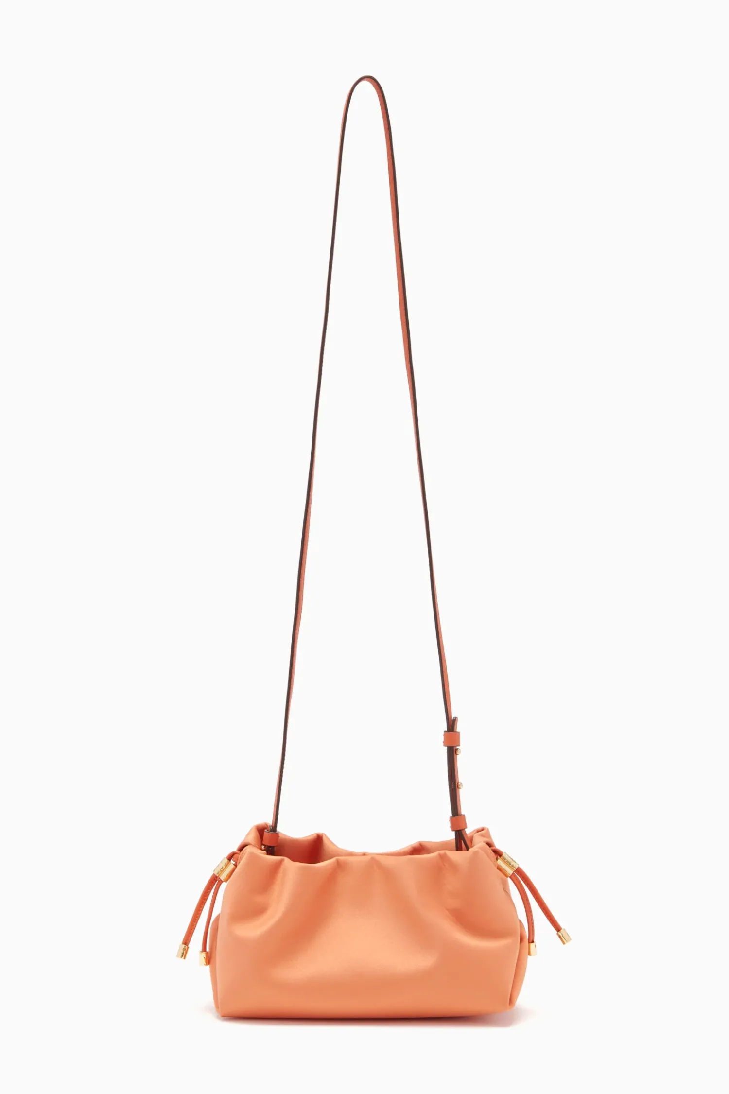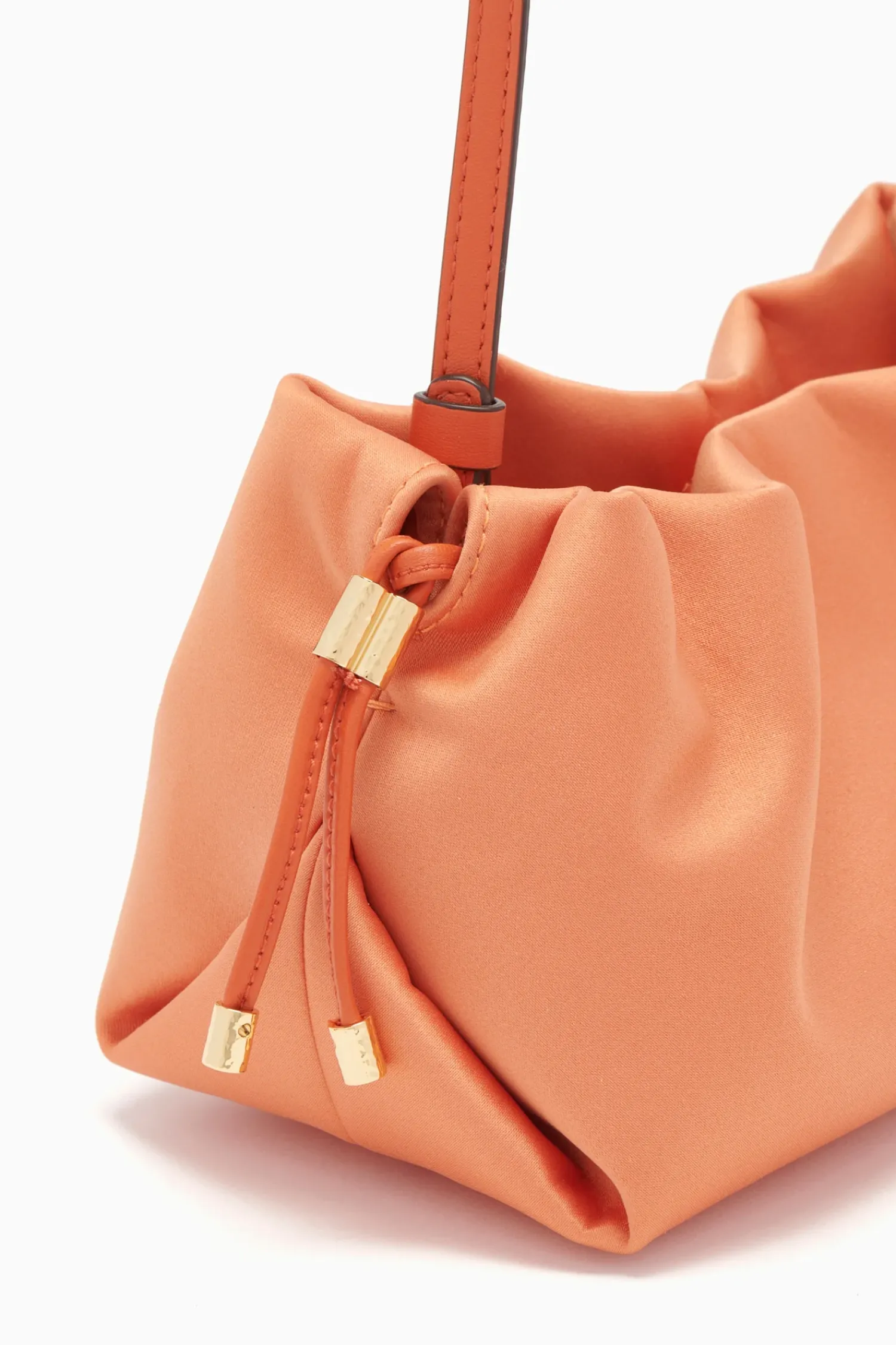 The Remy Mini Soft Clutch Is Made From Lustrous Satin In A Vibrant Orange Hue. This Bag Can Be Worn As A Crossbody When Styled With The Long Strap Or As A Hand-Held Mini. It Softly Gathers At The Top Opening When The Drawstring Is Pulled Tight At The Sides And Fastens With An Interior Magnet Closure.