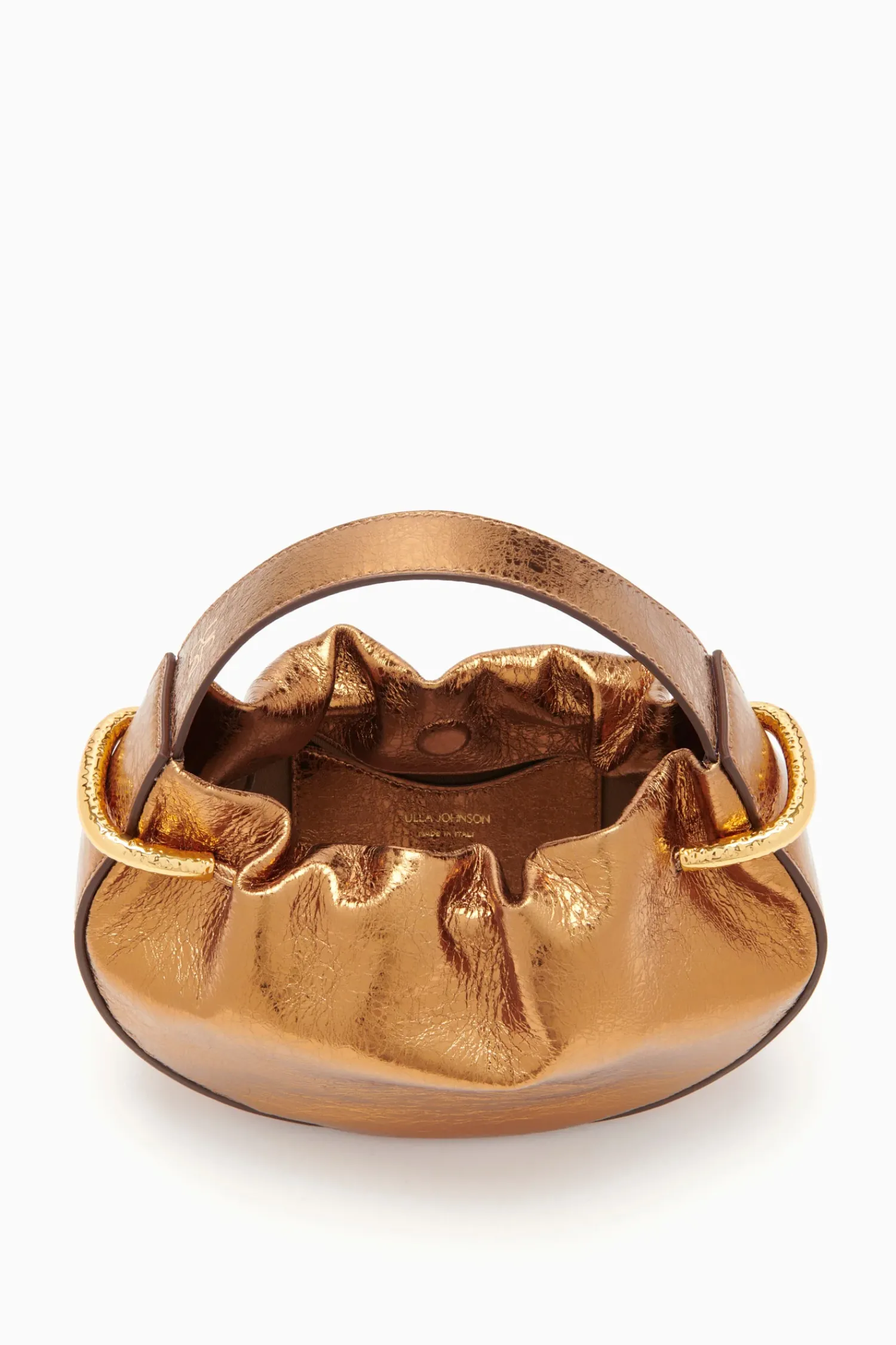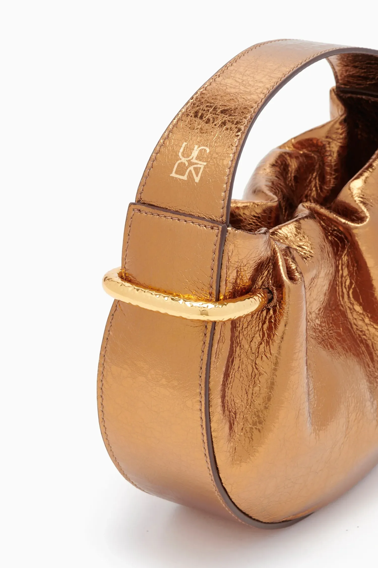 The Tilda Ruched Mini Bag Is The Newest Lovely To Join Our Lineup And Comes In A Beautifully Gathered Crescent Silhouette Made From Gorgeous Copper-Hued Metallic Leather. It Has A Snug Interior Sized To Fit Your Night-Out Essentials And Has Gleaming Hardware With A Hammered Effect.
