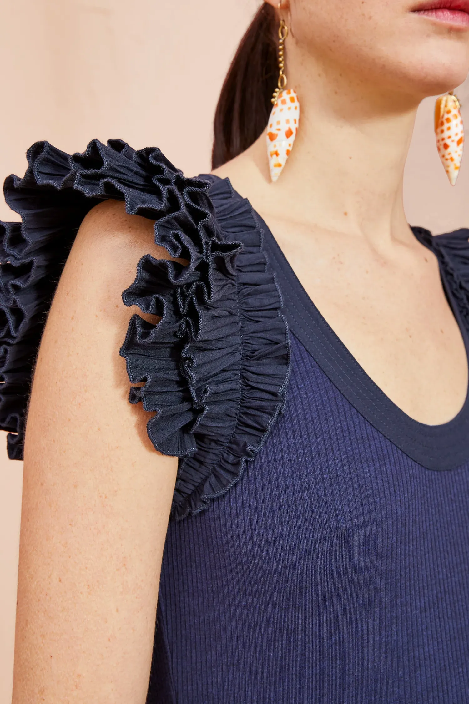 Our Virginia Dress Is Created By Mixing Two Sumptuous Fabrics Together. Its Body-Skimming Bodice Is Crafted From Our Ultra-Fine Ribbed Knit, And The Skirt Is Made From Our Signature Pleated Poplin, Designed With Three Tiers That Fall Into A Full, Floaty Skirt. This Stunning Navy Midi Dress Has Soft Poplin Flutter Sleeves That Are Layered To Create Subtle Drama At Each Shoulder, And A Round Neckline. Finished With Side-Seam Pockets.