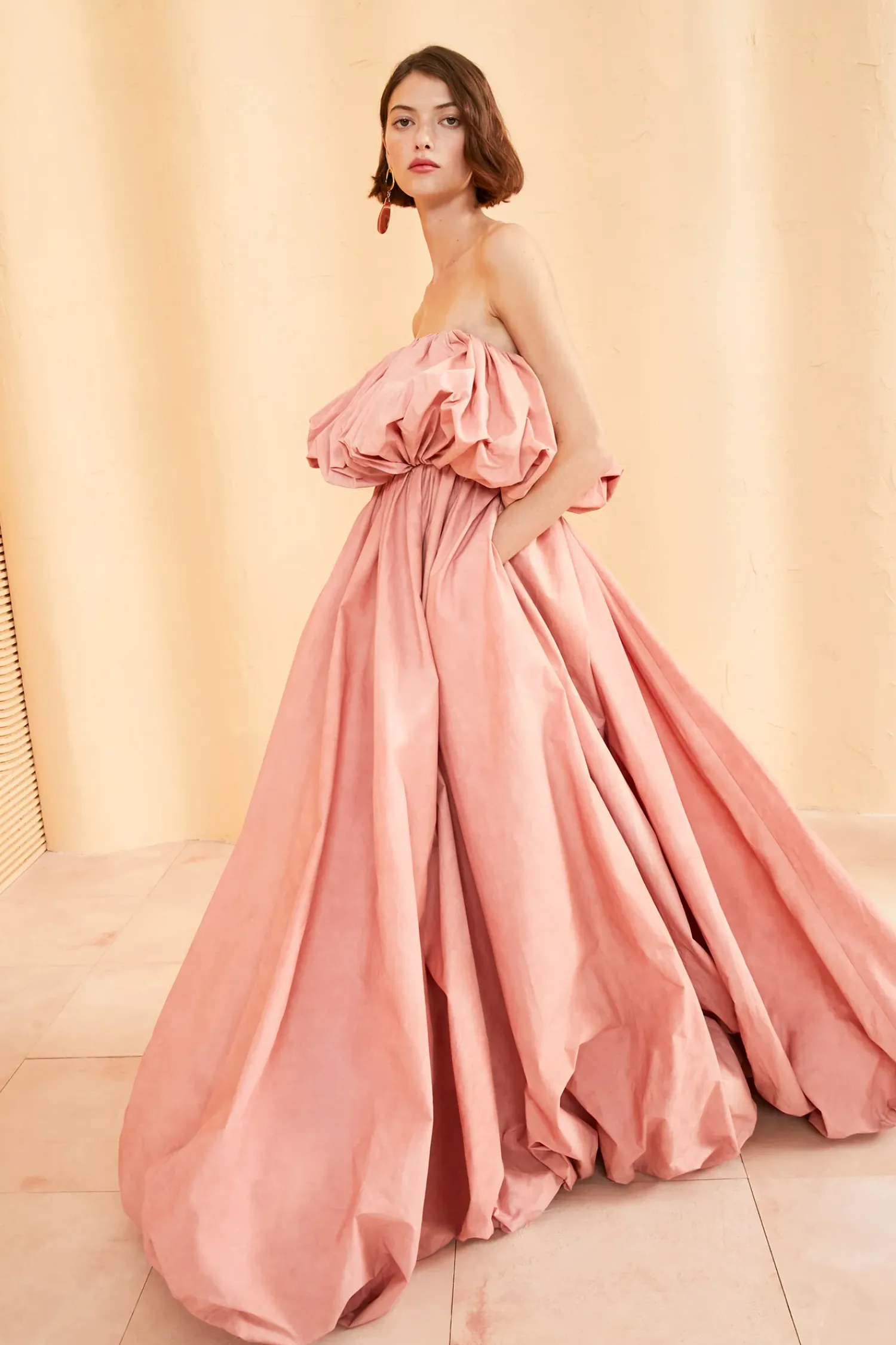 As Featured In Look 36 Of Our Spring/Summer ’23 Runway Show, The Vittoria Gown Begins Our Exciting Introduction Into Showstopping Ballgowns. Made From Italian Water-Repellent Trench Fabrication, This Gown Is Carefully Draped Into A Bubble-Hem Silhouette At Both The Bust And Hemline. The Rose-Hued Color Is Made Through An Intricate Dying Process Which Produces A Unique Watercolor Finish. This Dress Is Finished With An Interior Corset Bodice. This Piece Is An Ulla Johnson Exclusive And Is Made In New York.
