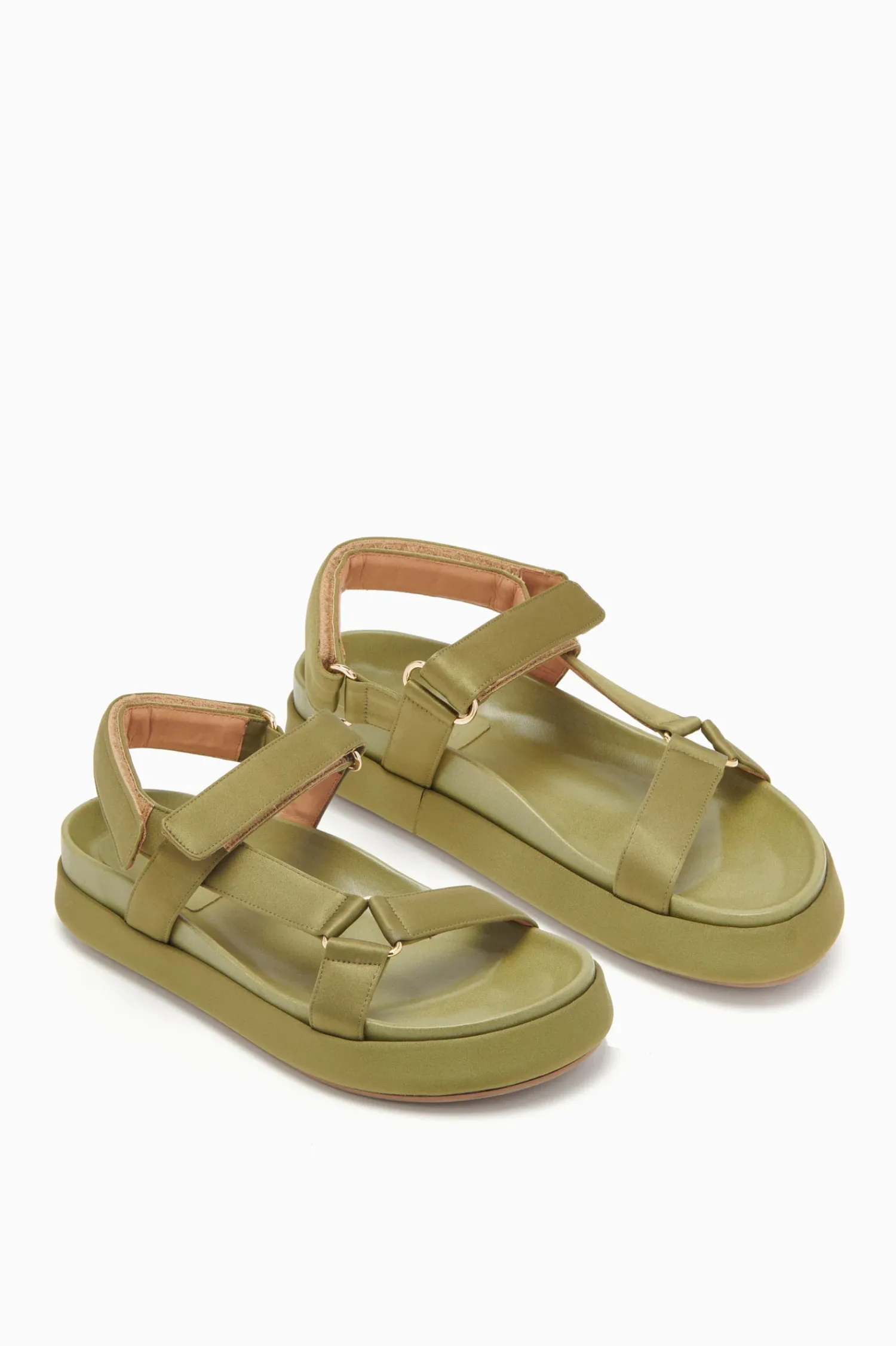 The Astra Sport Sandal Is Crafted From Lustrous Satin In A Lovely Olive Green. These Sandals Have A Sportif Silhouette A…