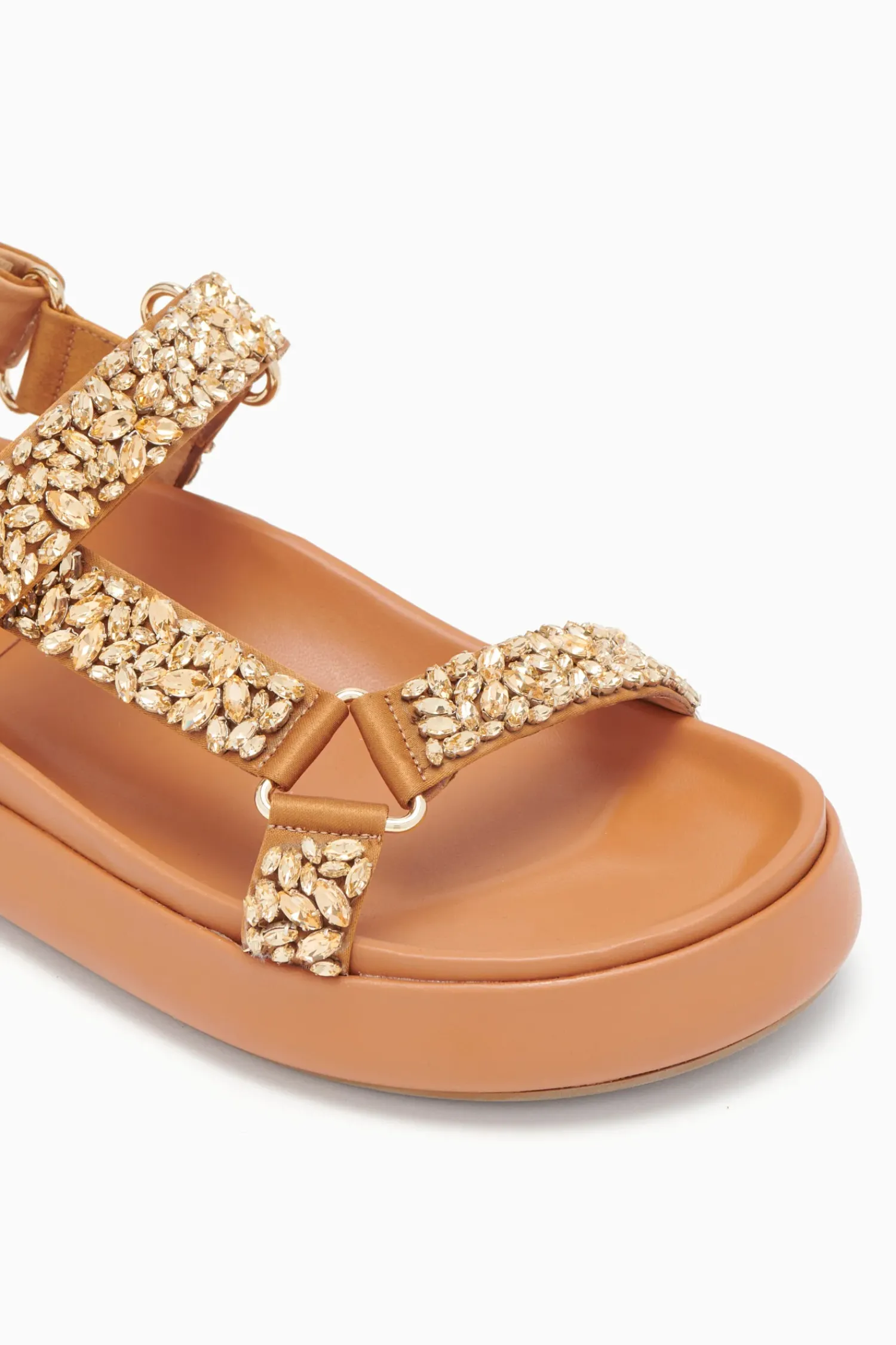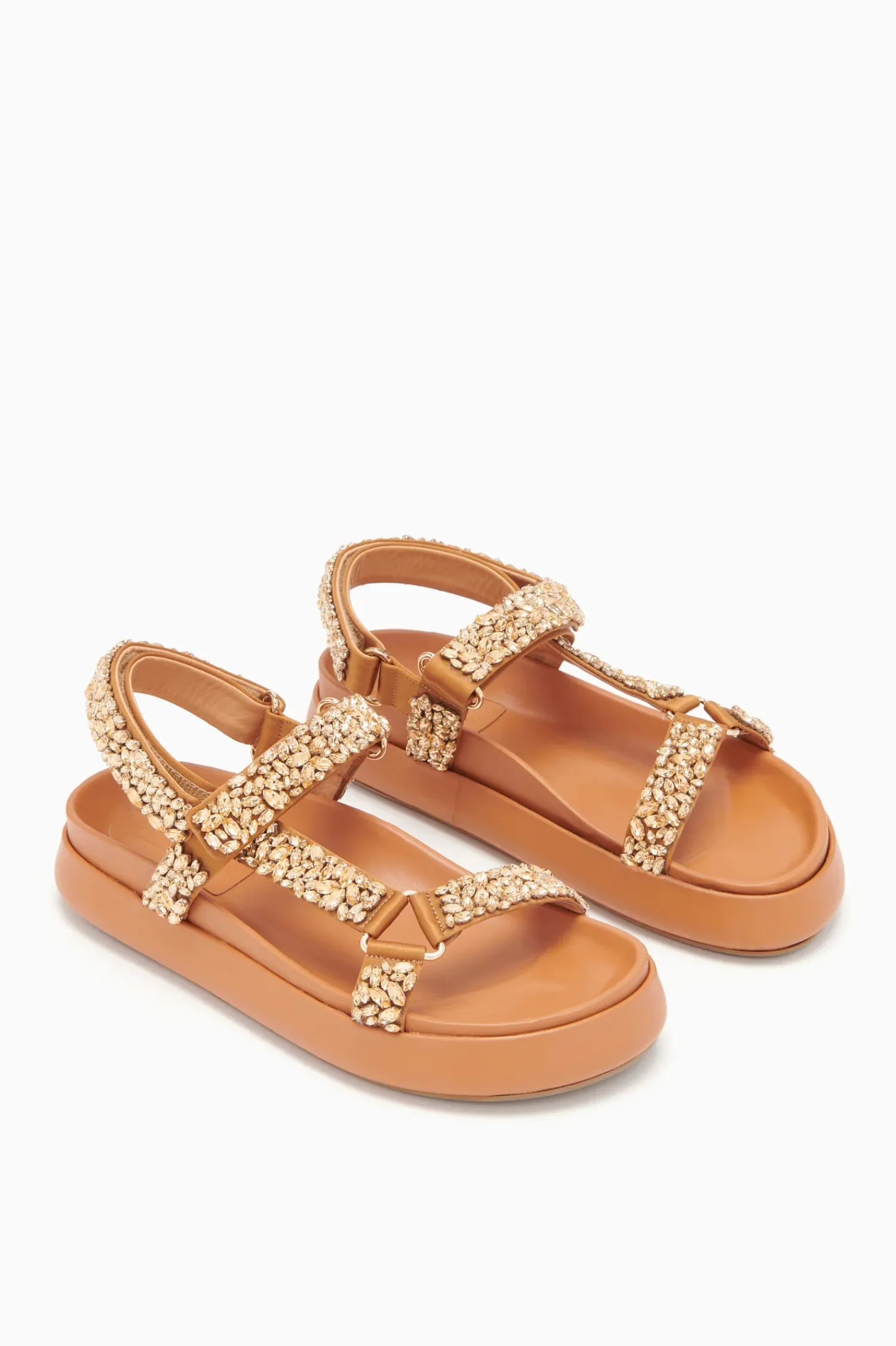 A New Silhouette For Pre-Spring ’24, The Astra Sport Sandal Is Crafted From Bronze-Hued Satin That’S Covered With Scores Of Glittering Crystals. These Sandals Have A Sportif Silhouette And Rest On A Comfortable Molded Footbed.