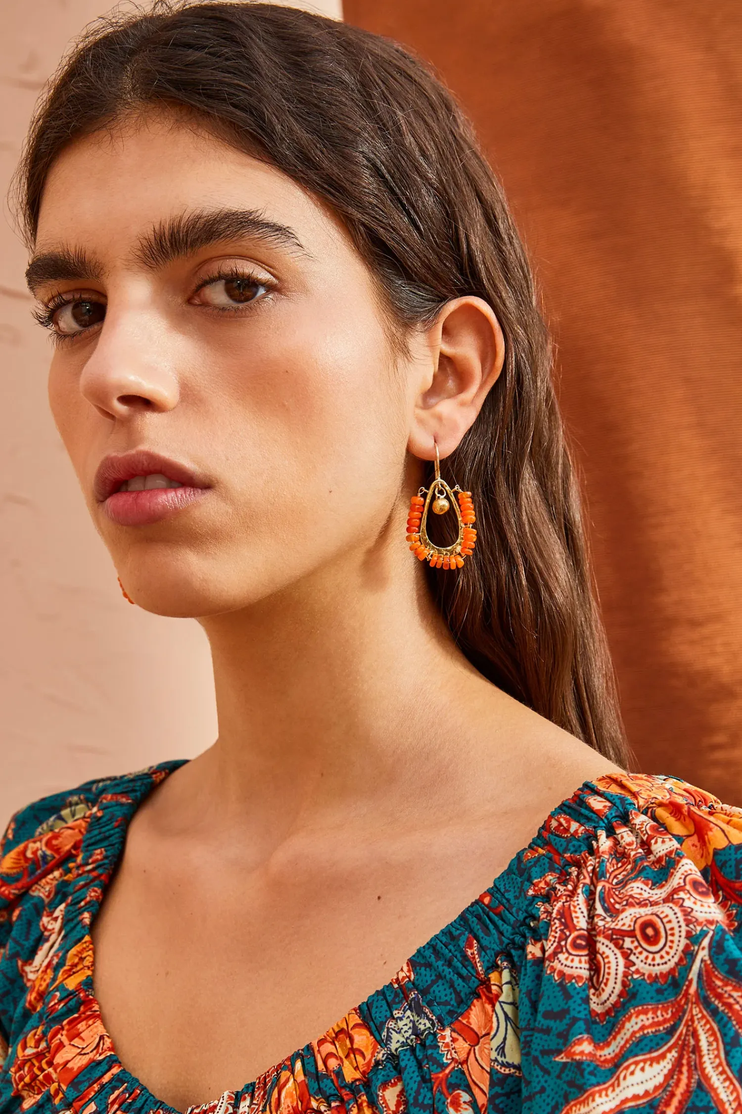 The Beaded Single Drop Earring Is Handcrafted By Our Longtime Artisan Partners In Kenya. These Stunning Earrings Are Made From Recycled Brass And Adorned With Orange Opals. Finished With Hypoallergenic Posts. Size & Fit