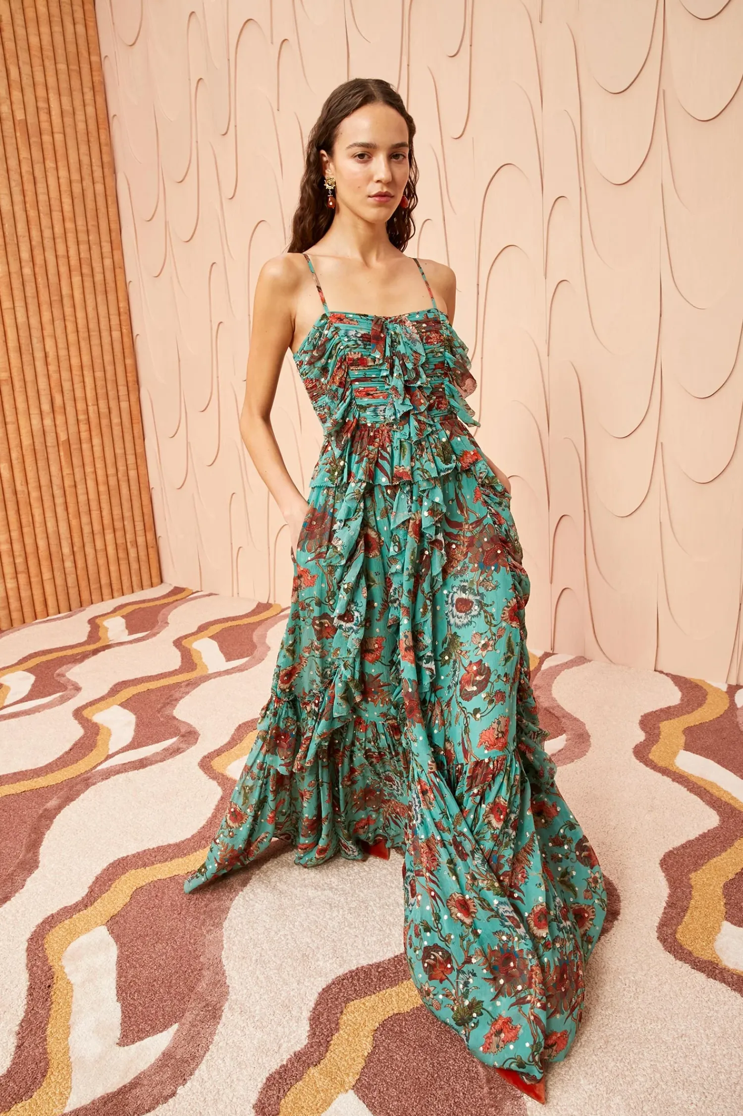 As Featured In Look 7 Of Our Pre-Spring ’24 Lookbook, The Colette Gown Is An Event-Ready Style In Green Crinkle Chiffon That’S Patterned With Beguiling Florals Inspired By 19Th Century French Botanicals. Scores Of Cascading Ruffles Create Mesmeric Movement, While Flecks Of Lurex Add A Shimmering Touch. This Sleeveless Gown Fastens With A Concealed Side-Seam Zipper.