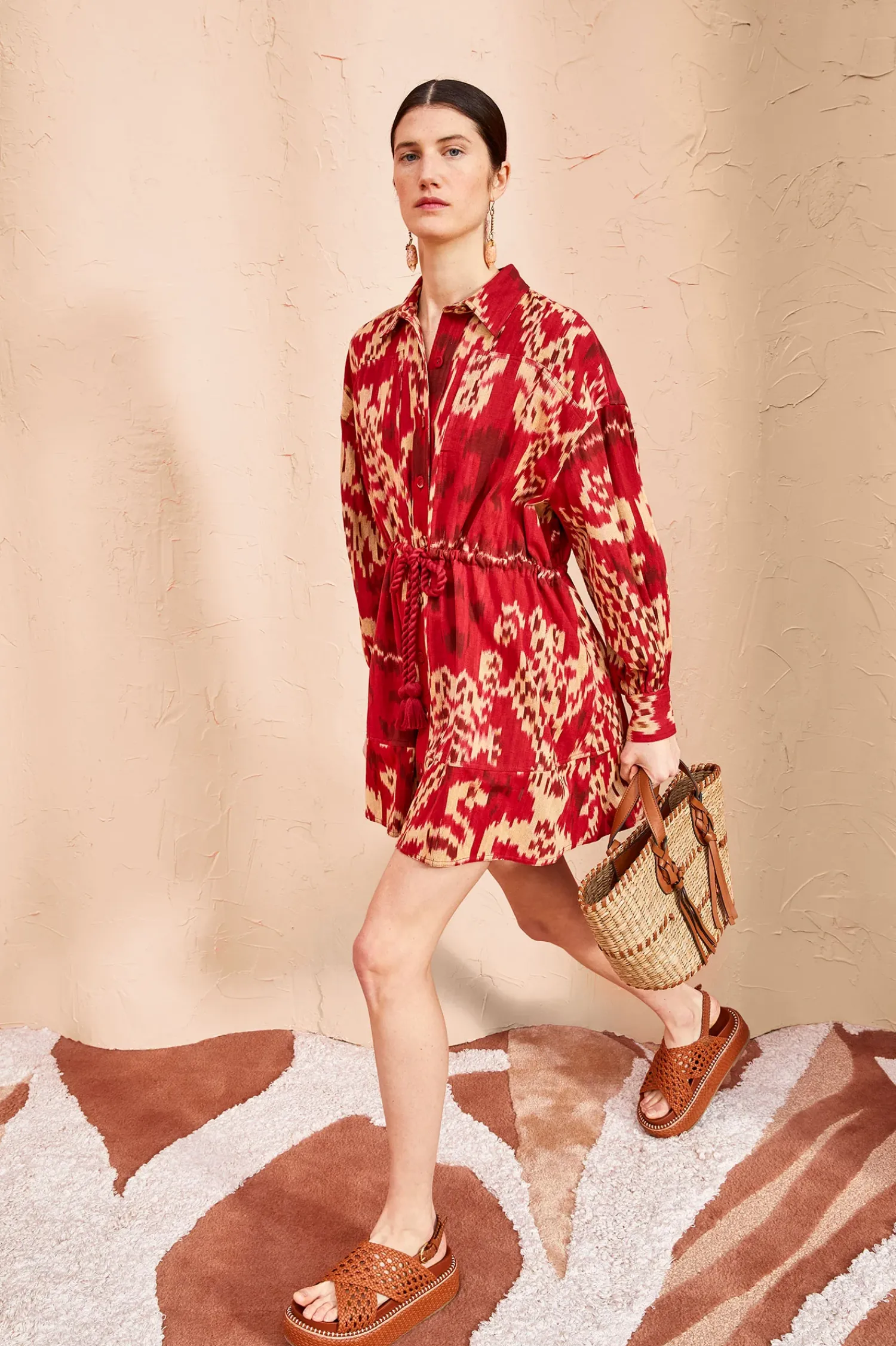 The Dari Dress Is An Oversized Shirtdress Crafted From Our Signature Cotton Handloom Suiting. This Vibrant Red And Tan Mini Dress Features A Classic Shirt Collar, Buttons Along The Front And A Rope Tie That Cinches The Waist. This Piece Was Handcrafted By Our Longtime Artisan Partners In India.