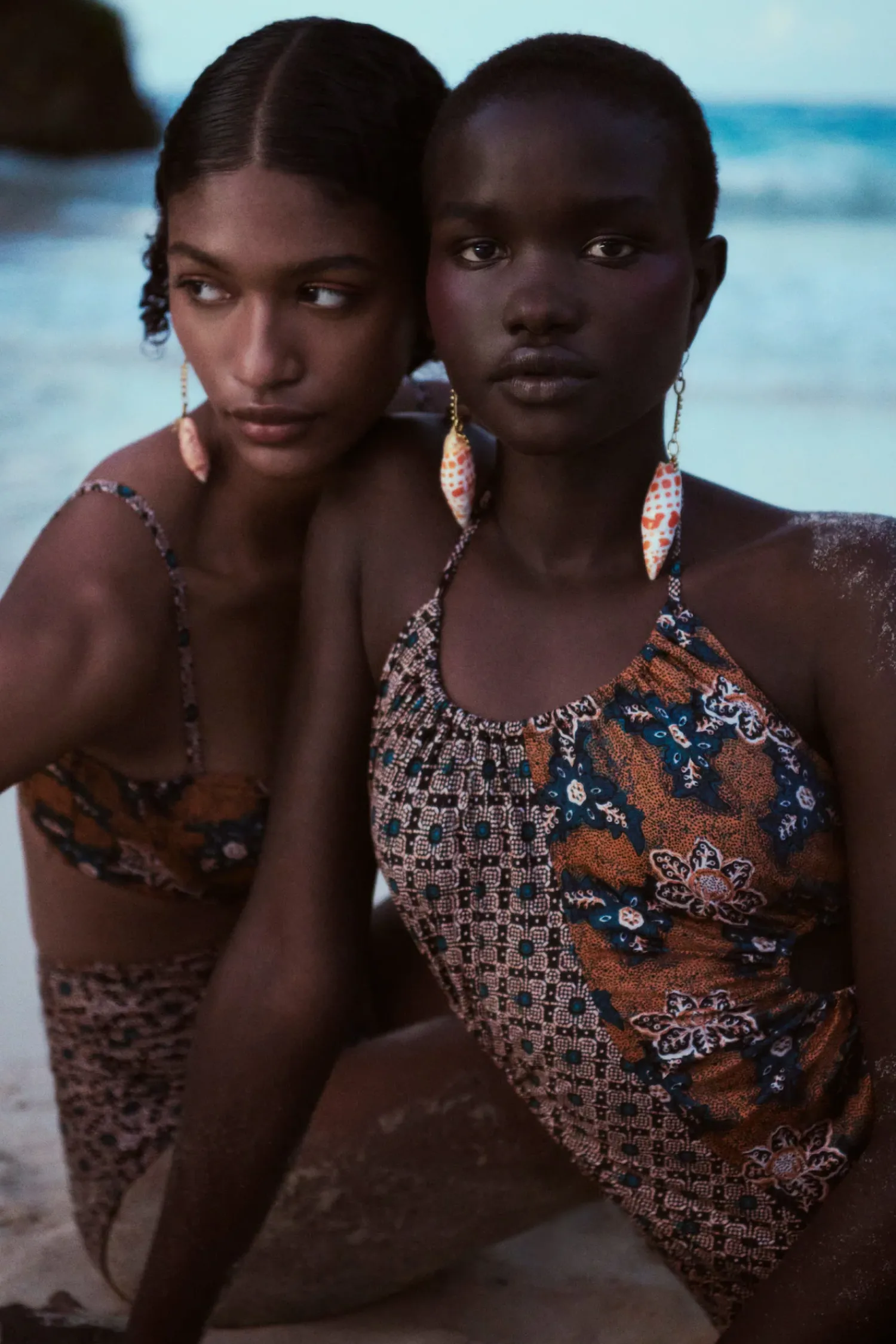 As Featured In Look 37 Of Our Pre-Fall Lookbook, The Mabel Maillot Is Designed In A Two-Tone Tropical Pattern Of Geometric Florals In Shades Of Blue And Orange. This One-Piece Swimsuit Has A Ruched Scoop Neck That Ties In The Back, A Cutout Detail On Each Side, And Offers Moderate Coverage Throughout.