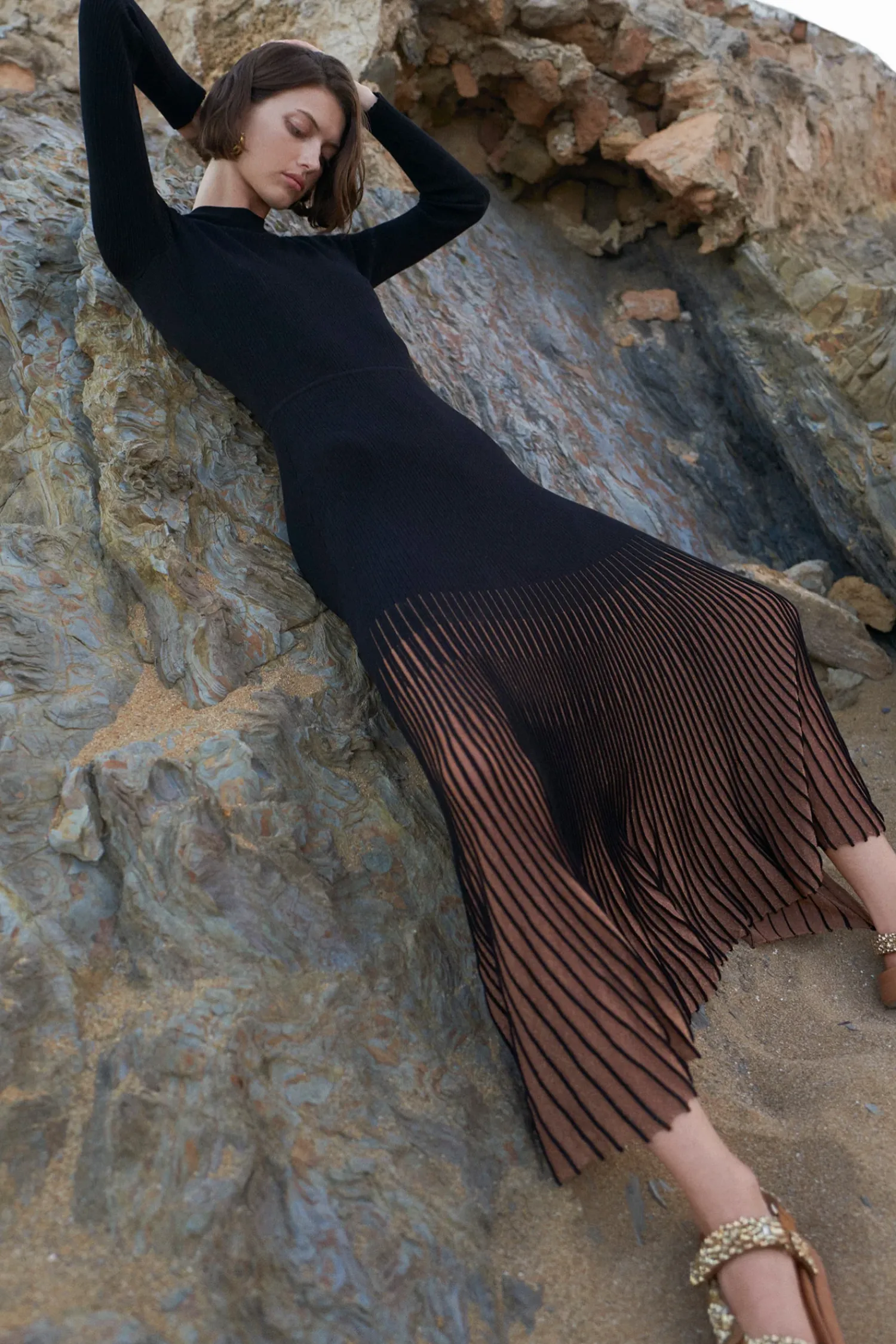 Defined By Languid And Elegant Volumes, The Magnolia Dress Is Crafted From Our Ultrafine Sunburst Knit In Timeless Black Svart. This Long-Sleeve Dress Has A Round Neckline And Unfurls To A Midi-Length Hem That Explodes With Shimmering Bronze Hues.