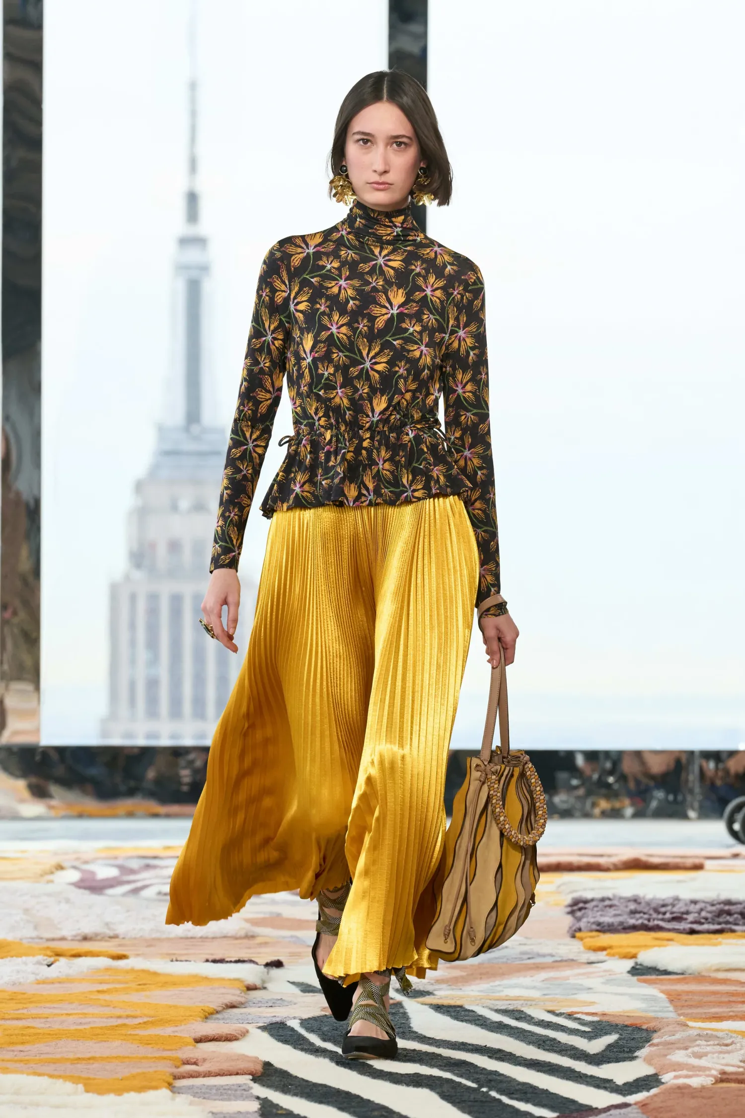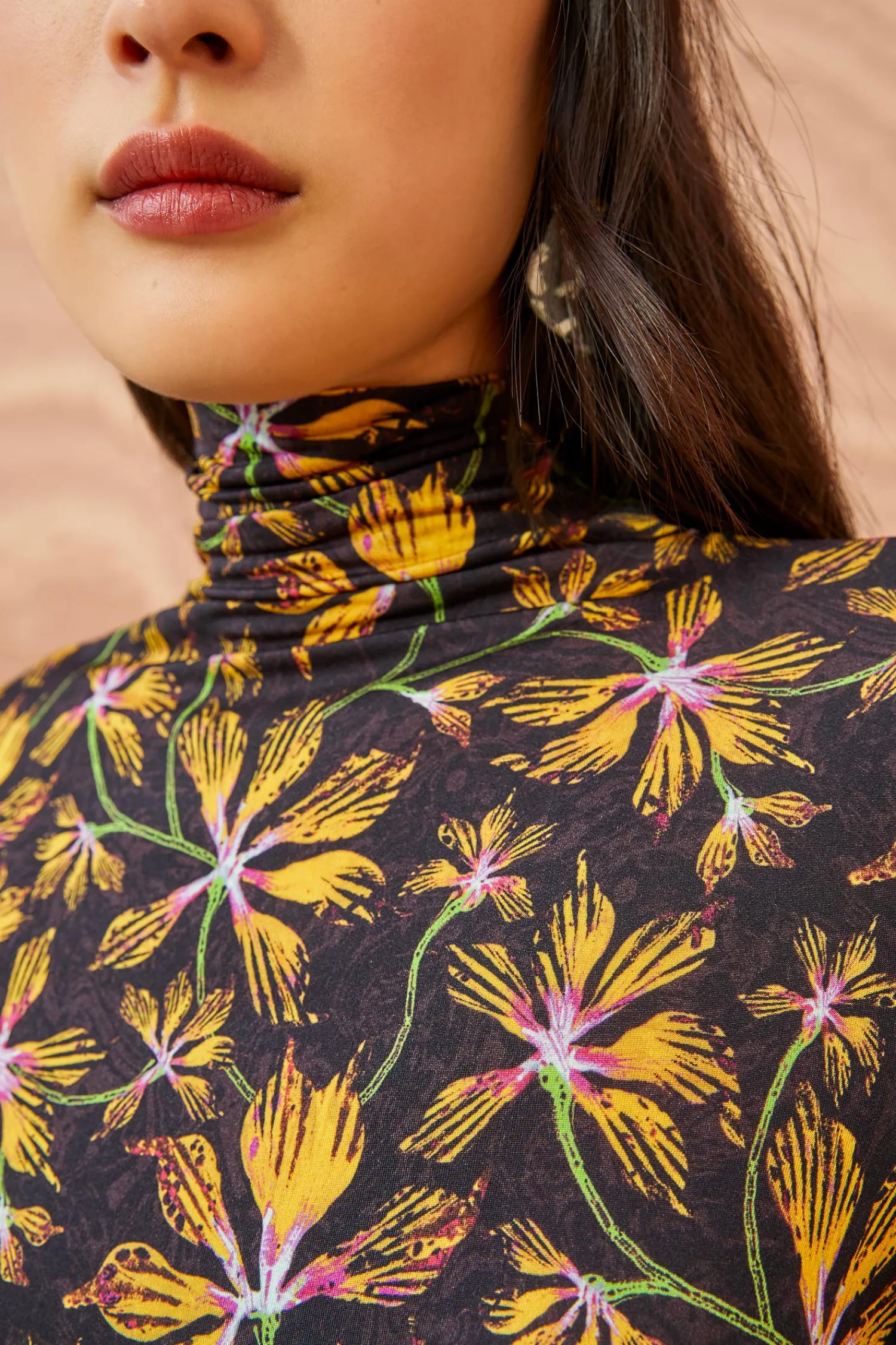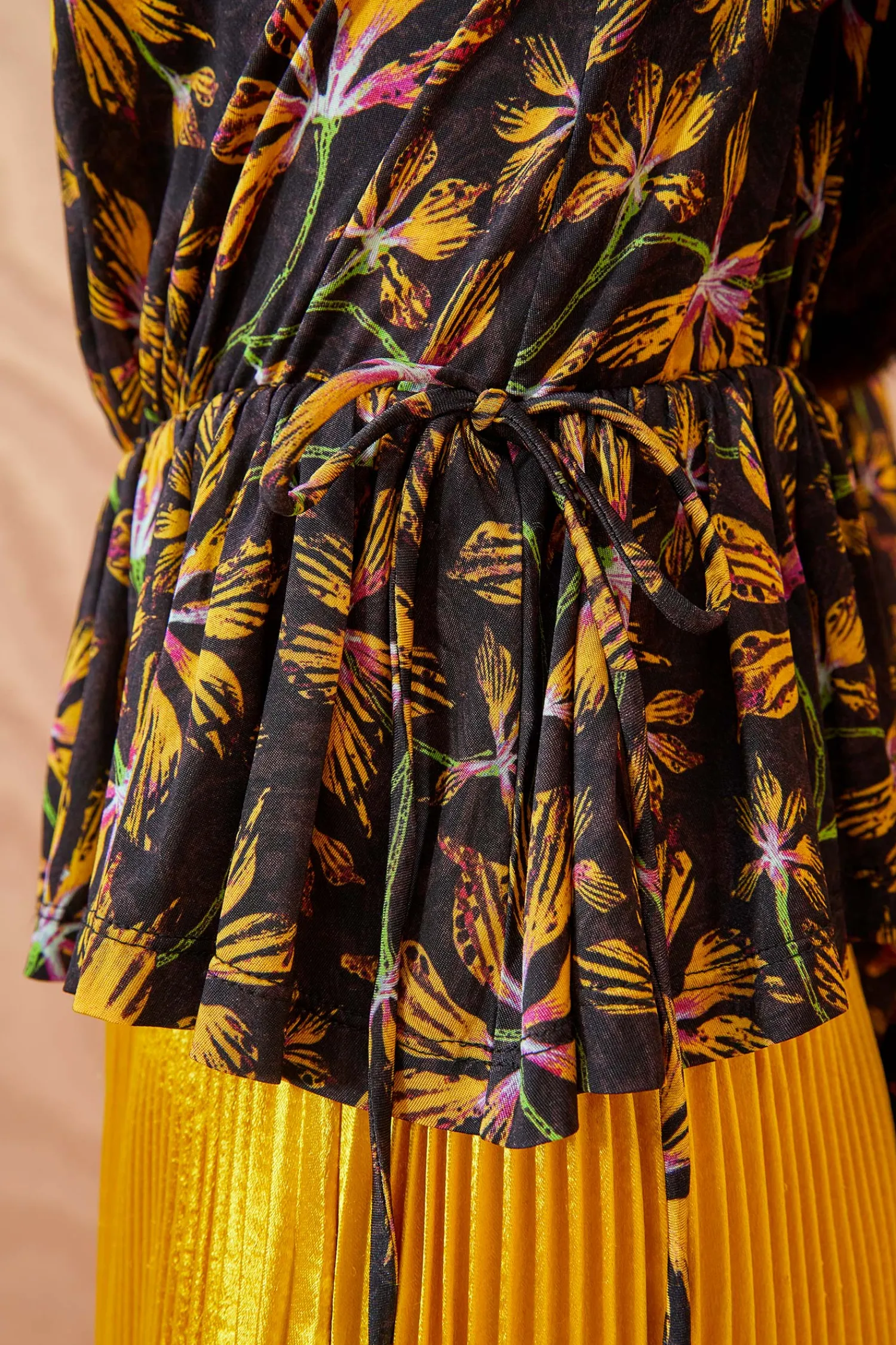 As Featured In Look 30 Of Our Autumn/Winter ’23 Runway Show, The Nina Top Is Made From Our Silken Draped Tricot Jersey And Printed In This Season’S Favorite Graphic Florals With Pops Of Yellow And Pink. This Lightweight Long-Sleeve Top Features A Ruched Waistband With Drawstring Ties And A Peplum Hem.