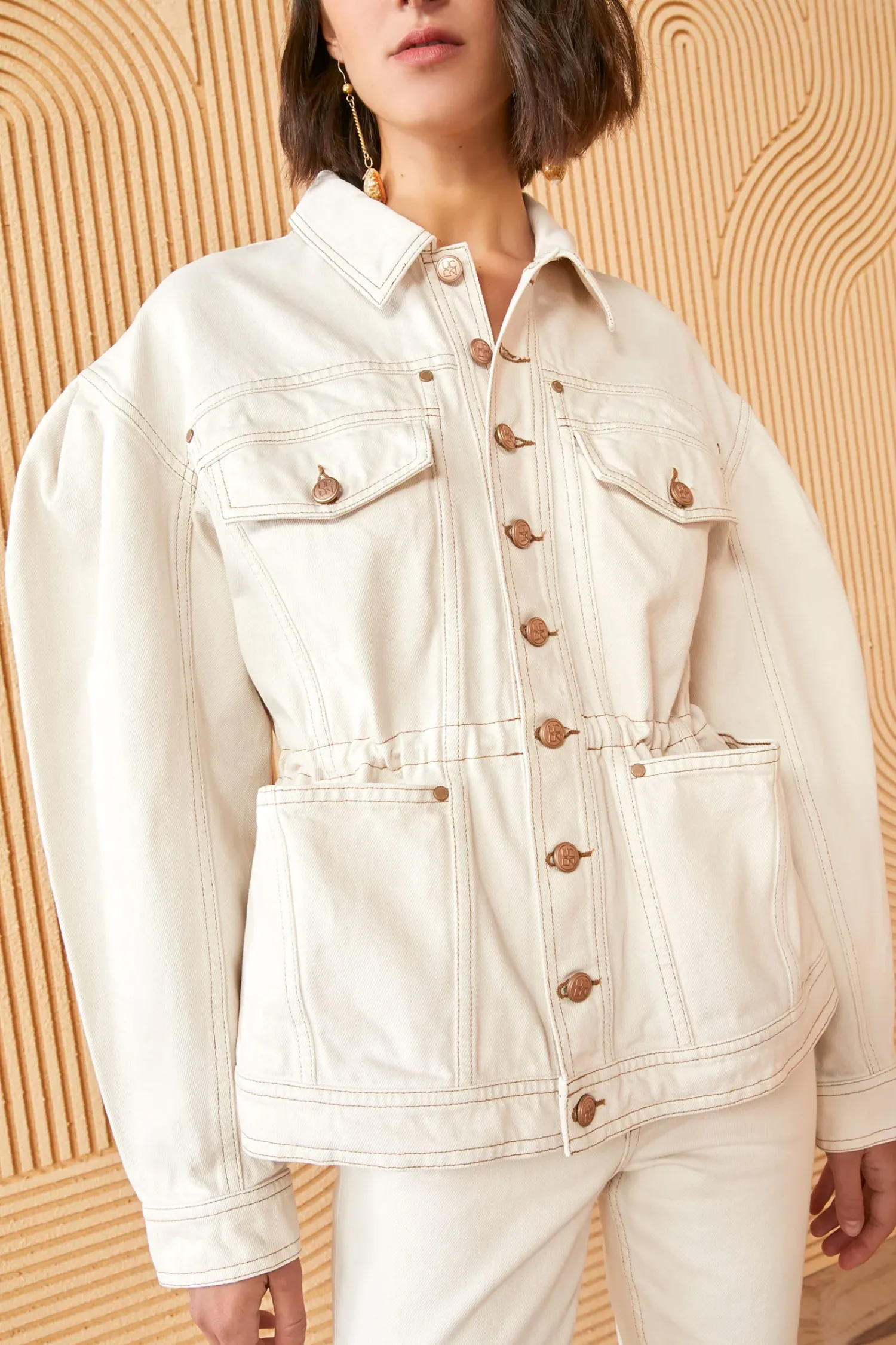 As Featured In Look 20 Of Our Pre-Spring Lookbook, The Odette Jacket Is Made From Our Signature Rigid, Non-Stretch Denim And Has Been Hand-Crafted In Los Angeles. This Jacket Features Dropped Shoulders, Nipped Waist (Complete With Inside Drawstring), And Antique Brass Detailing With The Signature Ulla Johnson Logo Across Each Button.