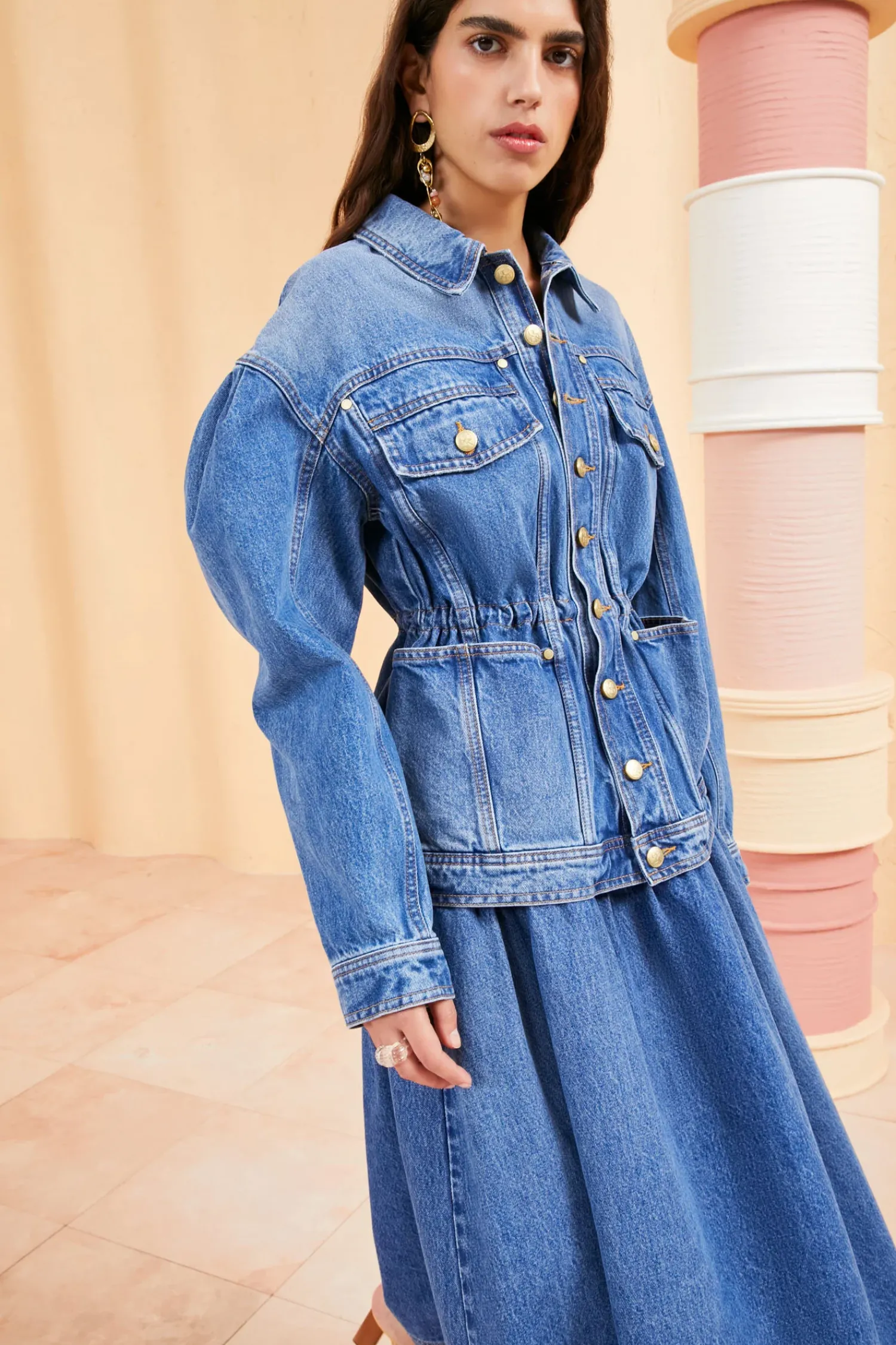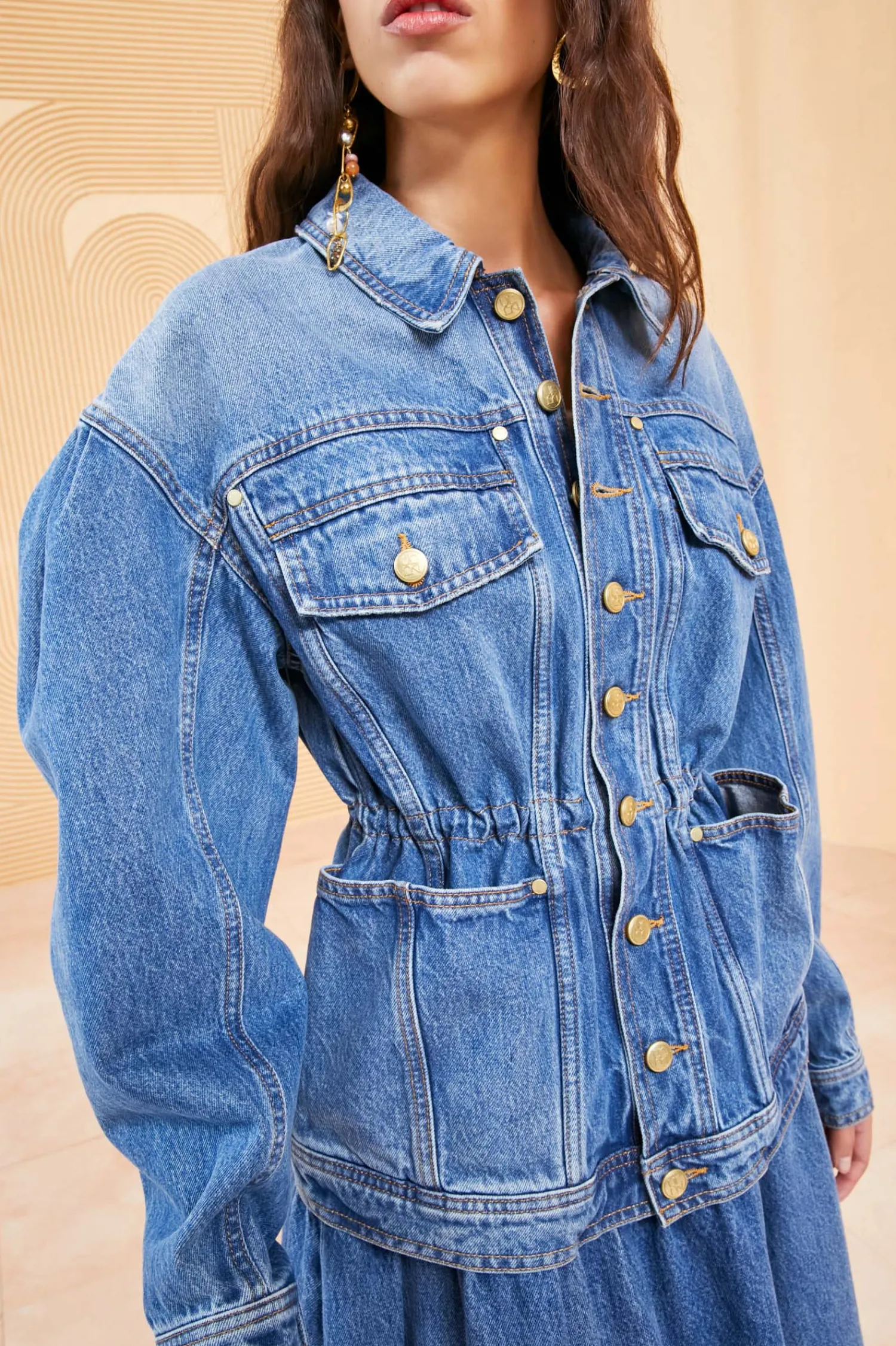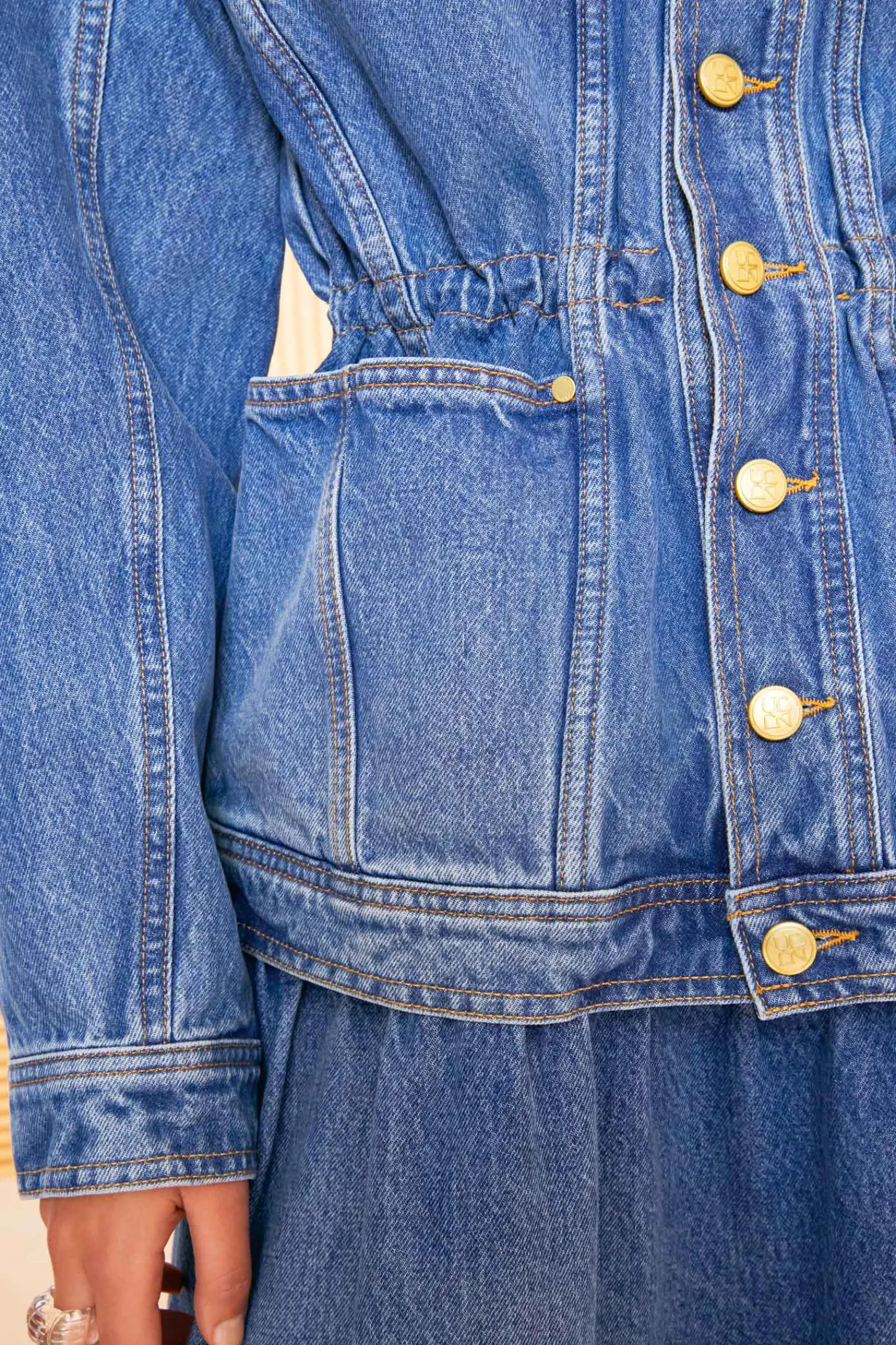 As Featured In Look 19 Of Our Spring/Summer ’23 Runway Show, The Odette Jacket Is Made From Our Signature Rigid, Non-Stretch Denim That Has Been Imported From Europe And Handcrafted In The Usa. This Medium Indigo Wash Jacket Features Dropped Shoulders, A Nipped Drawstring Waist, Internal Adjustable Drawstring Detail And Antique Brass Buttons. Length: 26 3/8 Inches