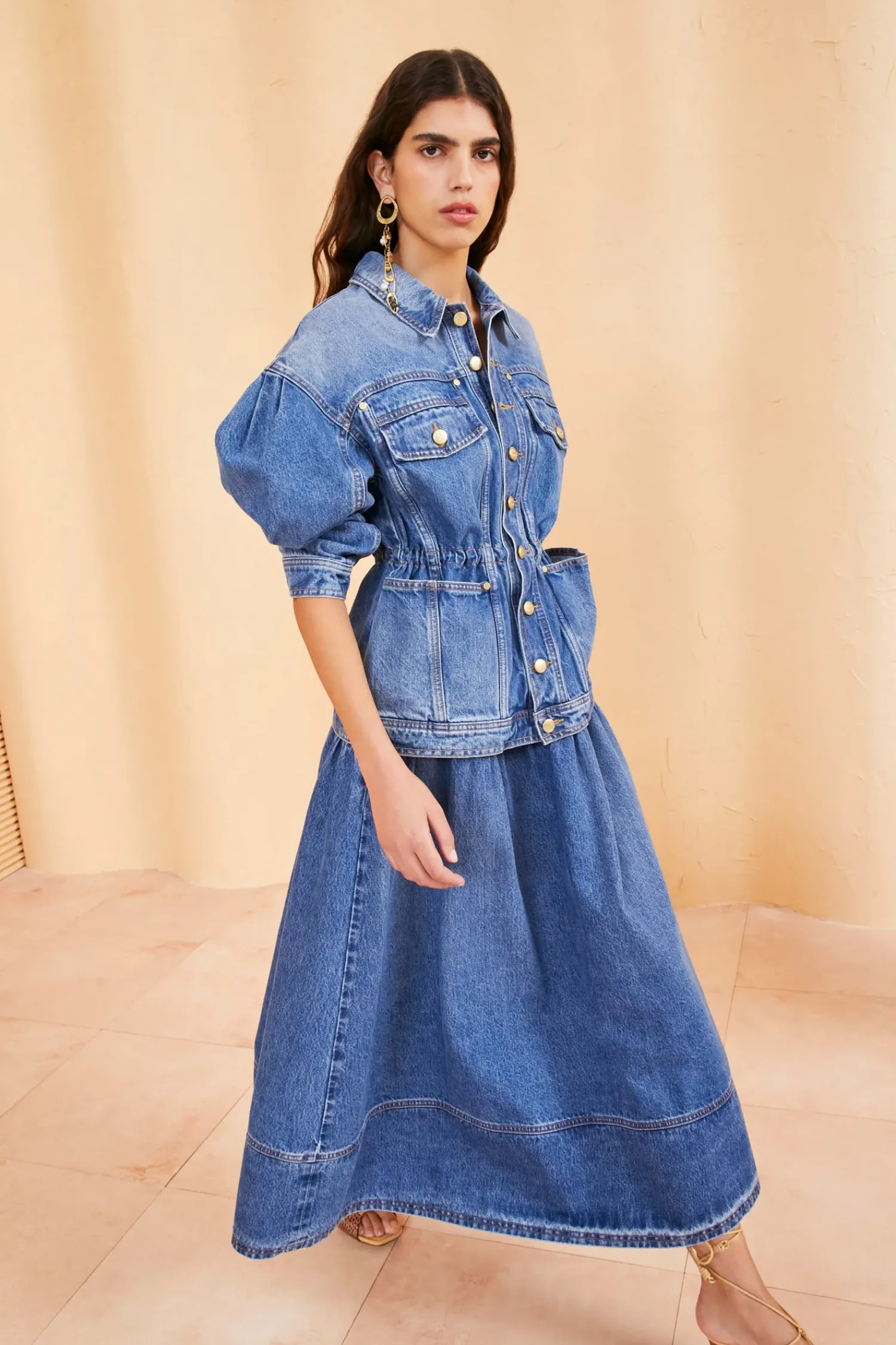 As Featured In Look 19 Of Our Spring/Summer ’23 Runway Show, The Odette Jacket Is Made From Our Signature Rigid, Non-Stretch Denim That Has Been Imported From Europe And Handcrafted In The Usa. This Medium Indigo Wash Jacket Features Dropped Shoulders, A Nipped Drawstring Waist, Internal Adjustable Drawstring Detail And Antique Brass Buttons. Length: 26 3/8 Inches