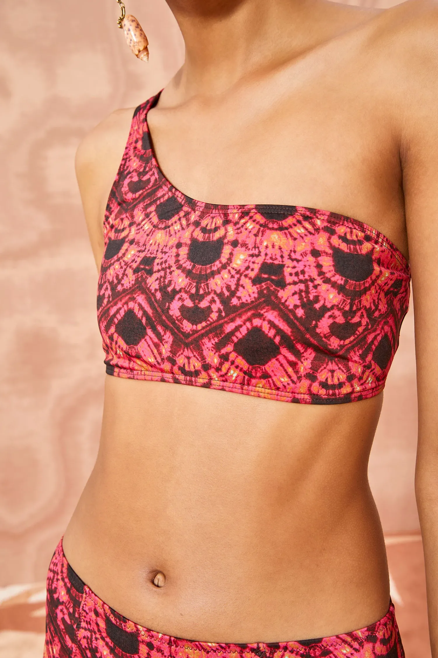 The Reina Bikini Top Is An Elegant One-Shouldered Swim Style Crafted In Our Dark Pink Kaleidoscopic Print. This Comfortable Top Is A Seamless Style And Pairs Perfectly With Our Pluto Bikini Bottom In Wild Rose.