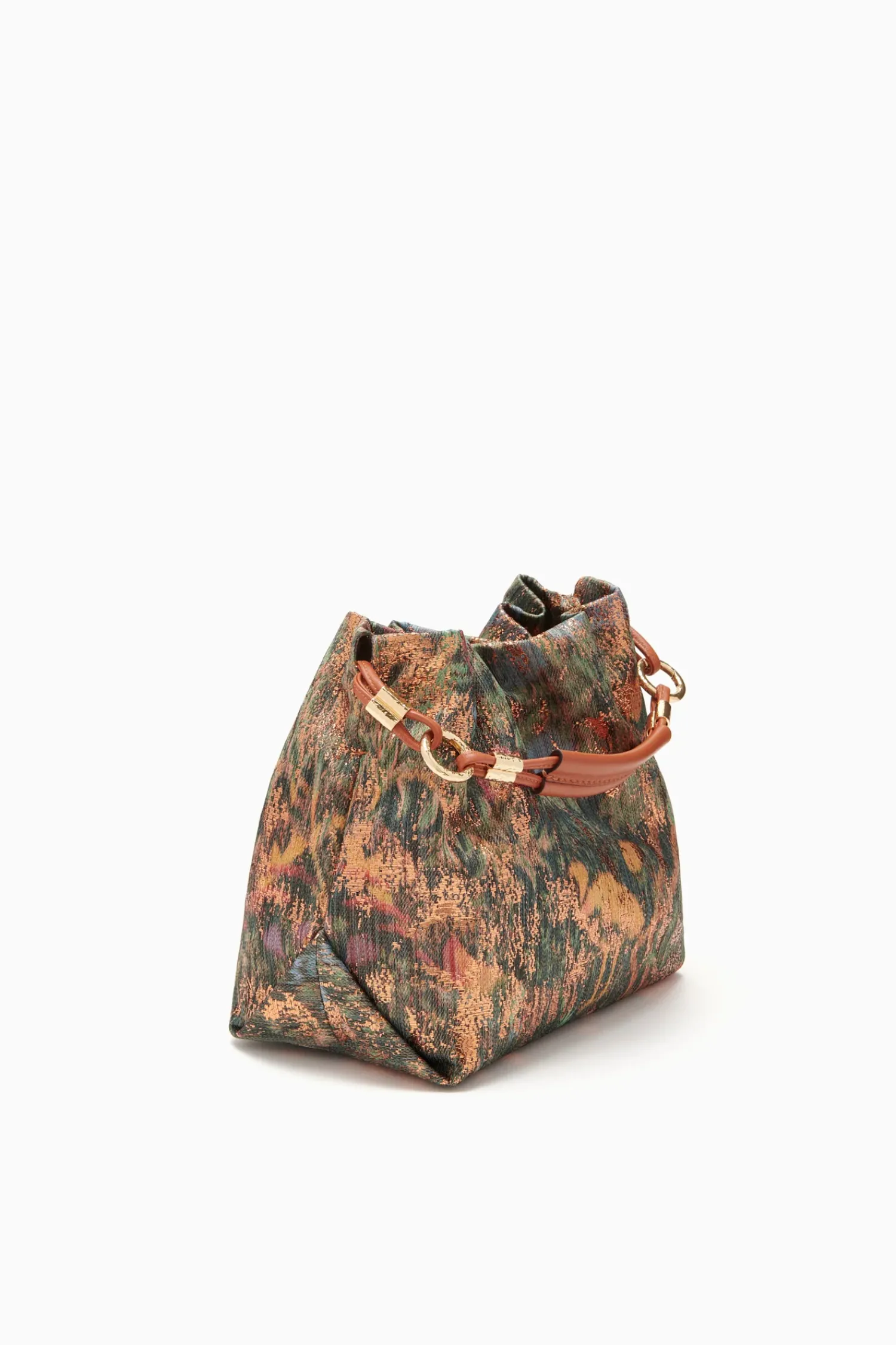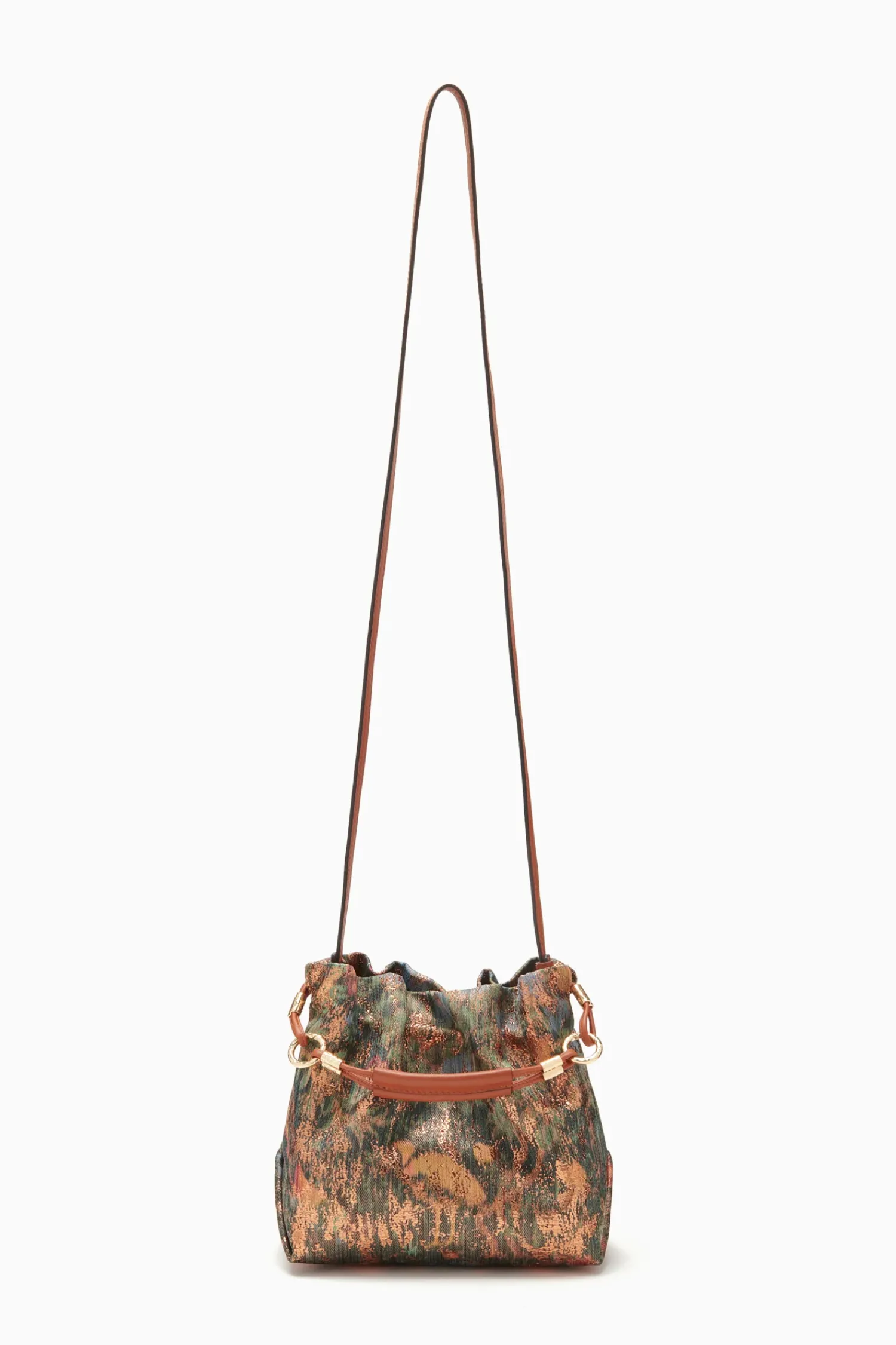 The Remy Mini Handbag Is Crafted In Italy From A Soft Lurex Jacquard, Featuring A Woodland-Inspired Pattern Enhanced With Metallic Threads. This Iconic Bag Can Be Worn As A Crossbody When Styled With The Long Strap, Or As A Hand-Held Mini With The Short Handle. This Silhouette Is Softly Gathered At The Top Opening When The Drawstring Is Pulled Tight At The Sides. It Has An Interior Magnet Closure And An Interior Zipper Pocket.