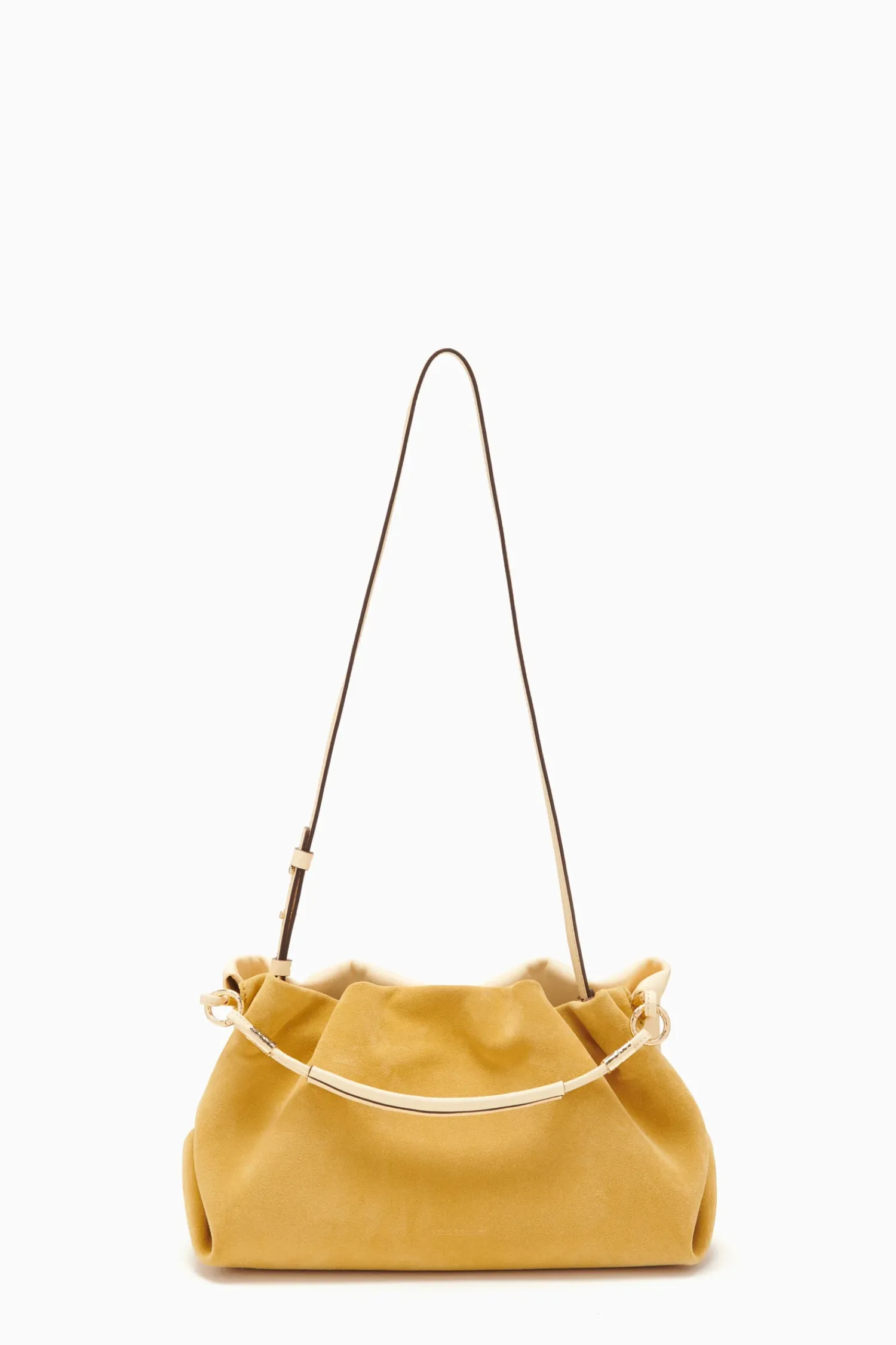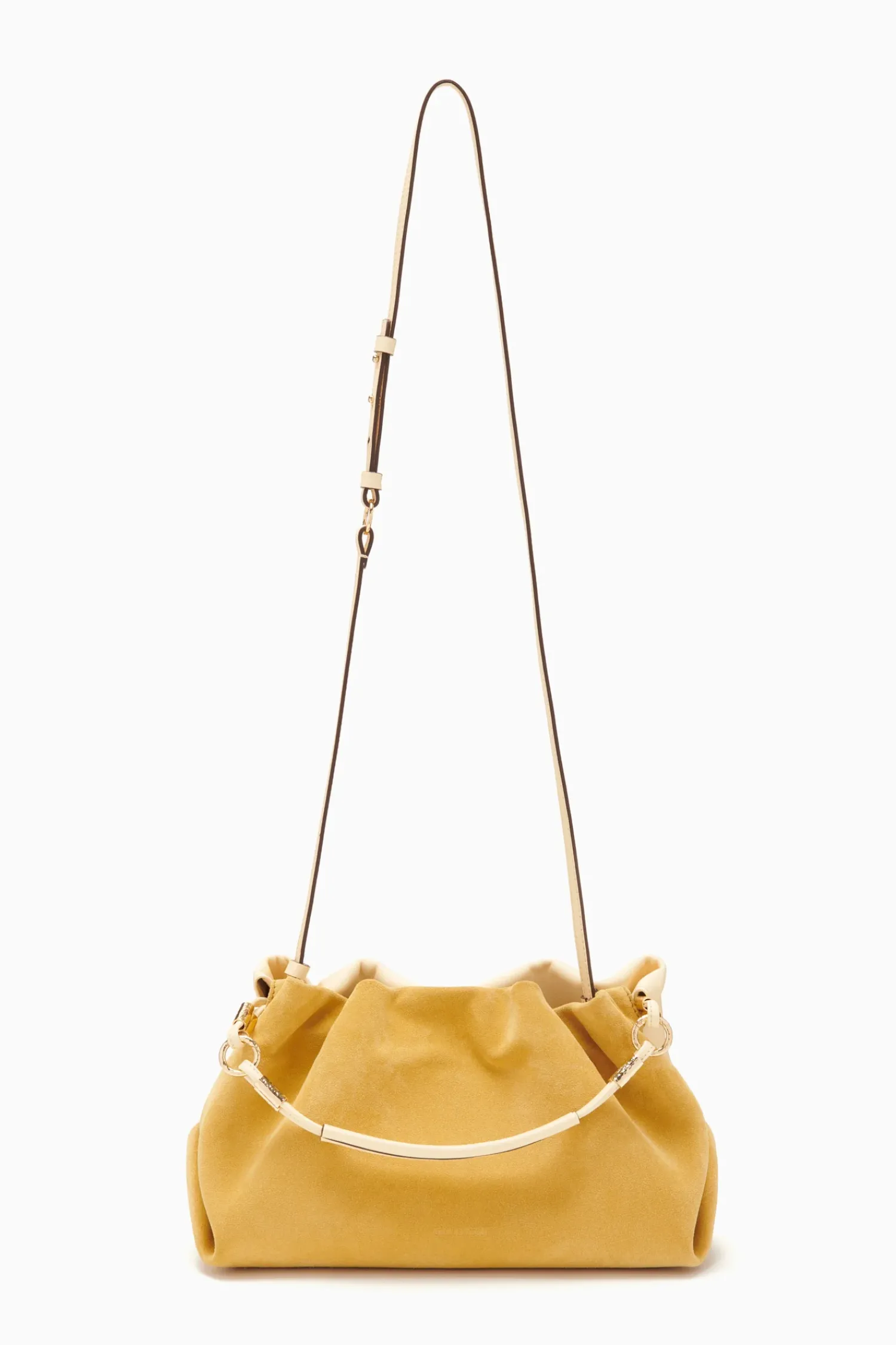 The Remy Soft Convertible Clutch Has Been Reimagined In A Stunning Yellow Hue. This Handbag Features Two Distinct Sides: One Made From Soft Calfskin Leather And The Other Made From Luxurious Suede. This Slouchy Silhouette Has Soft Folds At Either Side And Can Be Worn As A Clutch, Shoulder Bag, Or Crossbody. It Is Finished With Shiny Brass Detailing At The Base Of The Strap.