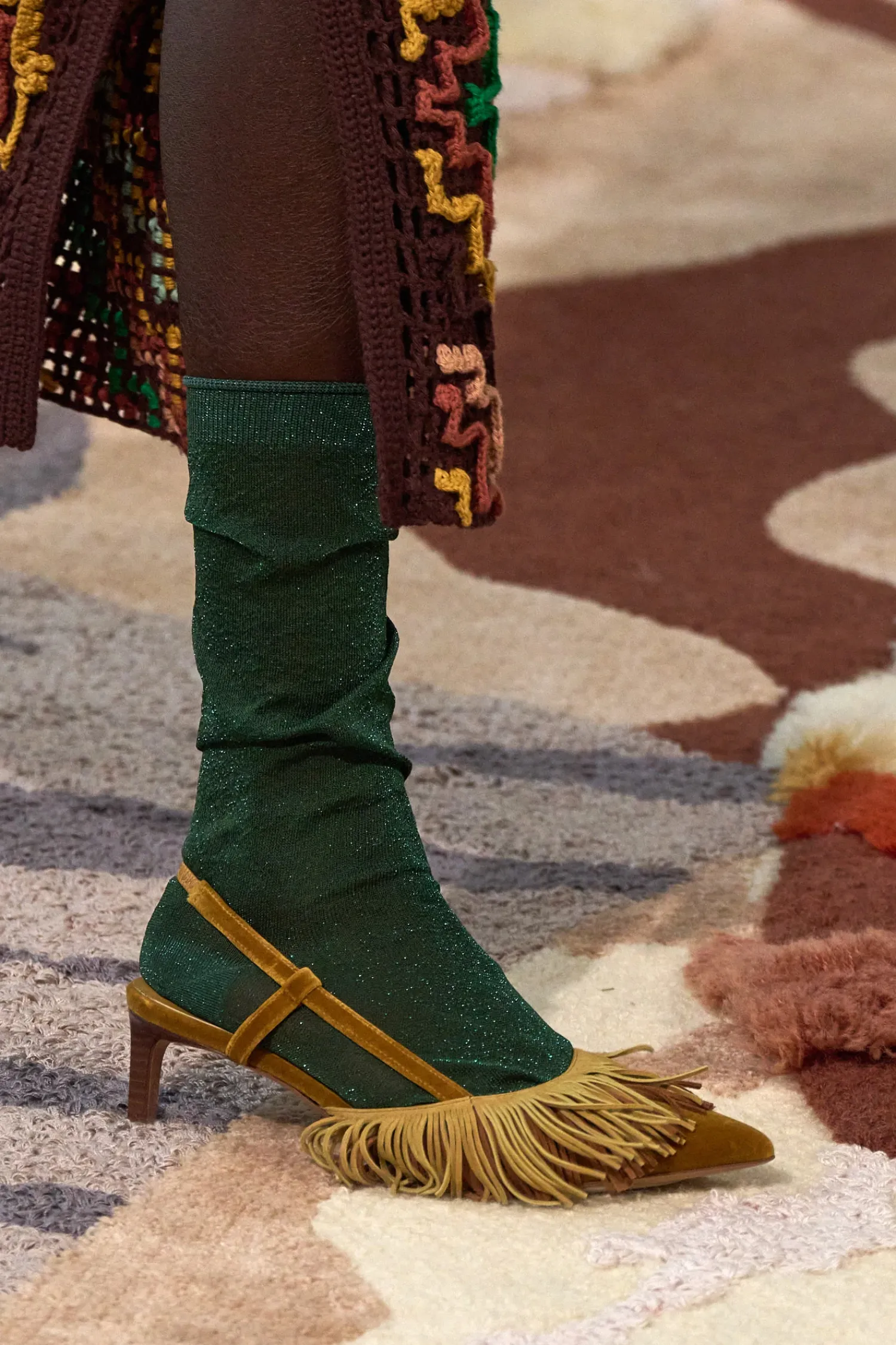 Shira Fringe Slingback Gul Floyels Semsket Hael Med Ryggslynge