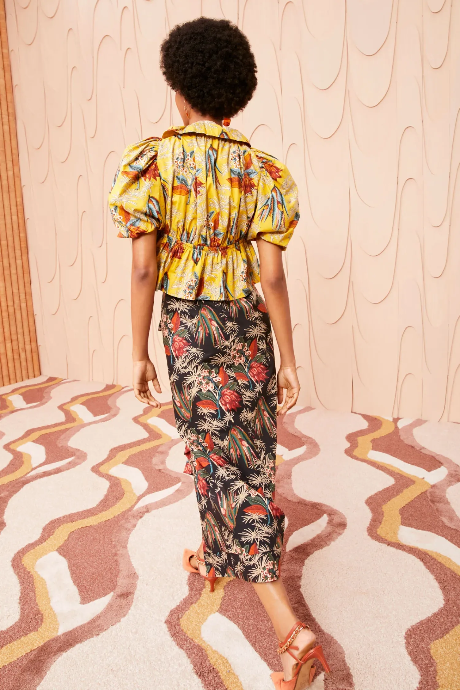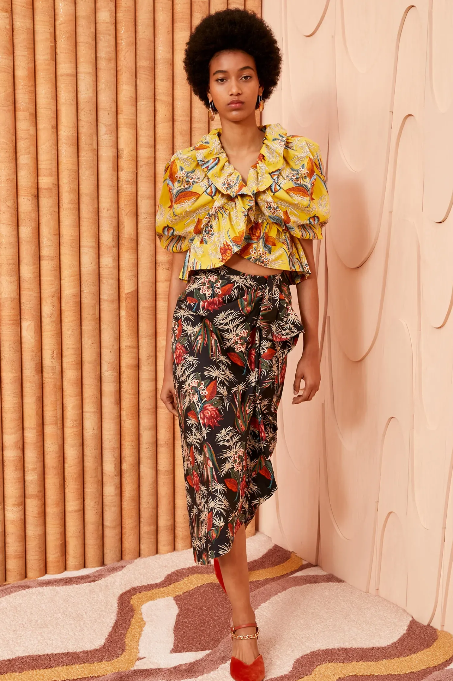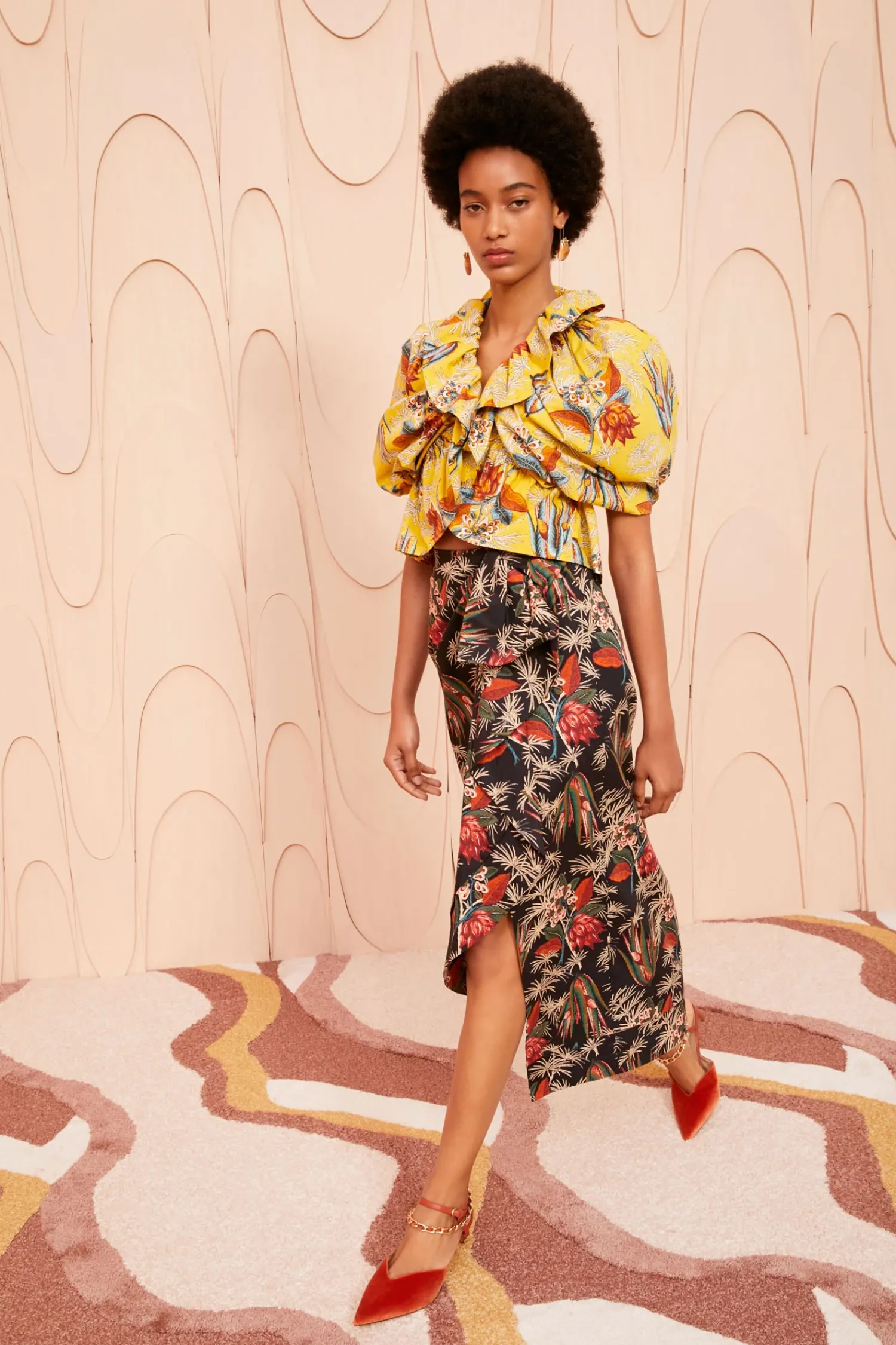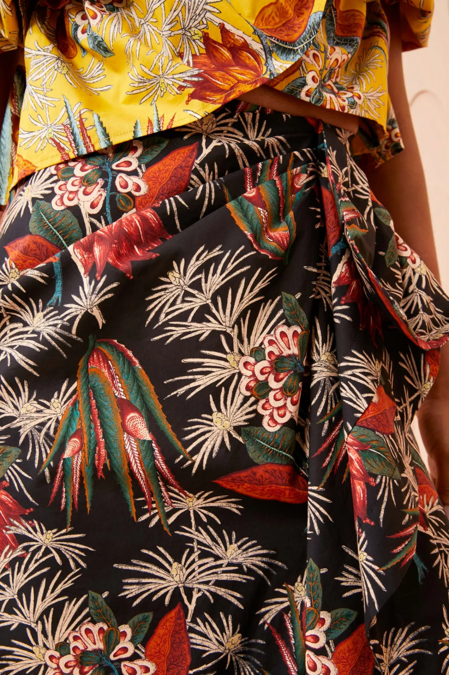 The Soraya Skirt Is Made From Cotton Poplin And Patterned With A Stunning French Botanical Motif Inspired By A Tapestry From The 18Th Century. This Black-Based Midi Skirt Is Adorned With Cascading Ruffles And Has A Front Split. It Fastens With A Concealed Center-Back Zipper.