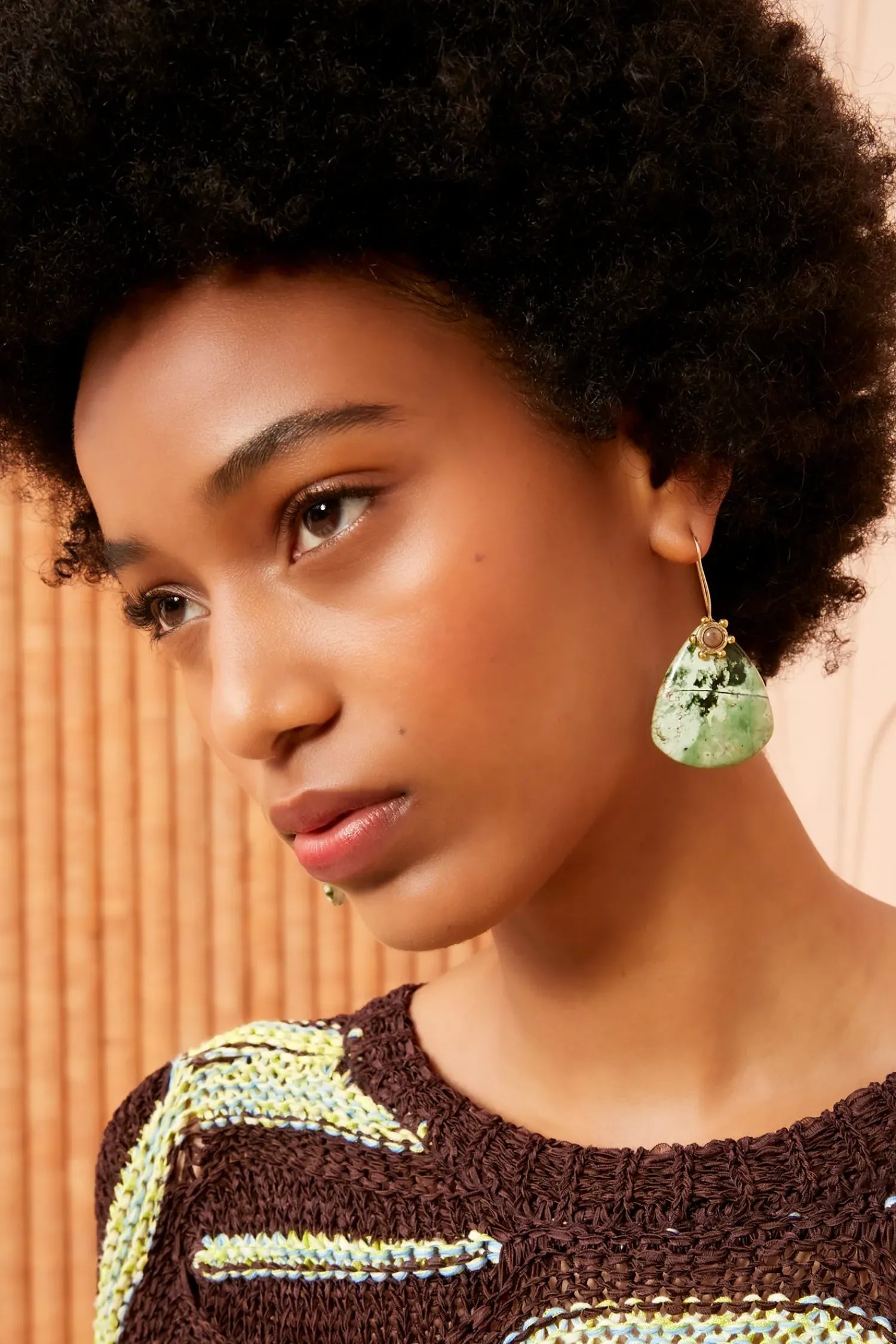 As Featured In Look 20 Of Our Pre-Spring ’24 Lookbook, The Stone Drop Earring Reflects Ancient-Inspired Artisanal Techniques And Has Been Hand-Fashioned From Recycled Brass With A Lovely Green Turquoise Stone. Each Piece Is Made By Hand By Our Long-Time Artisan Partners In Kenya, So No Two Are The Same. It Fastens With A Gold Wire Hook.