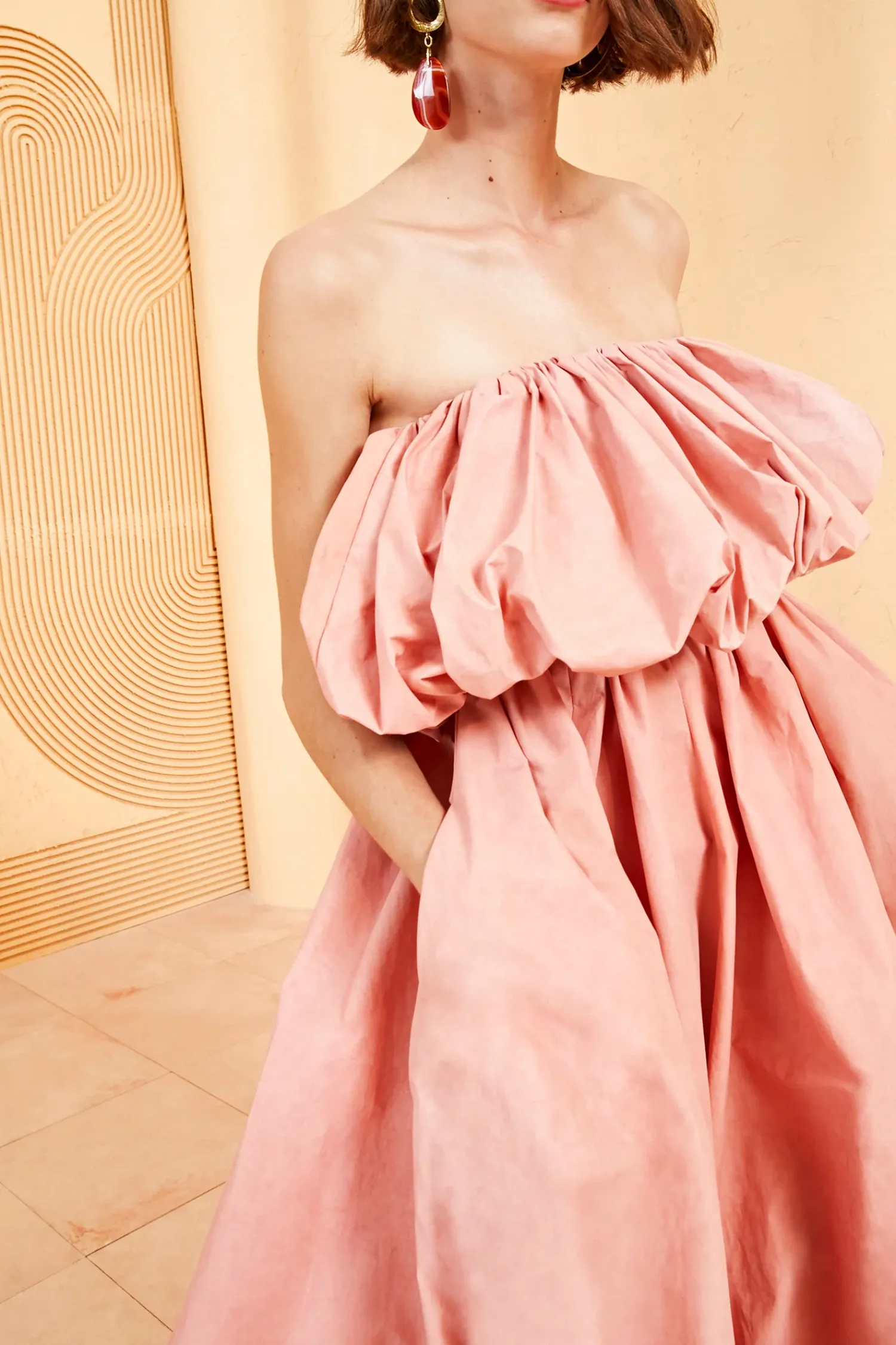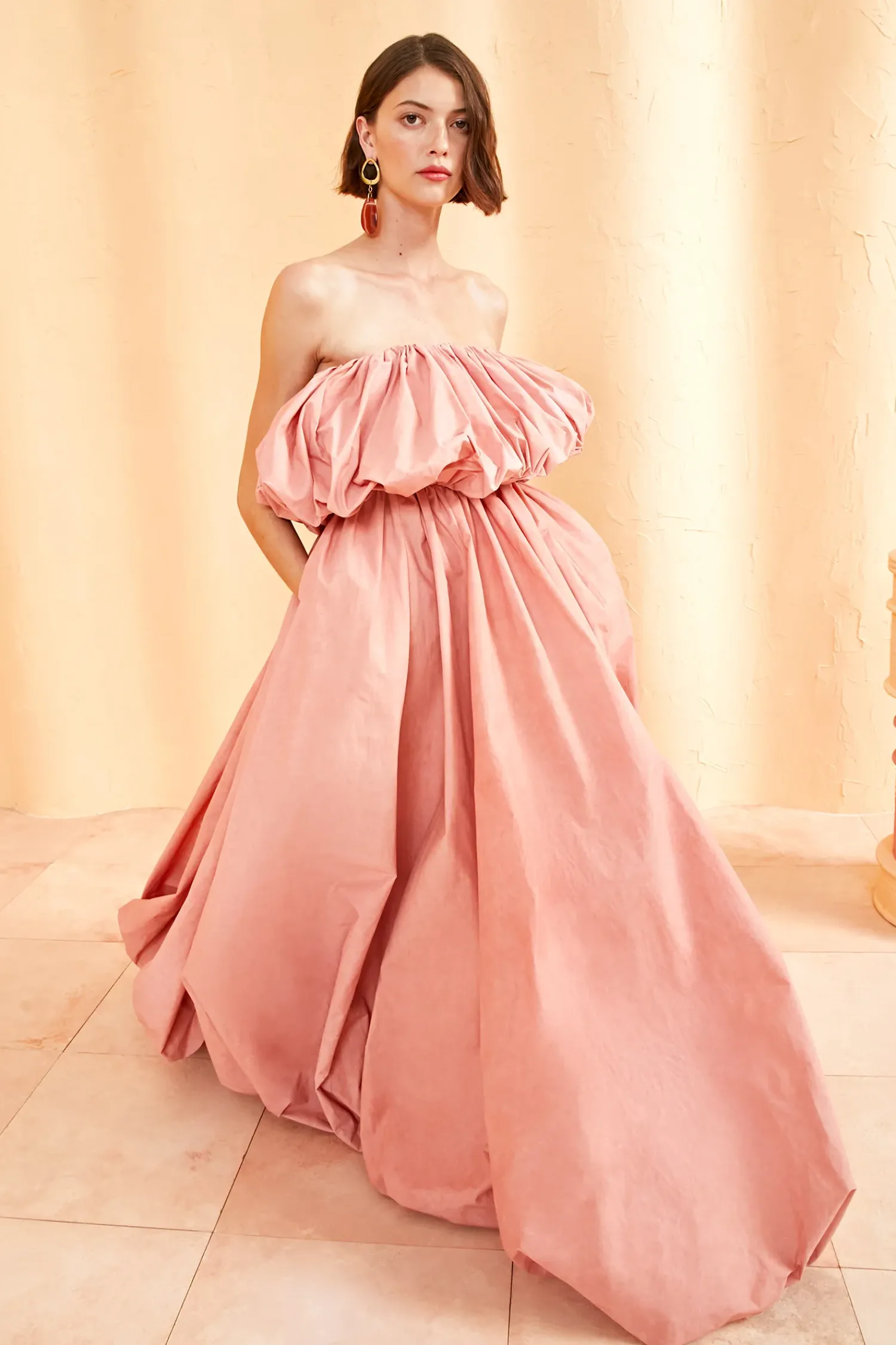 As Featured In Look 36 Of Our Spring/Summer ’23 Runway Show, The Vittoria Gown Begins Our Exciting Introduction Into Showstopping Ballgowns. Made From Italian Water-Repellent Trench Fabrication, This Gown Is Carefully Draped Into A Bubble-Hem Silhouette At Both The Bust And Hemline. The Rose-Hued Color Is Made Through An Intricate Dying Process Which Produces A Unique Watercolor Finish. This Dress Is Finished With An Interior Corset Bodice. This Piece Is An Ulla Johnson Exclusive And Is Made In New York.